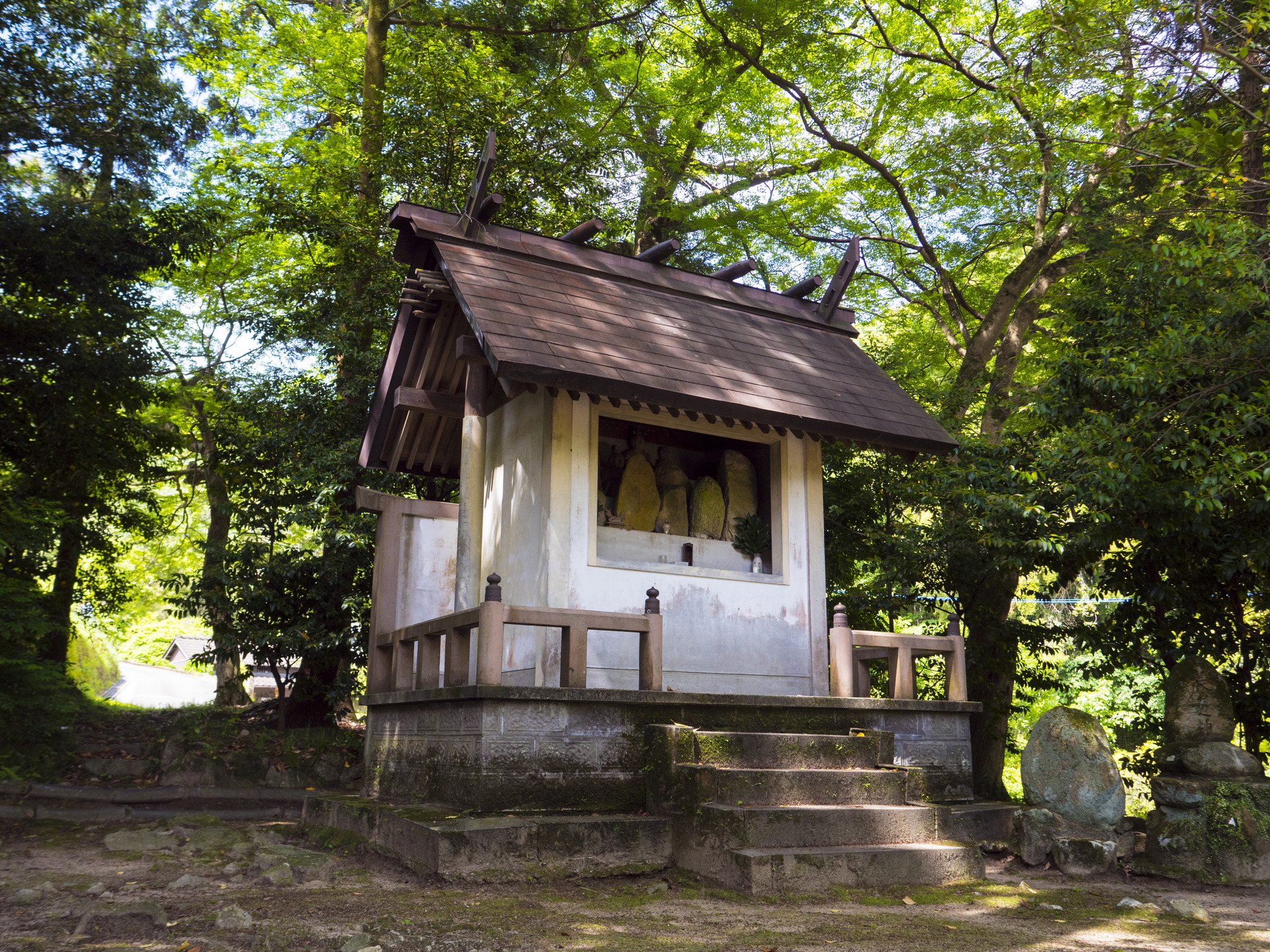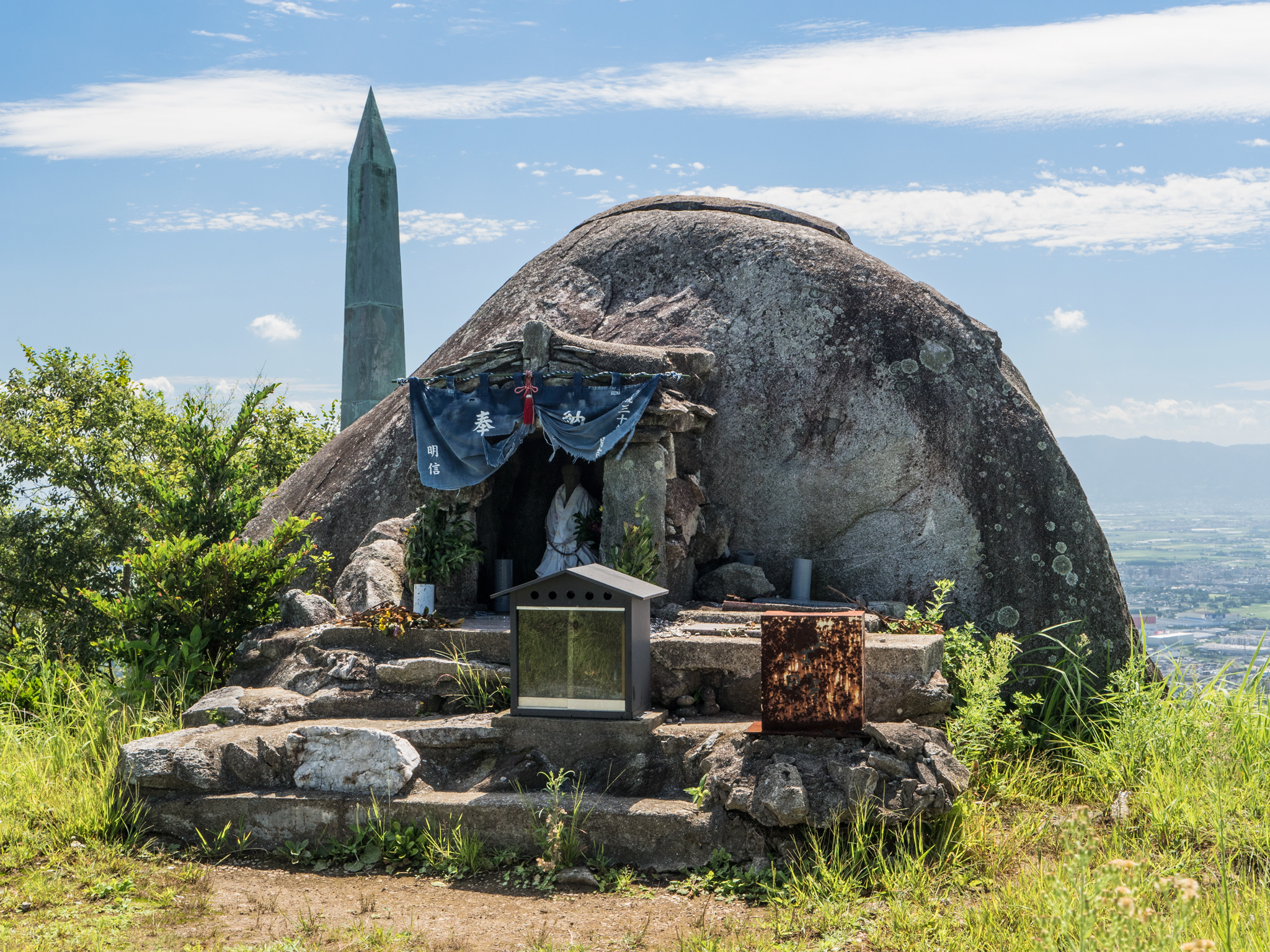 旧鎮座地の基山山頂の南端に奉斎されています。筑後国を南に一望できる地で、花崗岩の巨岩に五十猛命が腰かけた岩とも伝えられています。タマタマ石の隣には「天智天皇欽仰之碑」が建てられています。