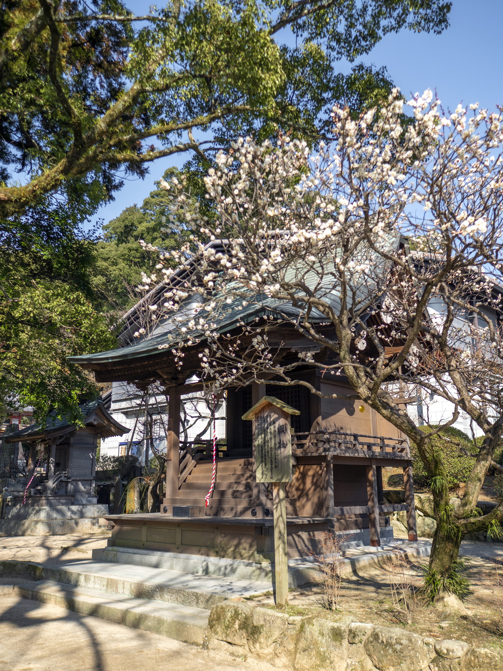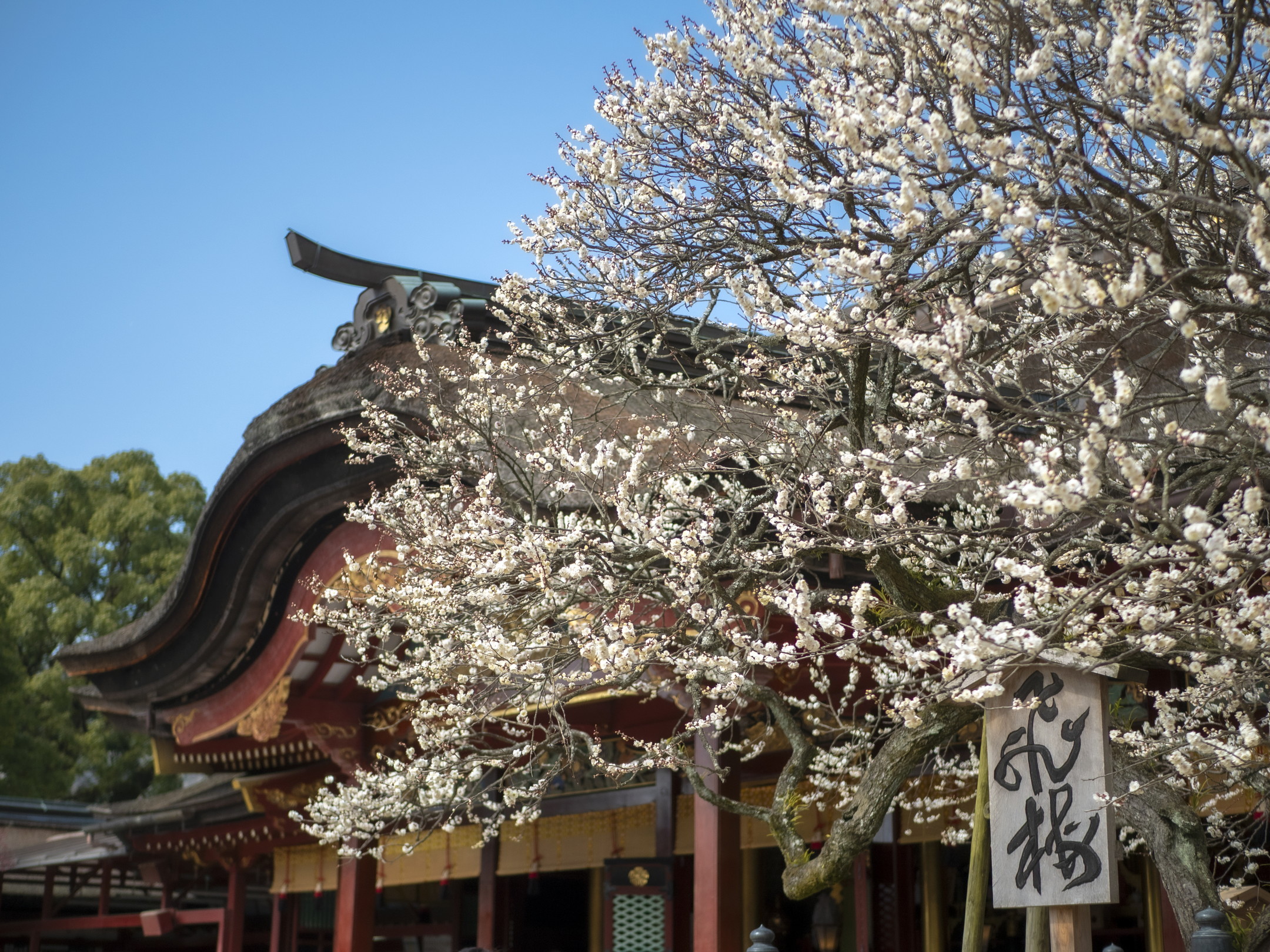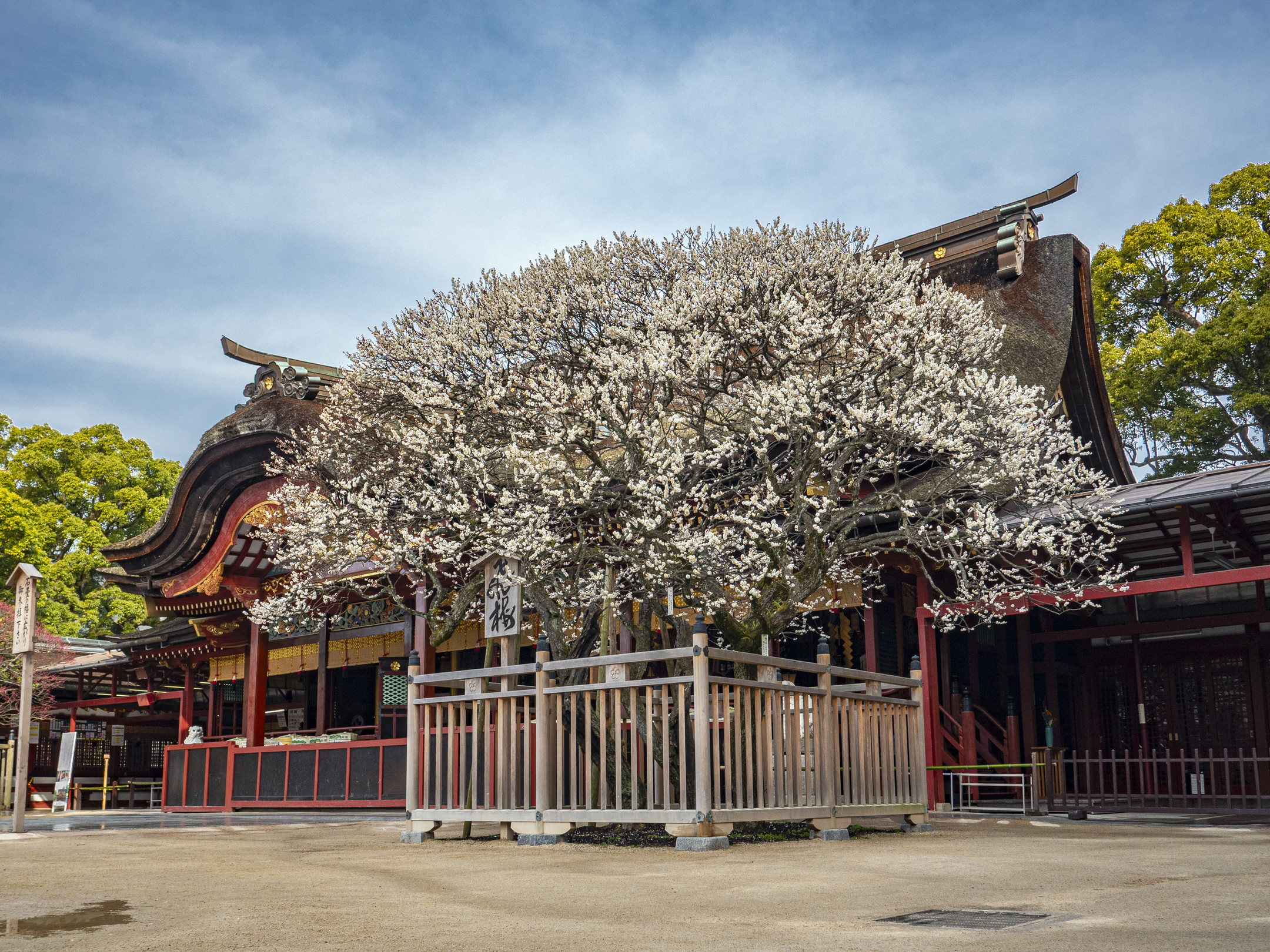 手水舎前の東神苑への交差を過ぎてすぐ左に鎮座。道真公の正妻、詩作の師であった島田忠臣公の娘である宣来子命をお祀りする摂社です。創建は不詳なるも、室町期の境内図に記されています。夫婦円満、安産、子宝の神様として信仰されています。