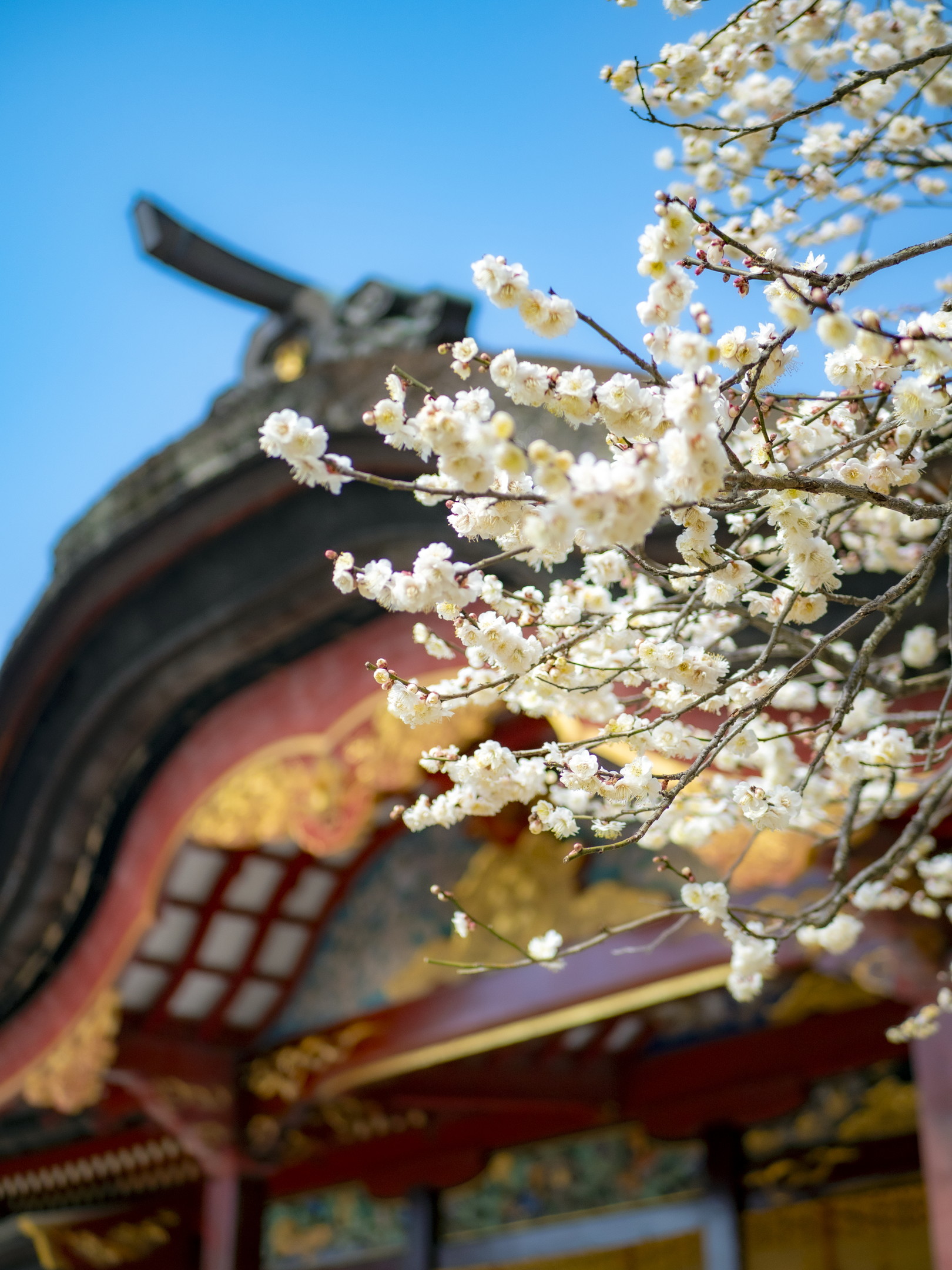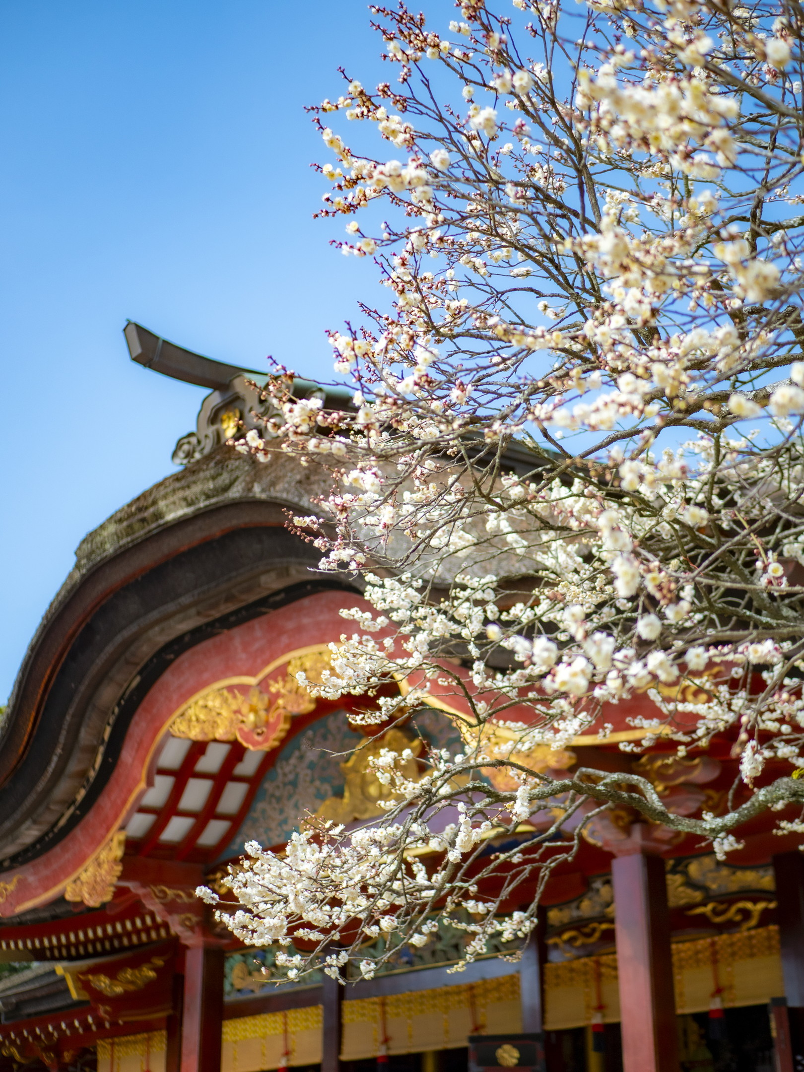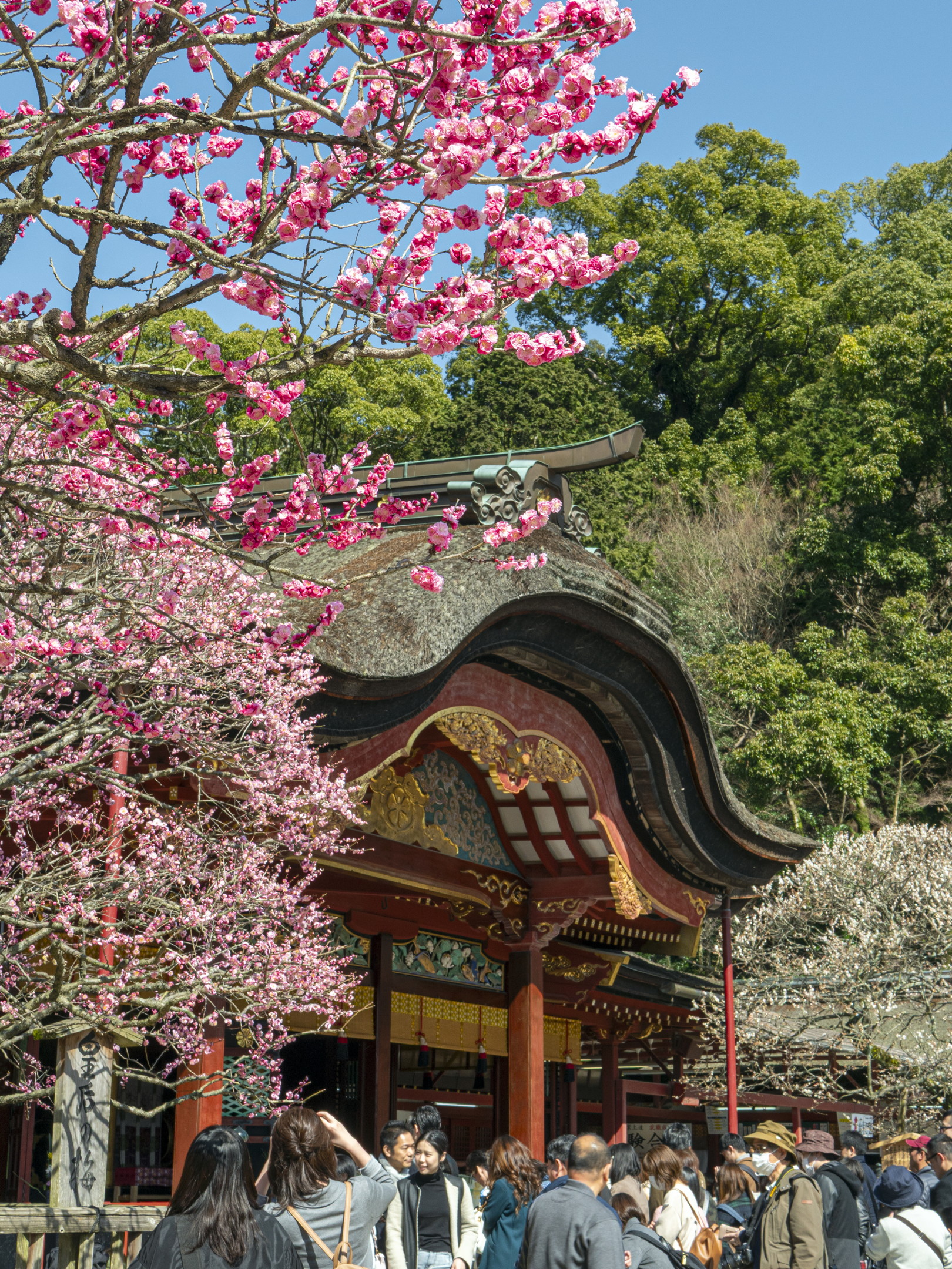 手水舎前の東神苑への交差を過ぎてすぐ左に鎮座。道真公の正妻、詩作の師であった島田忠臣公の娘である宣来子命をお祀りする摂社です。創建は不詳なるも、室町期の境内図に記されています。夫婦円満、安産、子宝の神様として信仰されています。