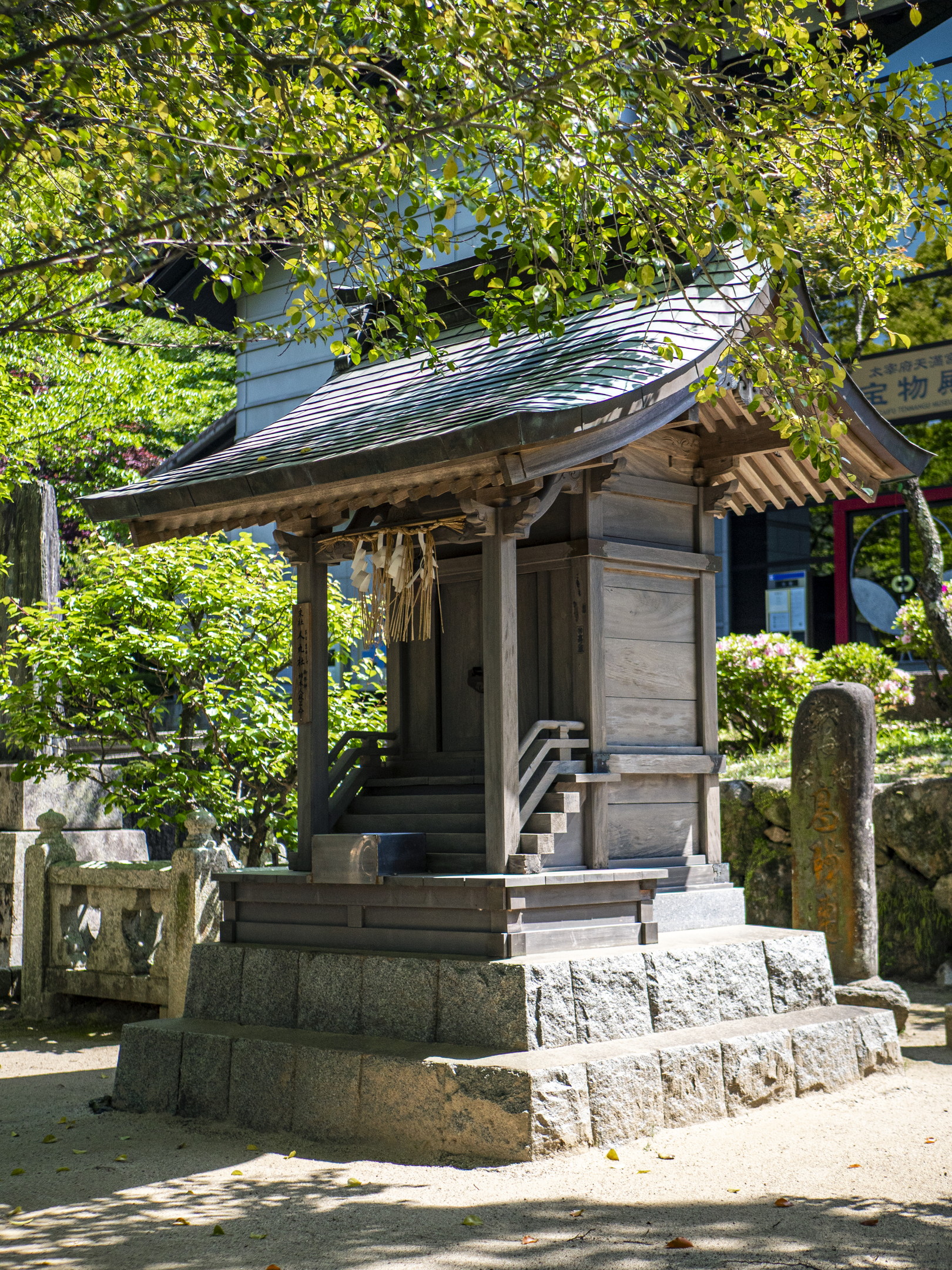 廻廊の東、向かって左手前に鎮座。道真公の師であった延暦寺座主の法性坊尊意を祀っています。尚、能楽「雷電」は、道真公を弔っていた法性坊尊意のもとに道真公の霊が訪れるとの筋書きになっています。