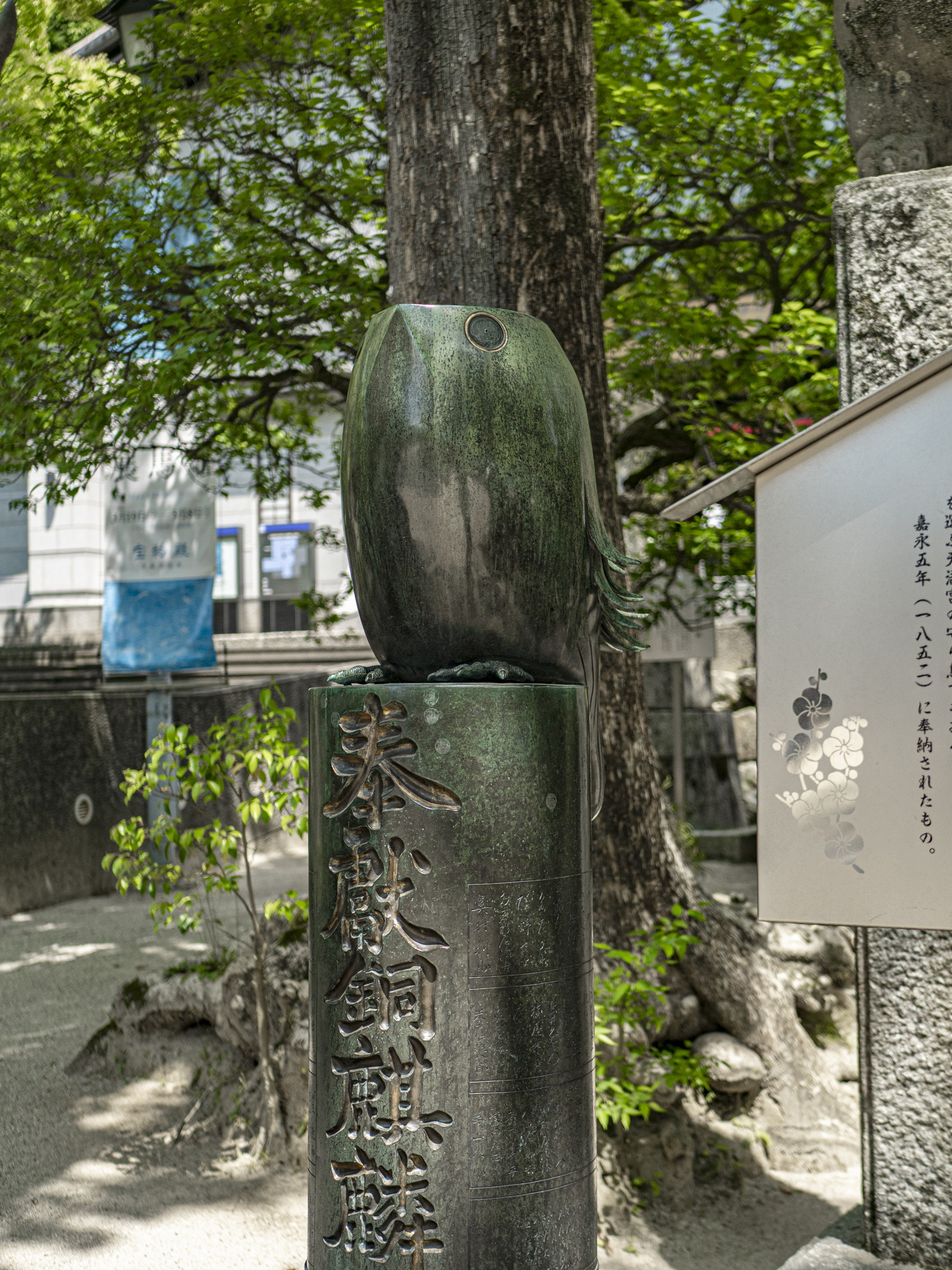 奉献銅麒麟、施主連名、鳥羽屋七蔵(他二五四名)嘉永五年壬子三月吉日執次小野伊予氏興発起人奥村利助(他二名)世話人鳥羽屋七蔵(他二四名)鋳工山鹿平十郎包秋同苗儀平包信、同苗儀吉包春