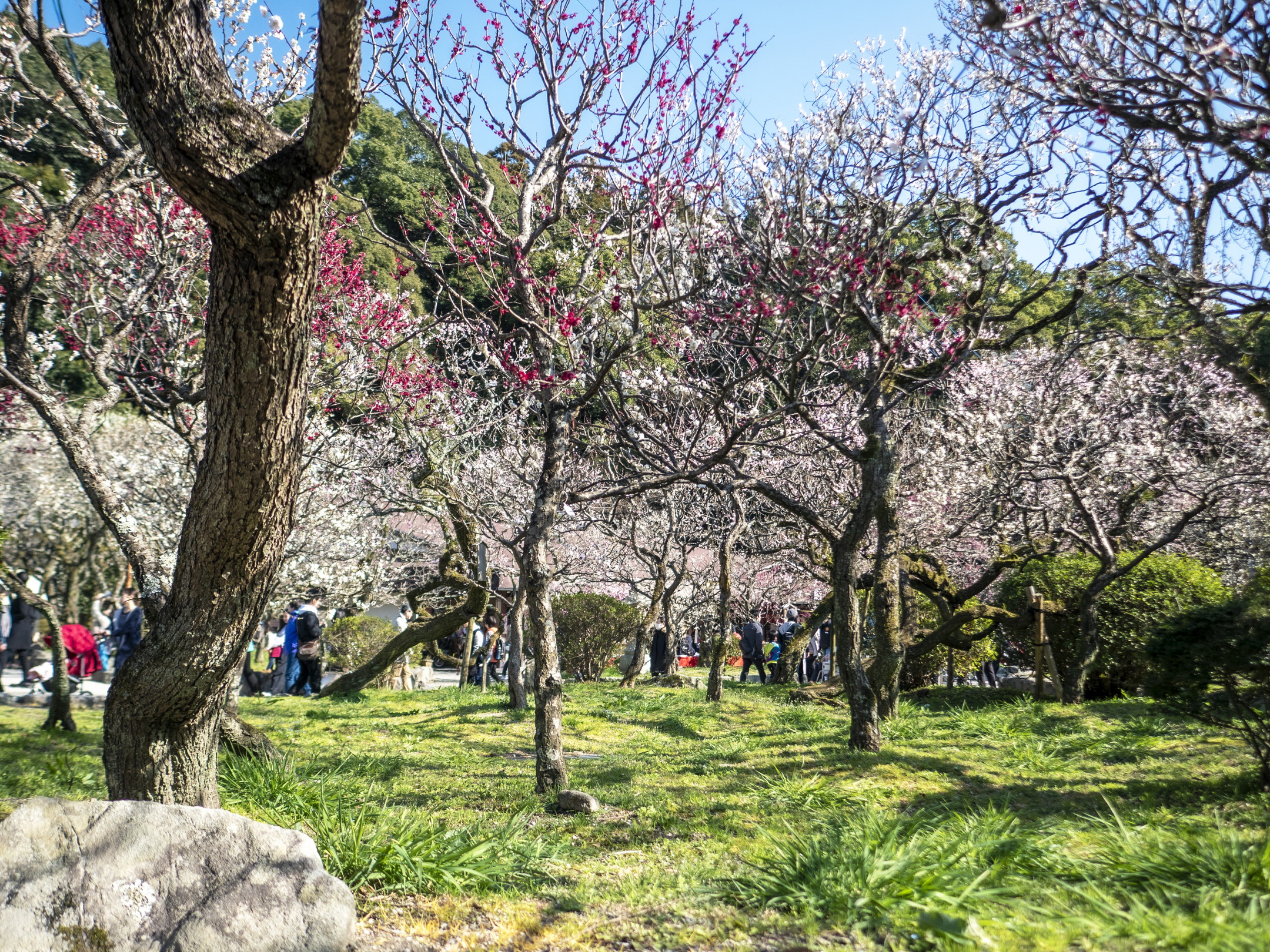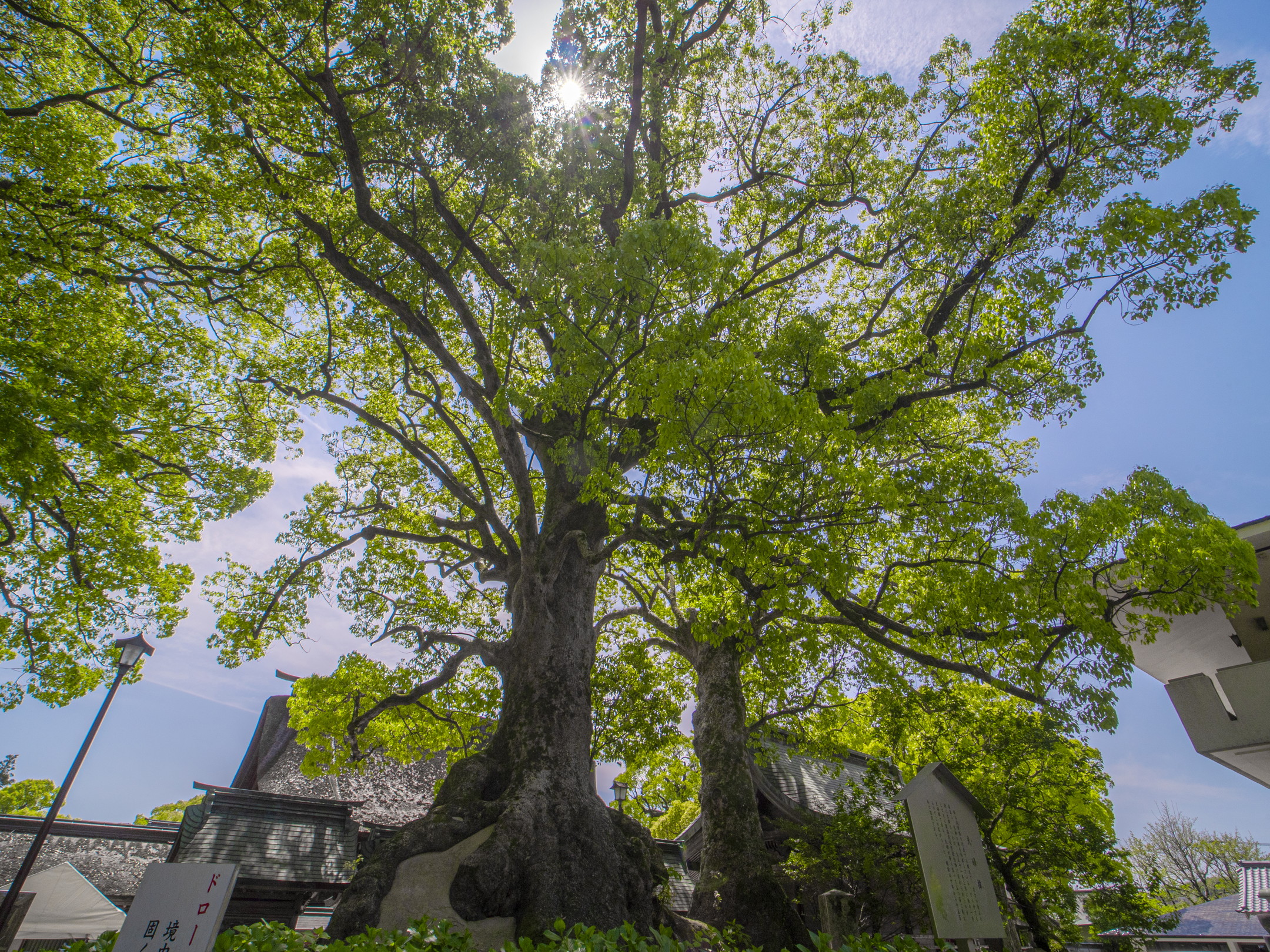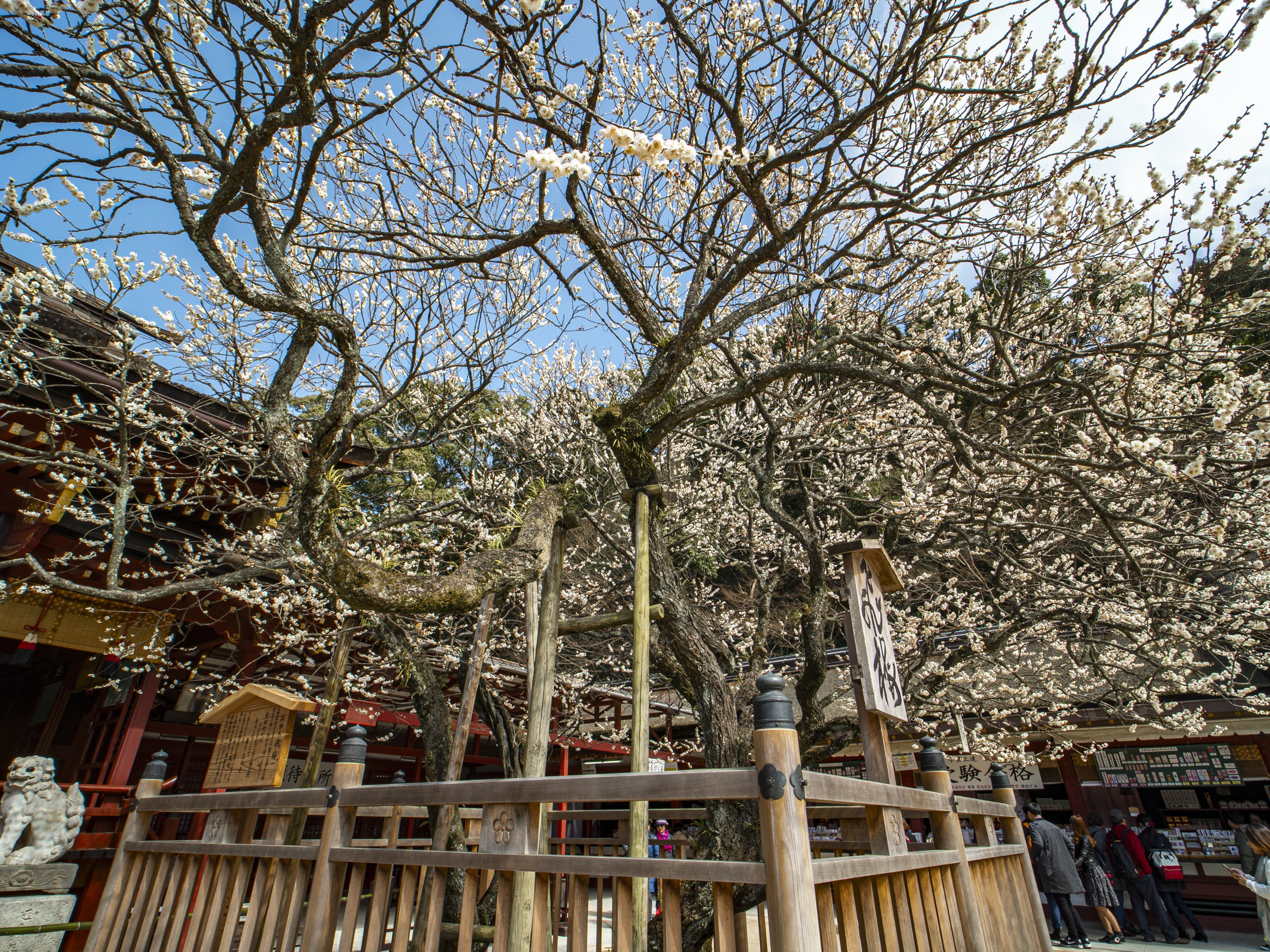 本殿後方の夫婦樟の前に並ぶ四社。道真公のお子様たちをお祀りし、御子社と呼ばれています。左から土佐国に配流された長男の高視命、越後国に配流された次男の景行命、遠江国に配流された三男の兼茂命、播磨国に配流された四男の淳茂命を祀っています。道真公が左遷されるのに合わせて官職を有する子息は悉く左遷されました。左遷された子息も含め、感慨を詠まれた道真公の次の詩が残されています。