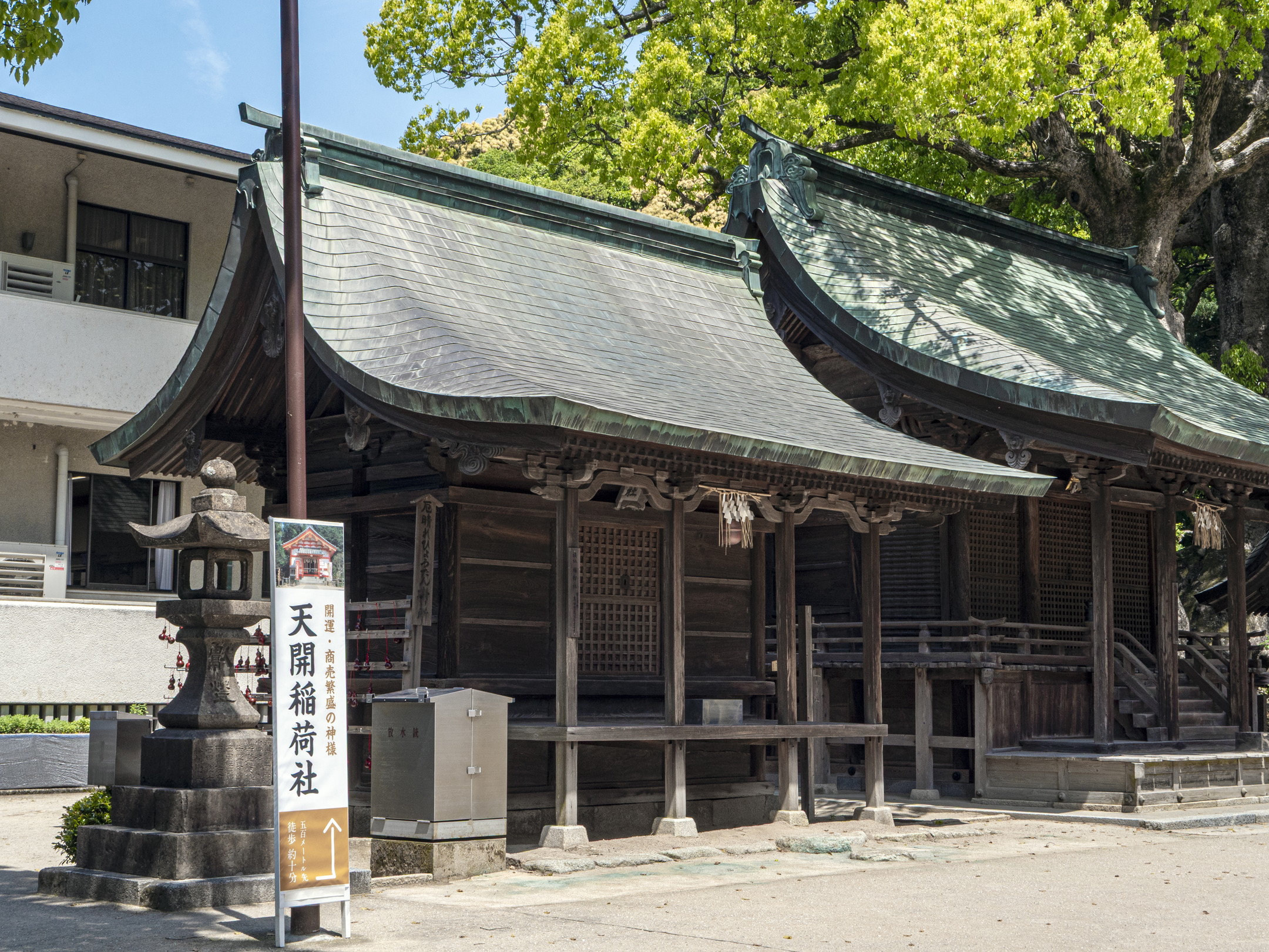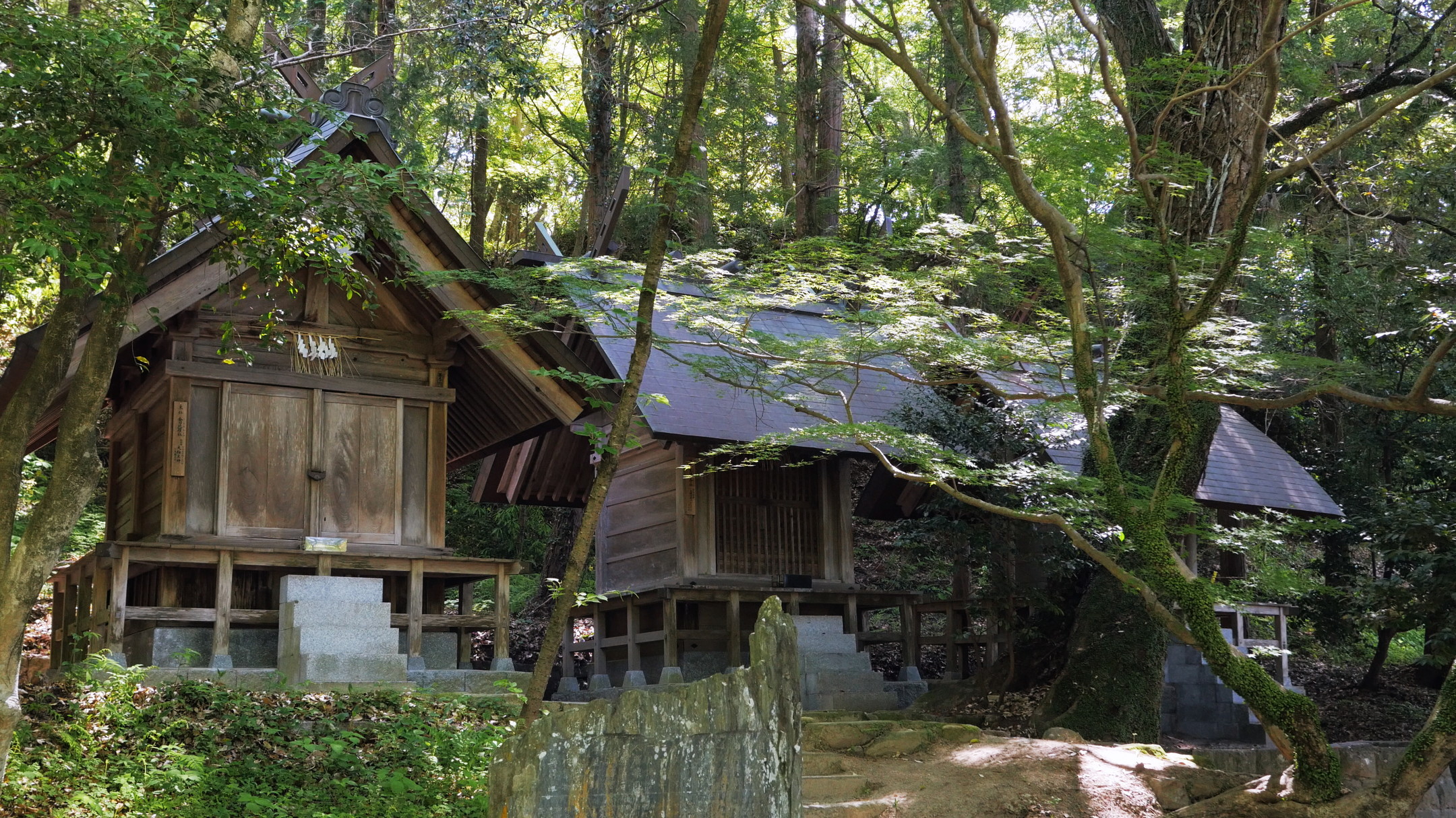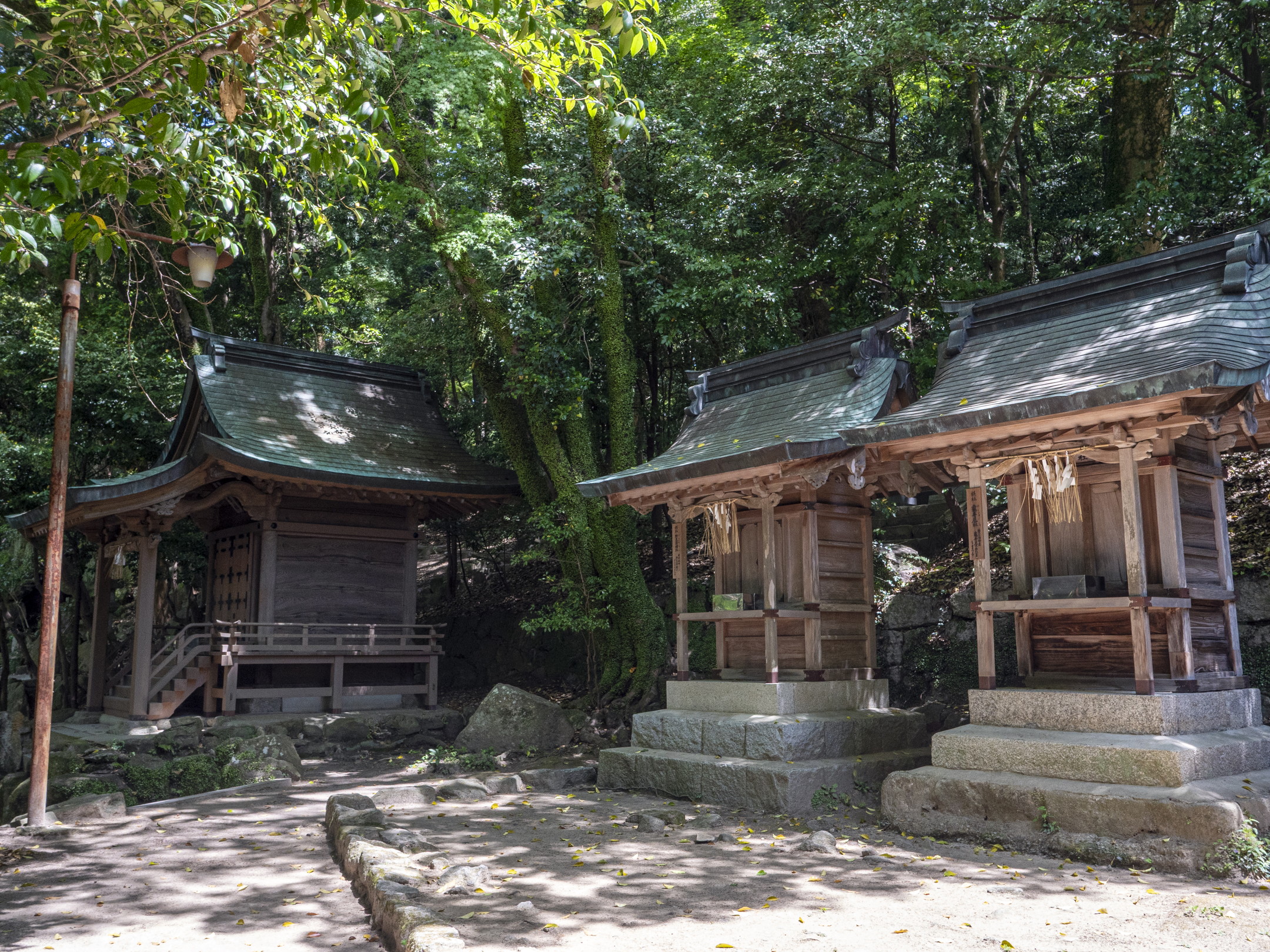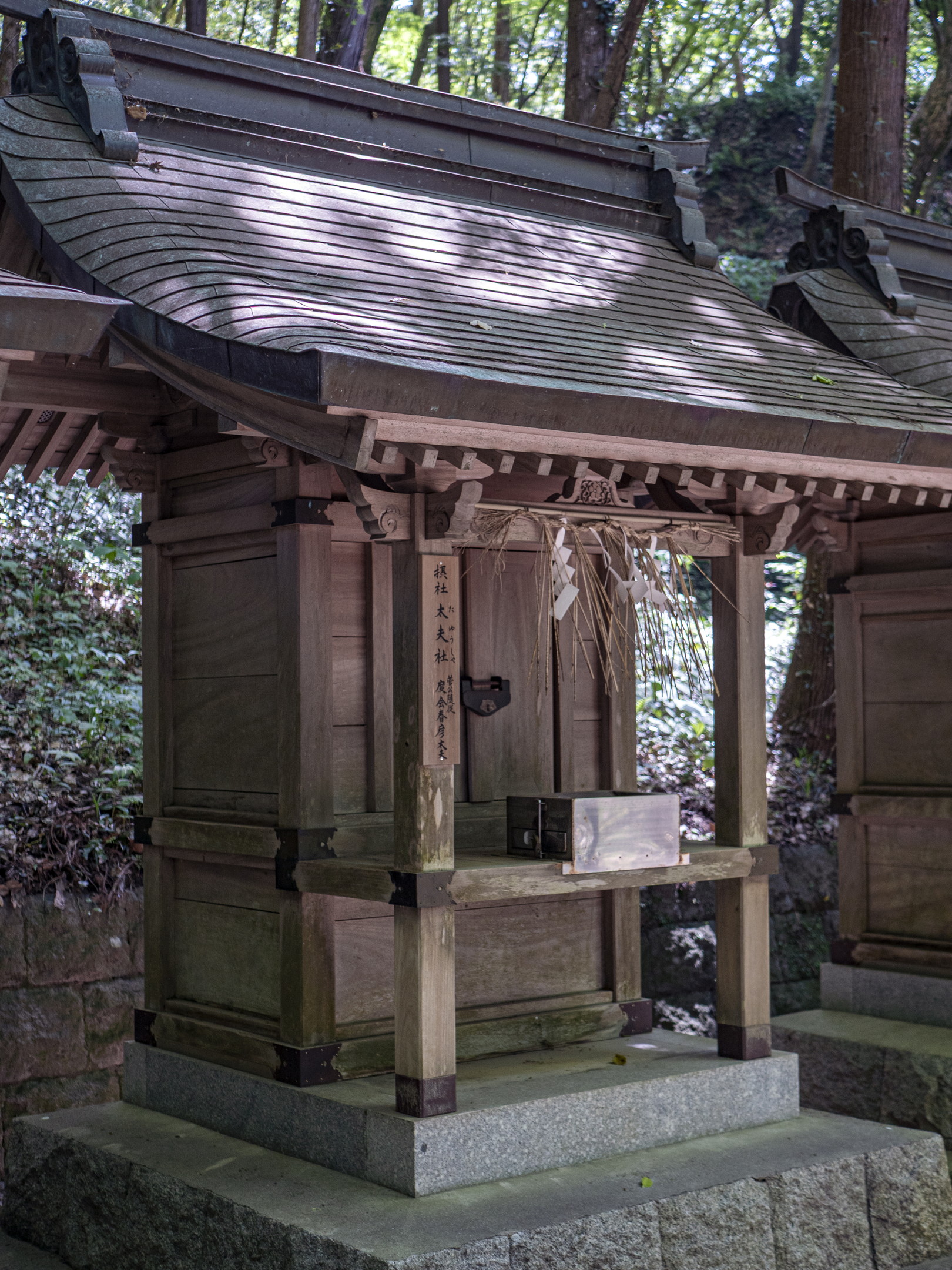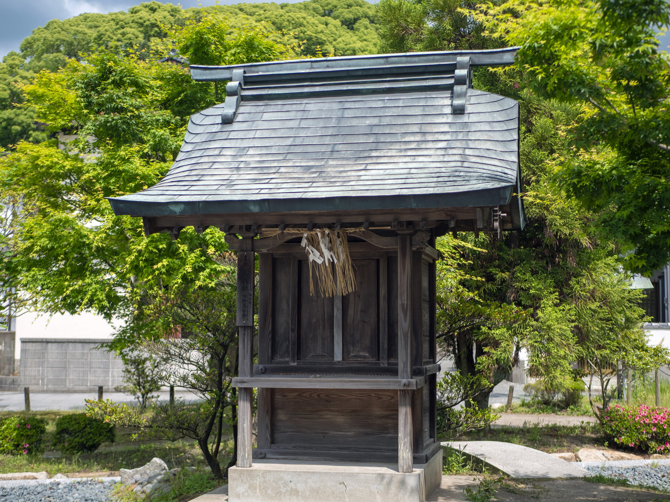浮殿の向かって左手の参道を進んで奥直ぐに鎮座。大国主命を祀っています。福の神様として仰がれています。創祀は不詳ですが、道真公の祖神の天穂日命に大国主命を祀るよう神界の掟で命ぜられたとされています。中神家、永光家などが御神体を奉じ、家庭祭祀がなされていましたが、神託により当地に鎮座しました。家庭円満、災難消除、商売繁盛の守護があります。