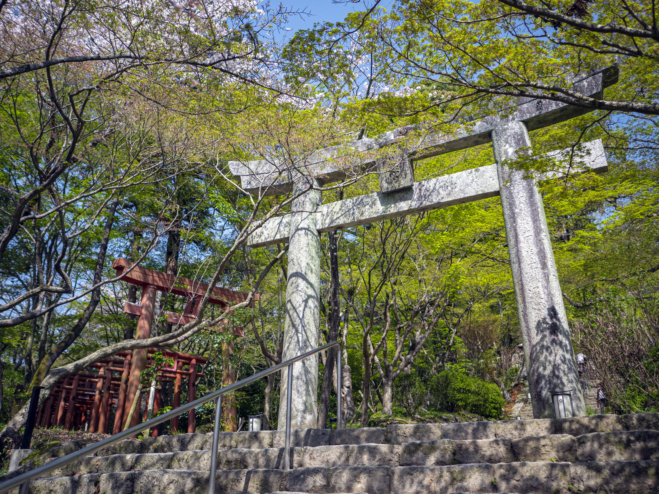 四十二代文武天皇ノ御宇、役行者登山在マシ四十九日振鈴登且シ明神之影向ヲ祈リ玉ウ。其地七ヶ所ノ岩屋是也。其岩屋、寶城・福城・釼・大南・藤・寶塔・釡蓋、俗名ヲ付テ呼ト見ヘタリ。此外ニ雨寶ノ岩屋ト云處有リ。小角俄ニ雨ニ相、此岩屋ニテ凌玉ウ、小角雨ニ寶ノ岩屋トノ玉ウ、後世雨寶童子ヲ安置ス。側ニ獅子童子、龍樹菩薩存マス。行者修業ノ砌出現シ玉ウ是處ト也。同所竈門山法立灌頂ノ地也。其下ニ瀧有、獅子瀧ト云。行者阿伽水汲ウ水也。雨乞之節祕法所也。小角神通ノ明ナル㕝ヲ祈リ、七ヶ所ノ修座一々異形ニ御影ヲ顯シ玉ヘルナリ。猶高德ノ深㕝有ヘシト至心念咒祈ケルニ、四十九日ノ曉天ニ山谷鳴動シ草木色ヲ變シ大慈大悲ノ觀世音出現シ玉ウ。竝ニ彌陀、釋迦、藥師、普賢、文殊、持國、增長、廣目、多聞、愛染、地藏圍饒シ玉ウ、小角正ニ禮拜シテ自此以來本地埀跡ノ二門ヲ立。當神ヲ祭リ奉ル十神ノ尊形舊記ニ傳フ。十社皇子ト申ス御末社也、各々本地ヲ配立、松尾皇子不動・持國天金凝普賢・天狗竈尾勢至・增長竈門釋迦根夲地藏中津尾文殊降日藥師照日愛染釼皇子彌陀天智多聞・彌勒乙宮瀧口廣目天十一神也。