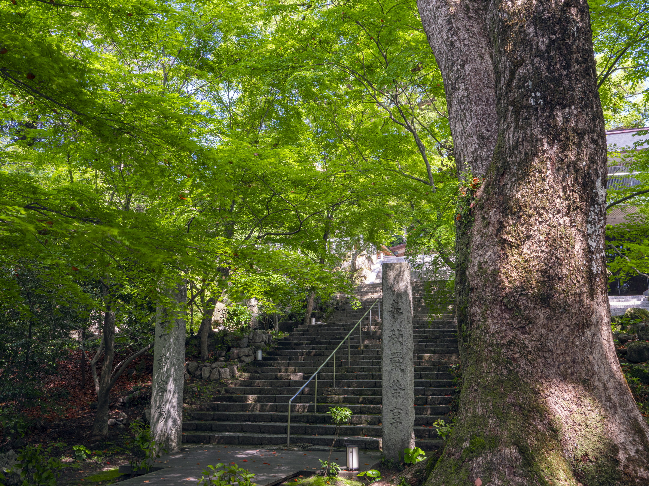 妣𫰧大宝満命、登高山龍図峯于時名仏頭山又号御笠山立竈門以茲改仏頭山名更号竈門山始自此時矣與天龍水下生水浴、弥勒・文殊従空来坐、授戒定恵而去、妣𫰧歓喜曰、我此山常住 開闢一乗法