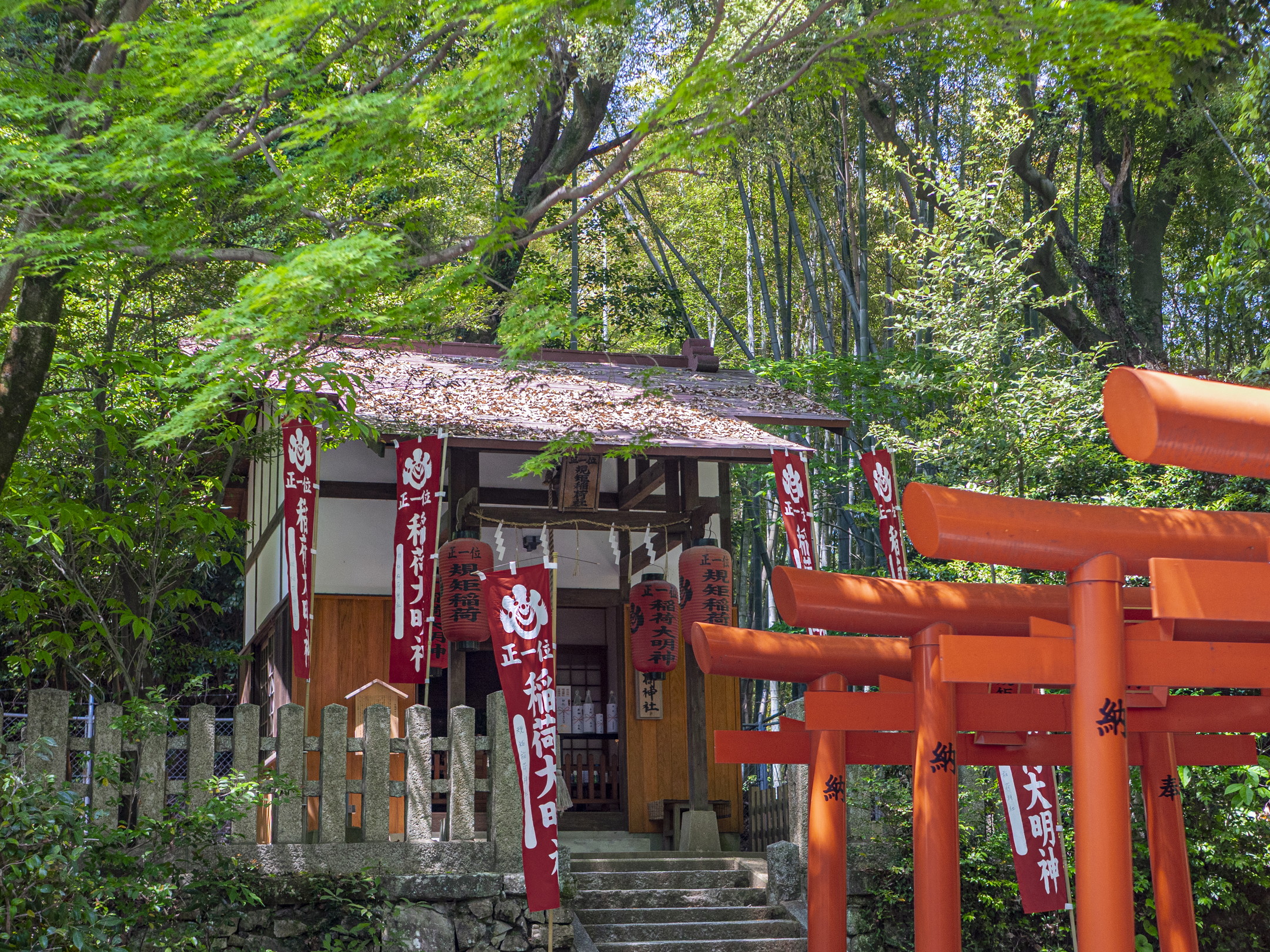 社殿向かって右手奥に鎮座。商売繁盛、穀物農業の神として宇迦之御魂神を祀っています。