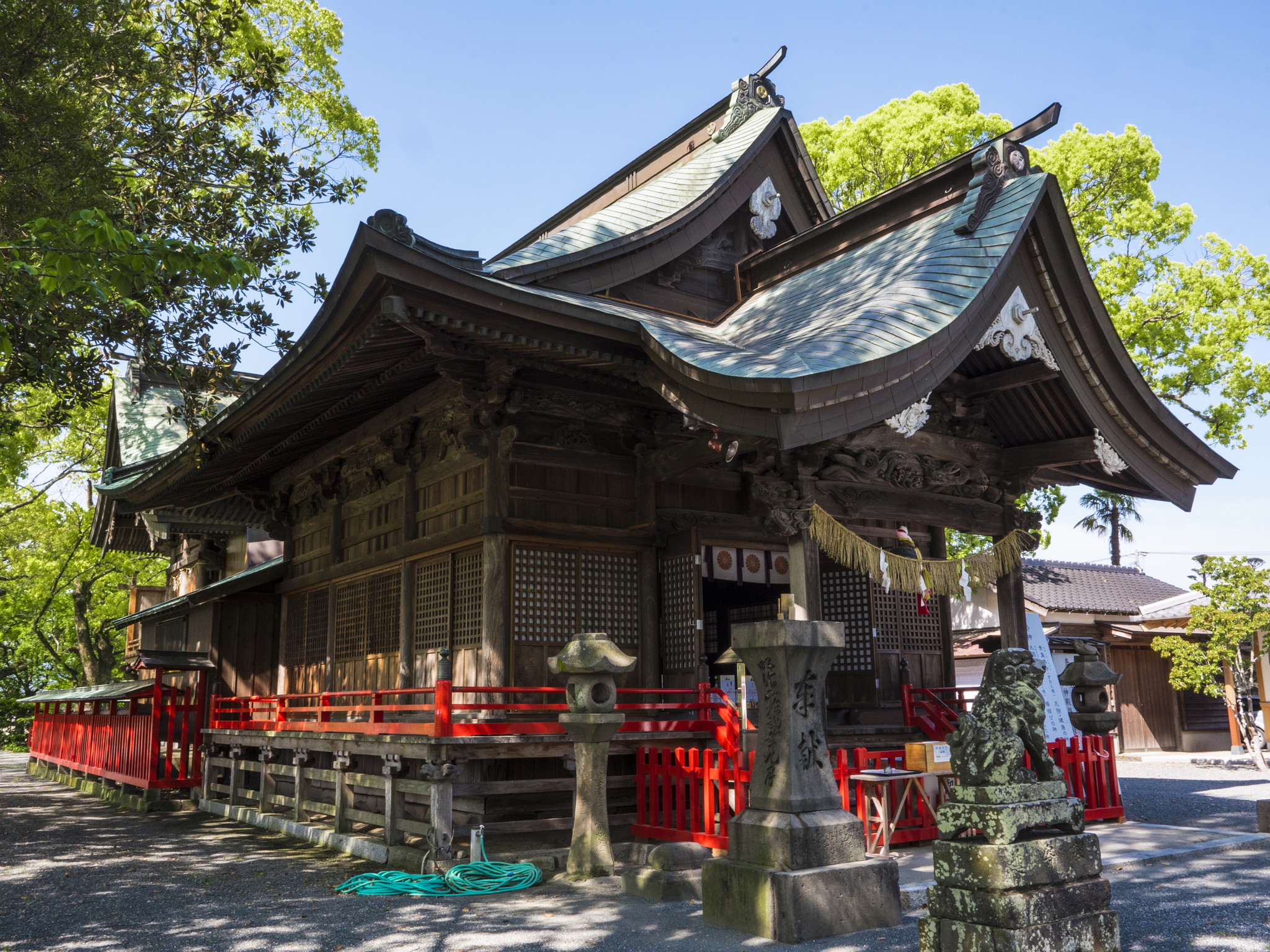 その後、神功皇后は三韓征伐に赴き、その航海中に船中で御祭神とされている大国主命・素盞鳴命・事代主神の三柱神に戦勝を祈願され、三神の冥助があったと伝えています。そのことから神功皇后は三韓征伐を遂げた後、
