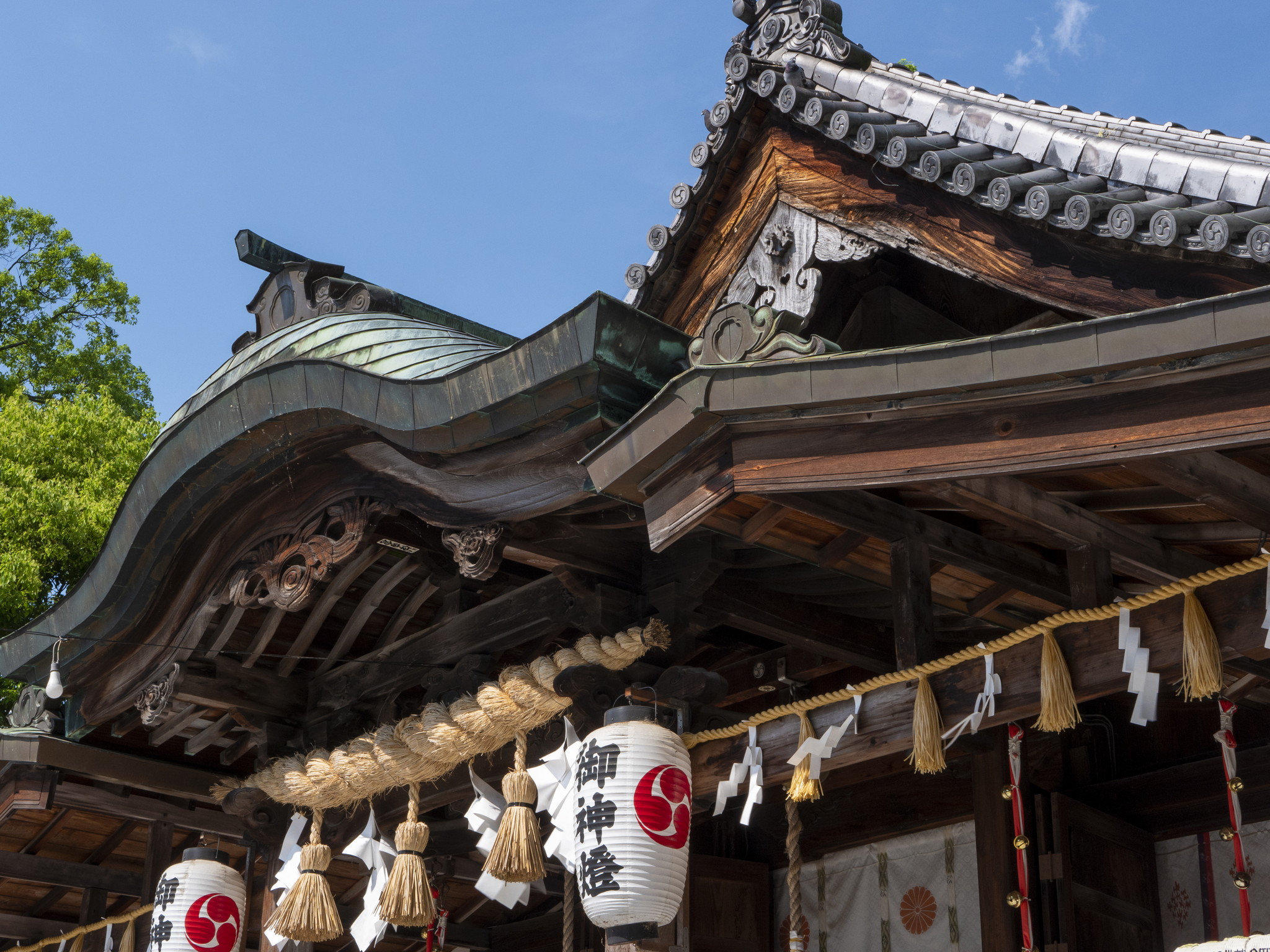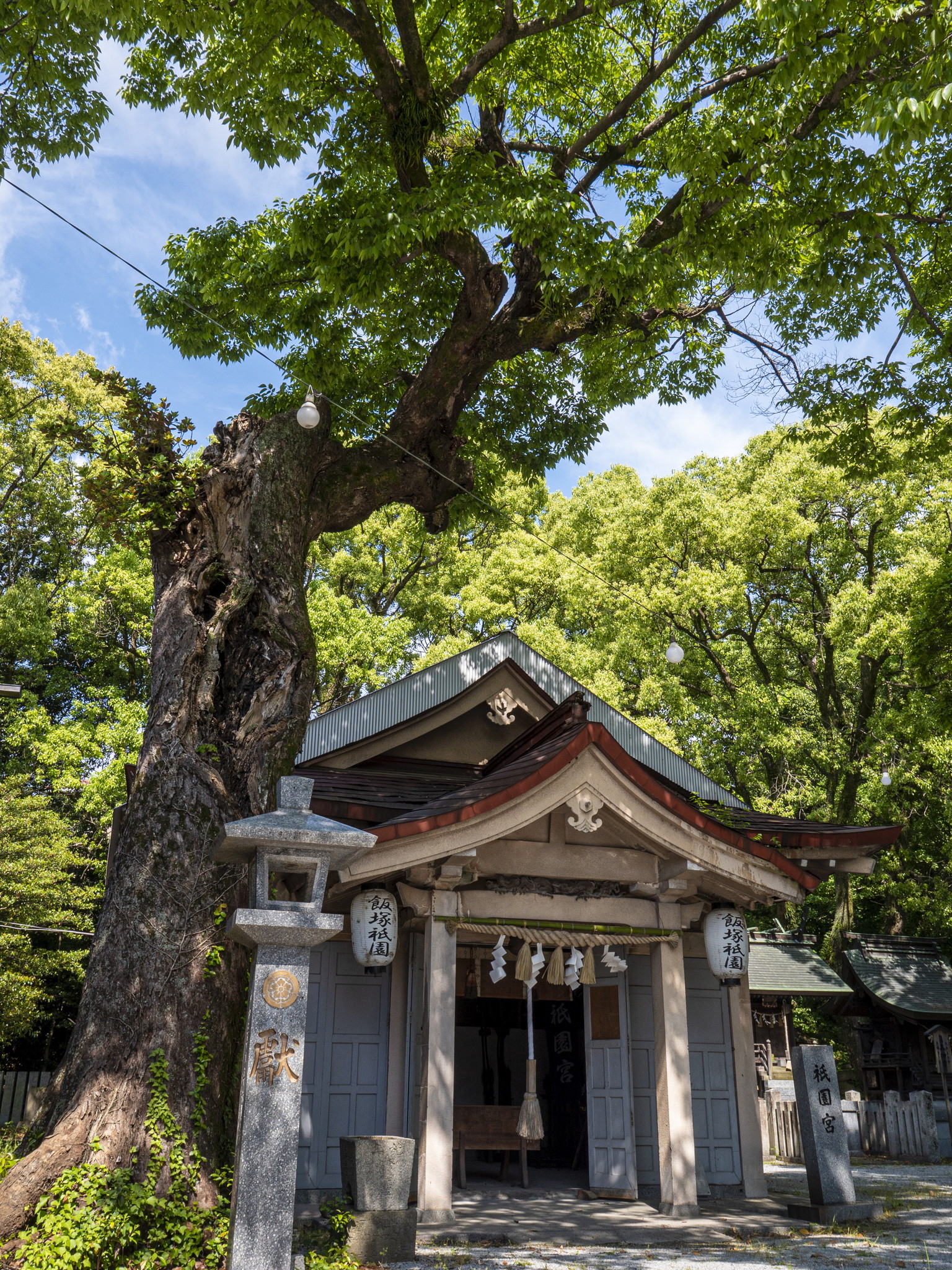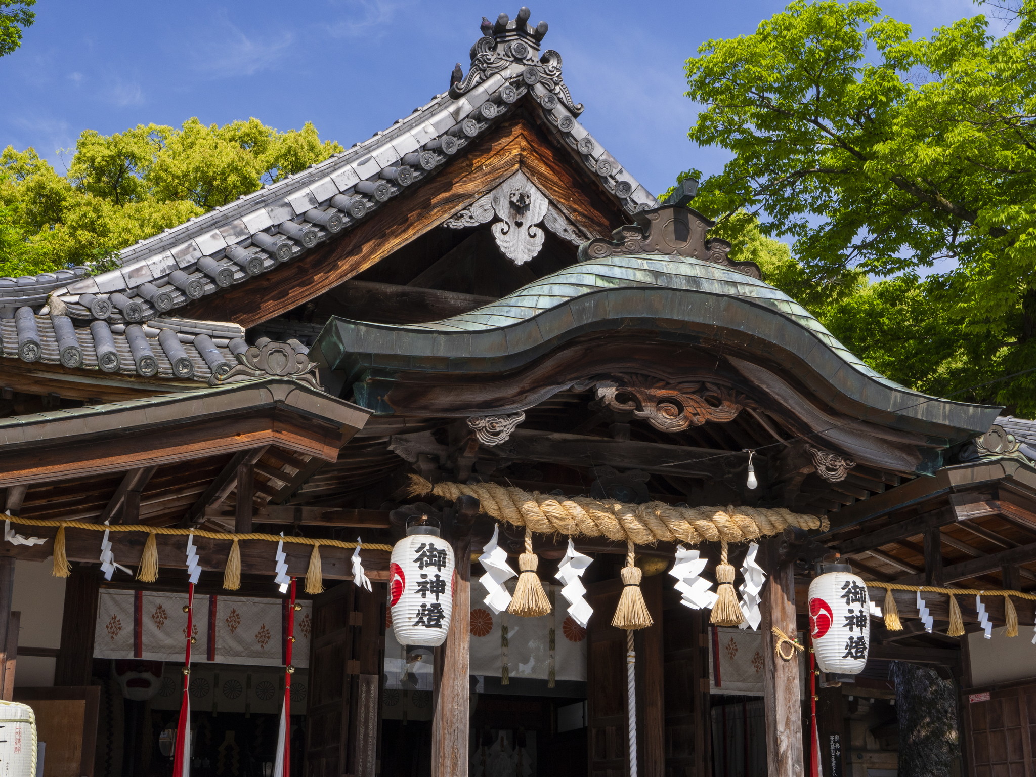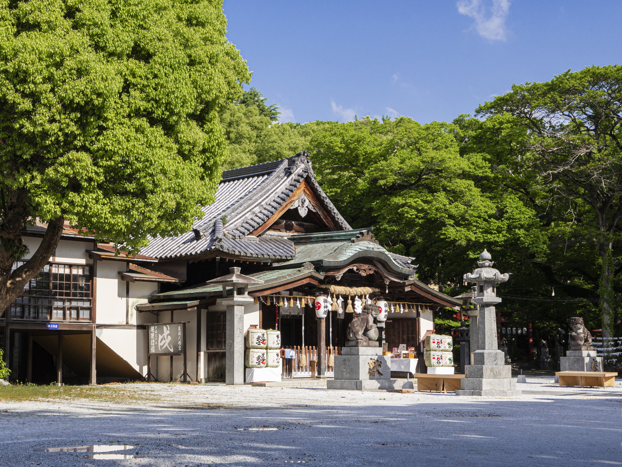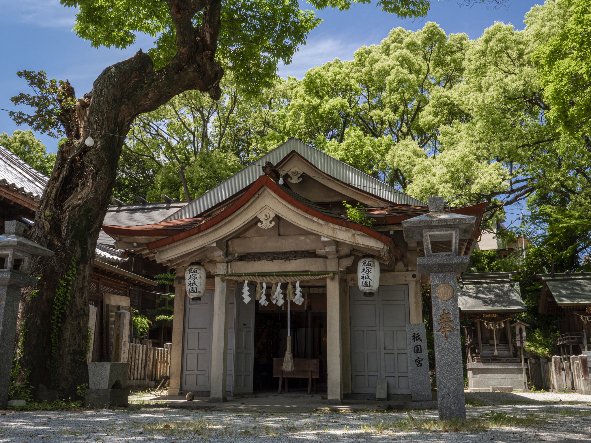 御祭神は素戔嗚尊と櫛稲田姫命で、京都の八坂神社(祇園神社)を勧請したものです。享保17年(1732)の飢饉を機に始まったとされる飯塚山笠は、当社への奉納のお祭りで、夏の市民祭として親しまれています。