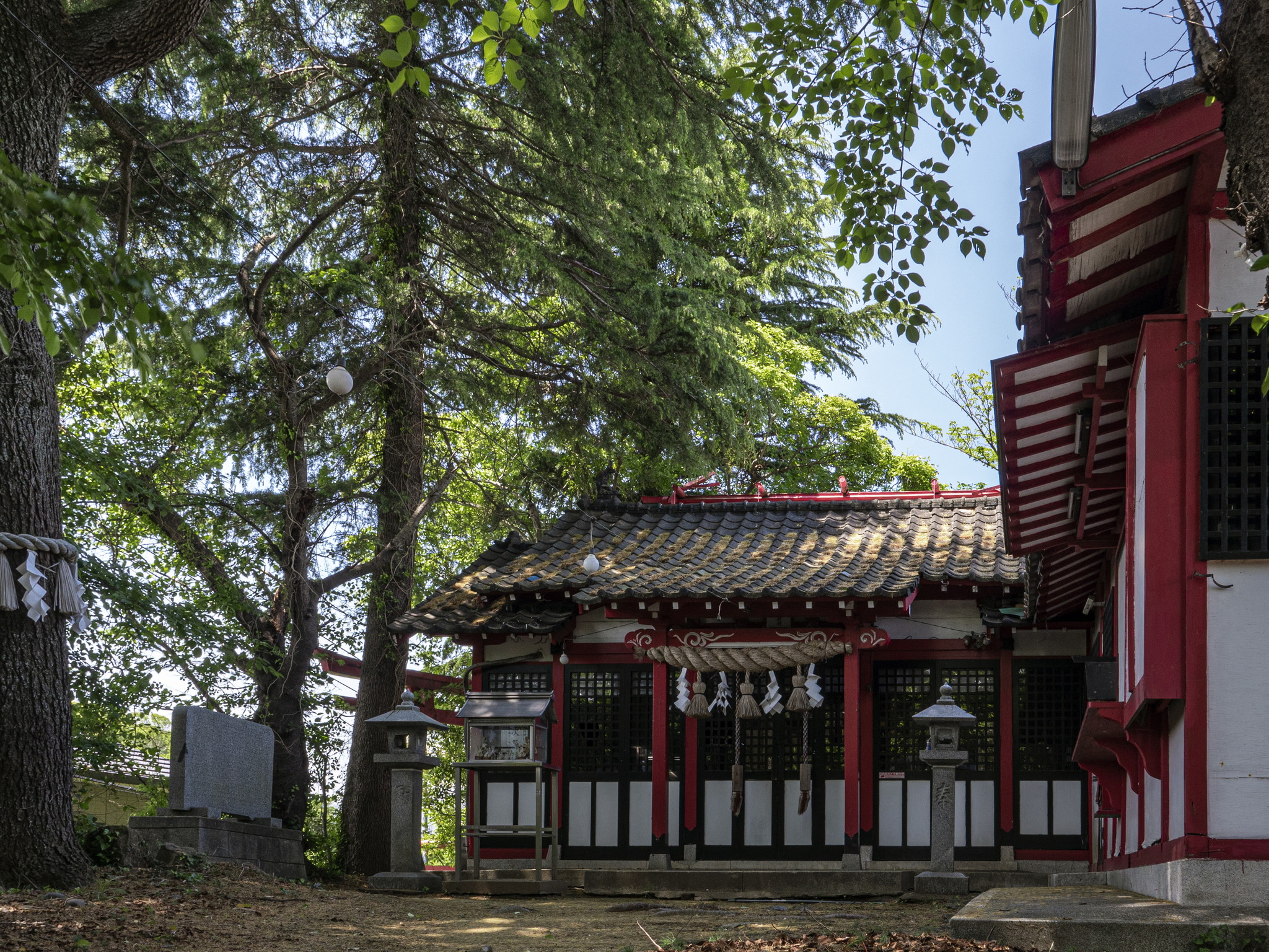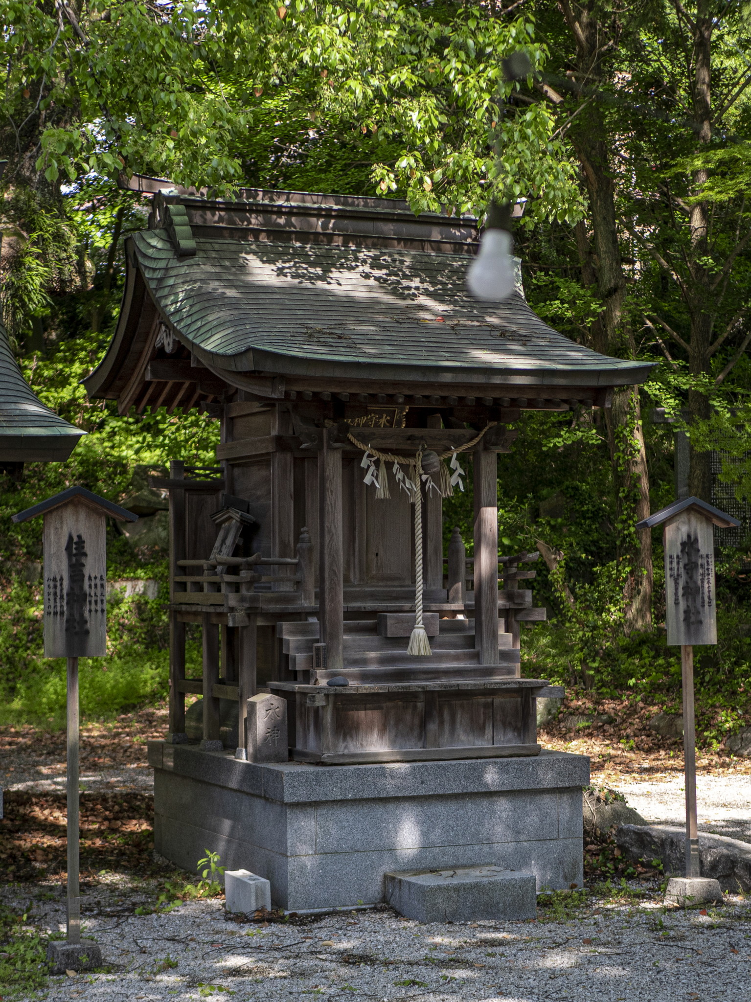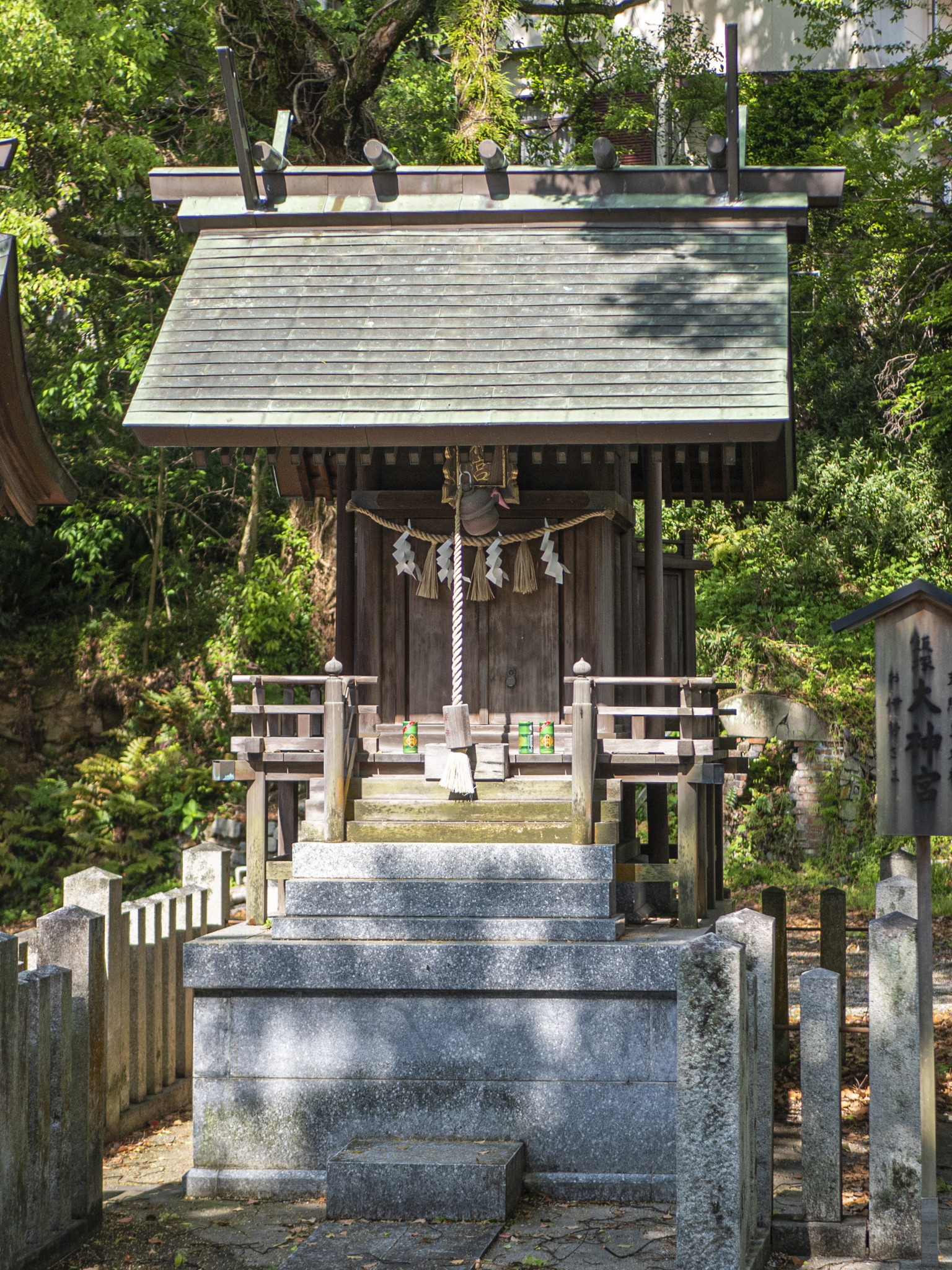 向町にあった大神宮が明治42年(1909)に境内に合祀されたもので、向町で「神の栄」の銘柄だった麻生酒造跡地に旧祠が残っています。