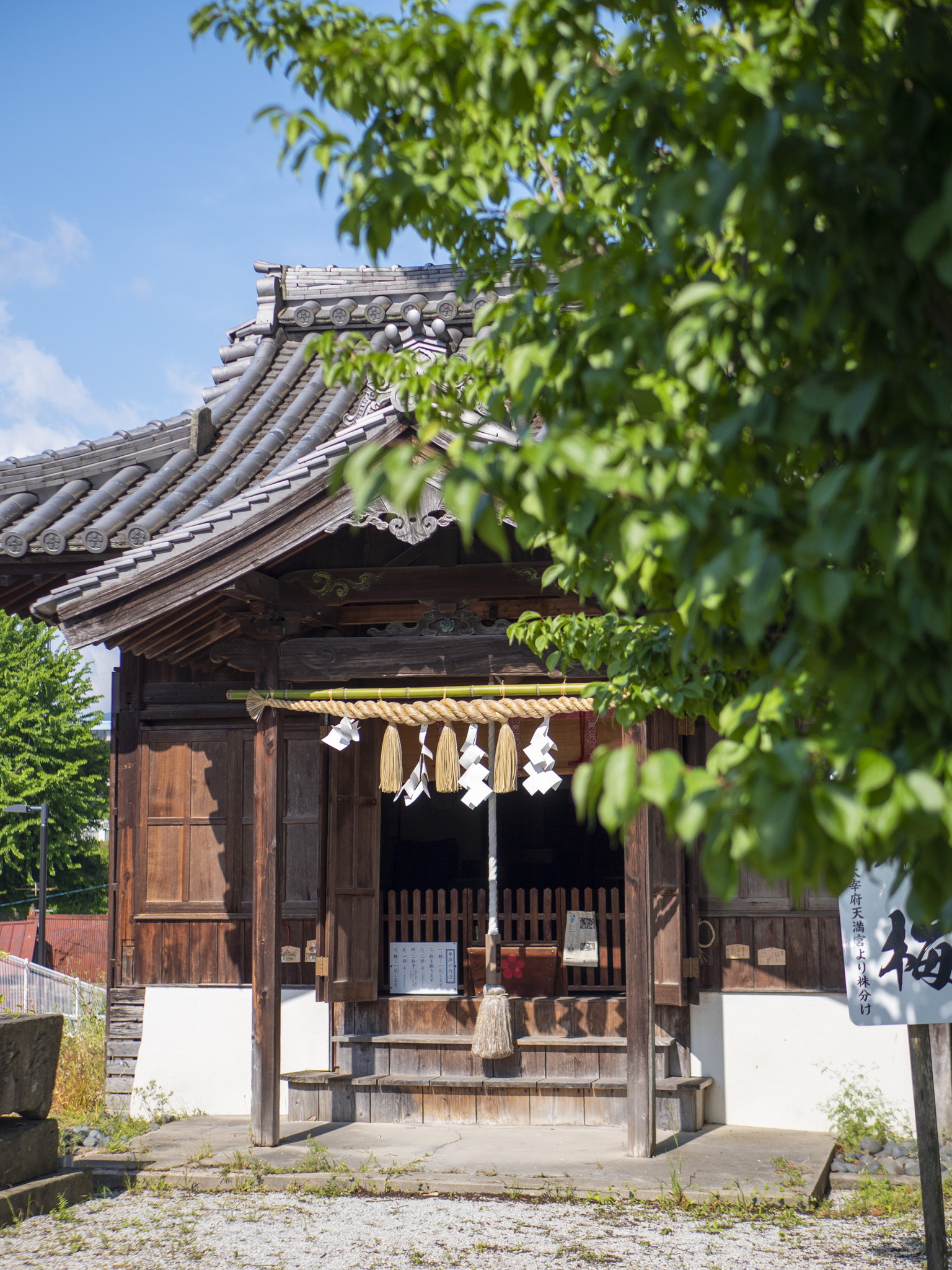 太宰府天満宮から勧請された菅原道真公の分霊を祀っています。社前の飛梅は昭和20年代に太宰府天満宮の西高辻家と飯塚の嶋田家と縁ができた時に株分けしたものです。飛梅は他の梅より約1ヶ月早く開花し、毎年1月初旬から2月初旬まで白梅を咲かせています。