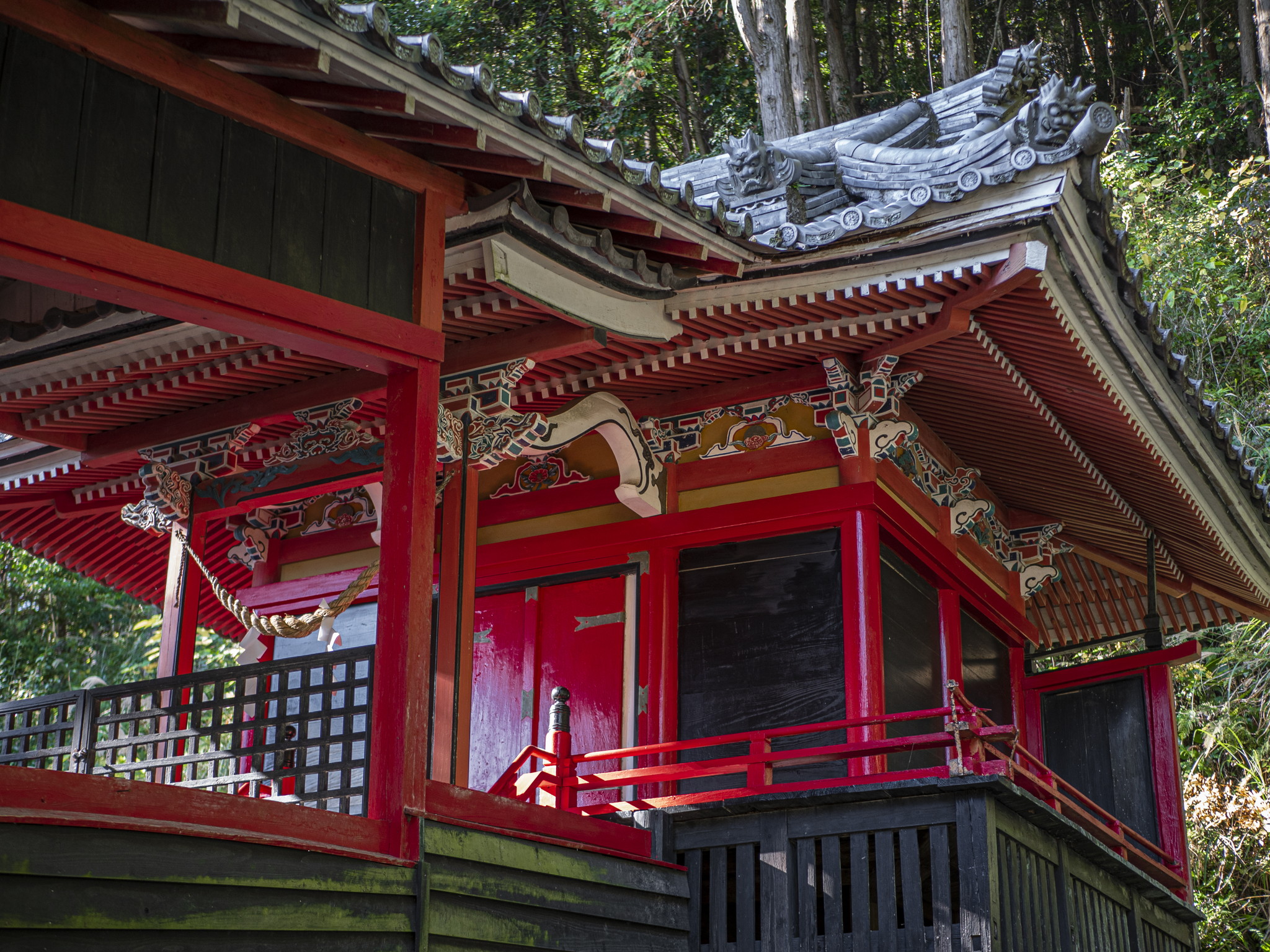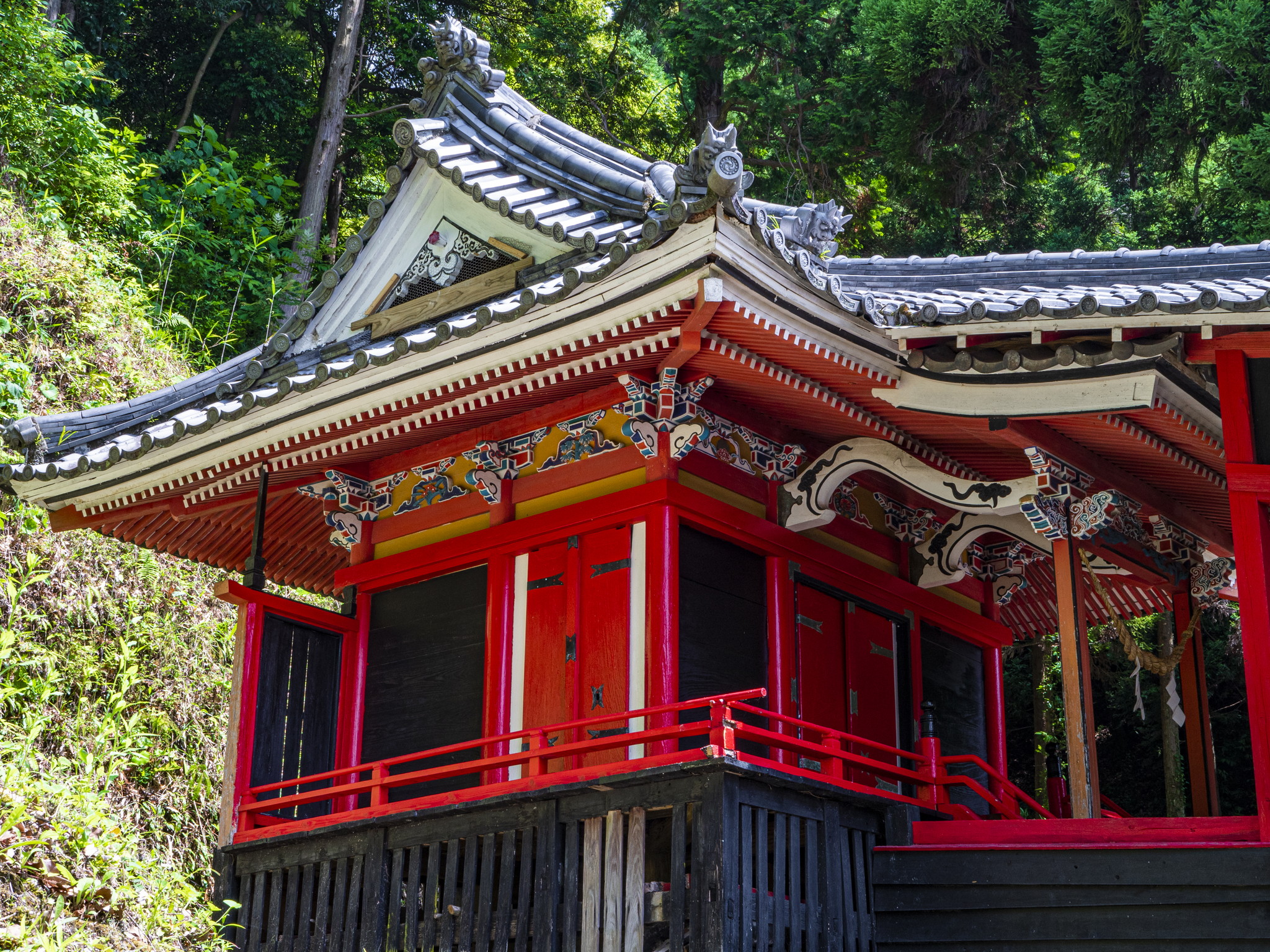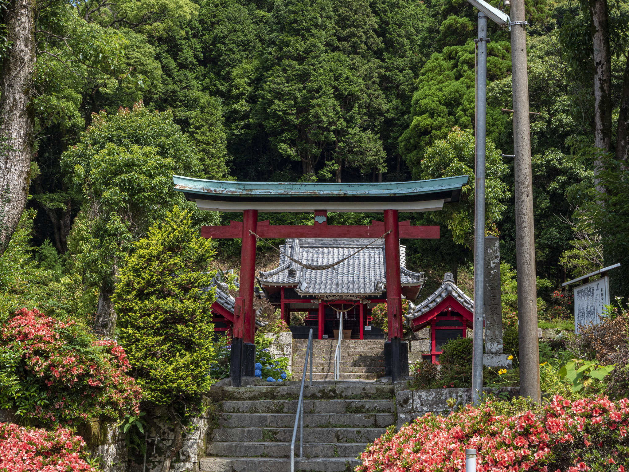 その宇佐神宮の元宮とされる御許山(馬城嶺)山頂に鎮座する大元神社は、比売大神(多岐津姫命・市杵嶋姫命・多紀理姫命)を御祭神とし、頂上側は禁足地となっています。その山頂側に対する形で、須佐之男命を御祭神として祀る八坂神社が鎮座しています。