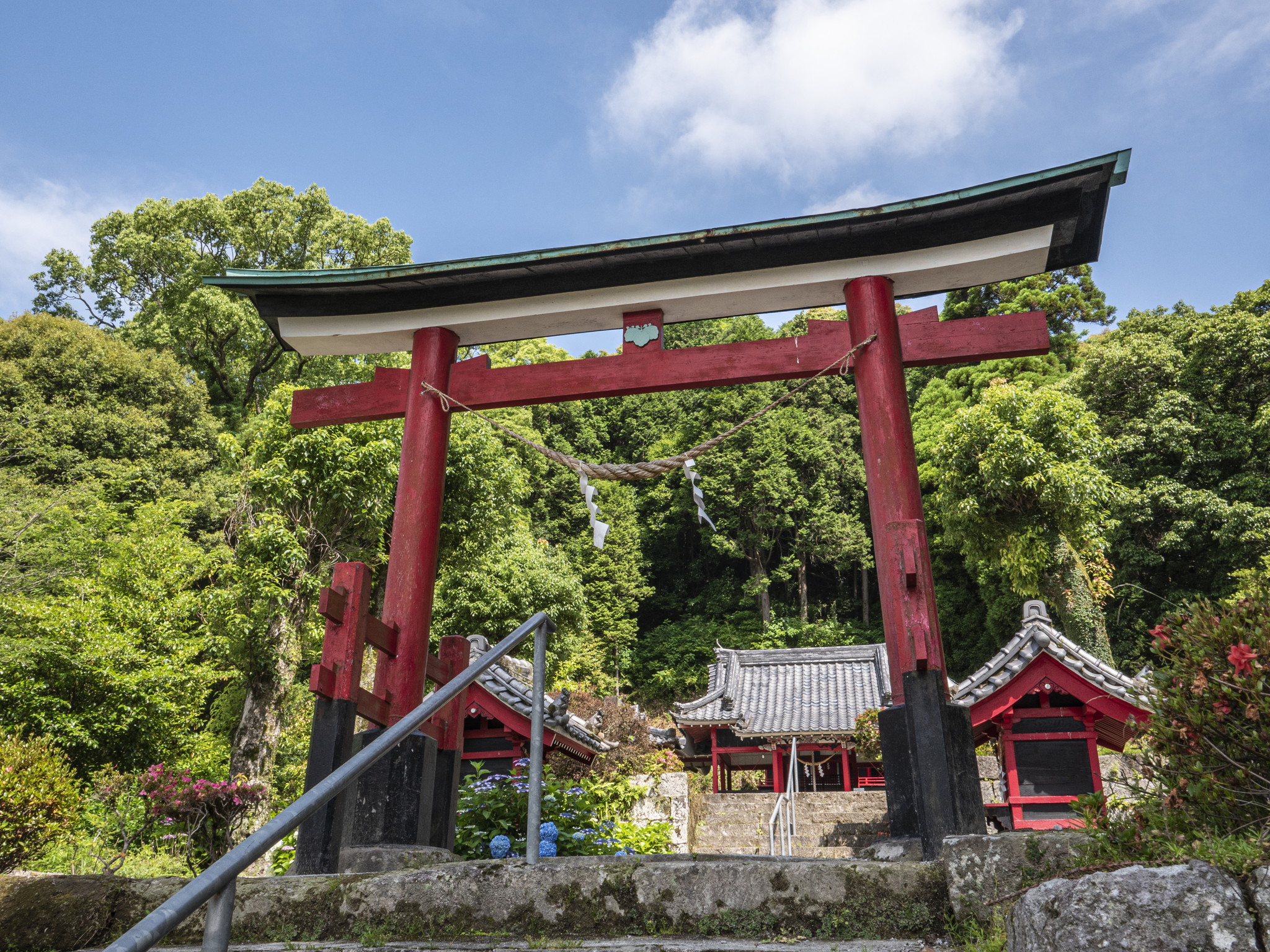 豊後国からの移民、辛嶋氏が祖神とする五十猛命を御祭神とすること。それらの背景から宇佐神宮との関りは深く、宇佐神宮の由緒を編纂した『八幡宇佐宮御託宣集』においても「辛国」の名が記されています。八幡大神は、辛国の城に八流の幡と天降り、日本の神に成ったと伝えています。また『八幡宇佐宮御託宣集』において記せられる「辛国」は大隅国を念頭にしているとされ「辛国の城」は霧島山(韓国岳など)とされています。
