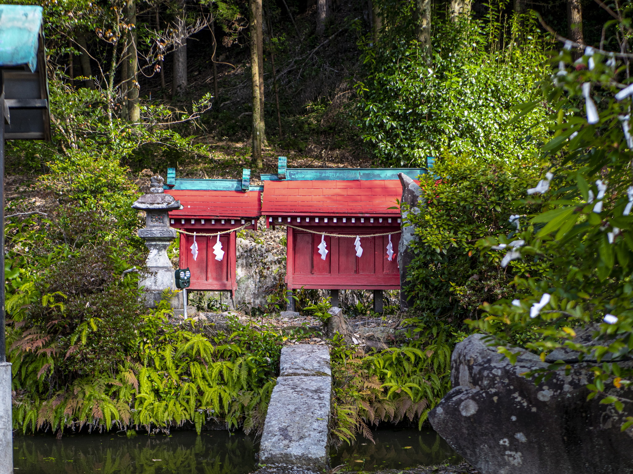 社殿向かって右手の神池に鎮座。大山祇神祀っています。由緒不詳。縦4尺3寸、横1尺6寸。