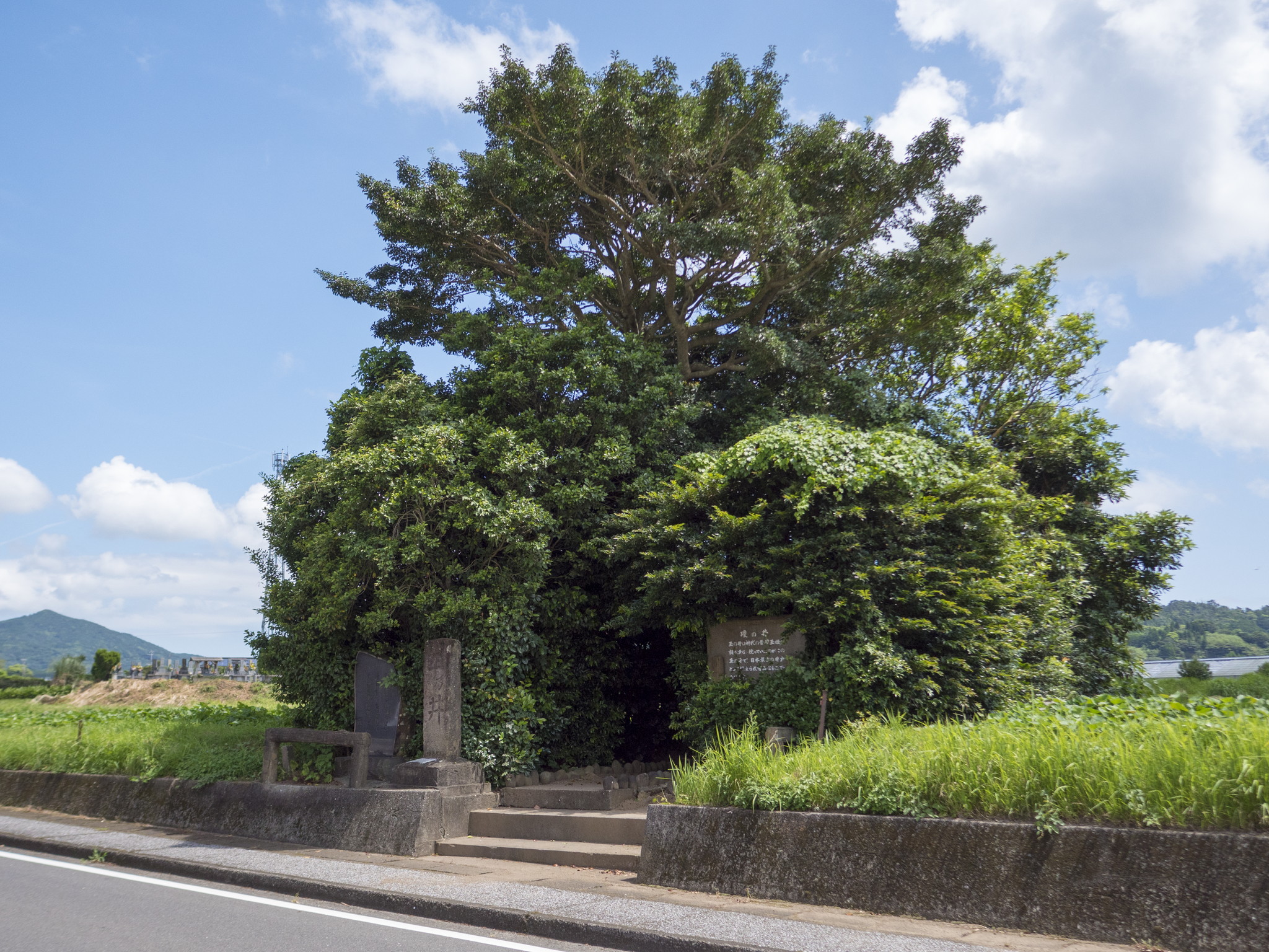 薩摩国さつまのくに一之宮いちのみや枚聞神社ひらききじんじゃから北へ700m程の地にある「たま」は、山幸彦やまさちひこ彦火々出見命ひこほほでみのみこと)と豊玉姫命とよたまひめのみことの出合った地です。