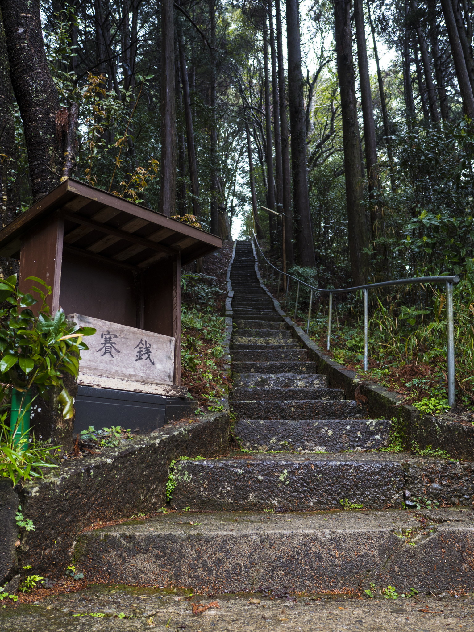 鳥居から境内へ続く112段の石段は、嘉永5年(1852)永江部落に住む上田廣助の発願で、800人の村人が協力して成ったものです。当時の参道は、曲がりくねった急坂の悪い道でした。足軽身分であった上田廣助は、大変に敬神の念の深い人で、日頃からこの悪い坂道を、石段に作り替えようと考えていました。上田廣助は、時の庄屋であった永田栄左エ門に協力を求め、元治元年(1864)に完成されました。時の人吉藩主の相良長福は、その功を賞して上田廣助に対し、武士の身分である士分に取り立てようと沙汰しましたが、生まれつき気骨ものの彼は、これを断り、その代わりとして、宮原の姓を与えられました。神社下の宮原氏がその子孫として今も継承されています。