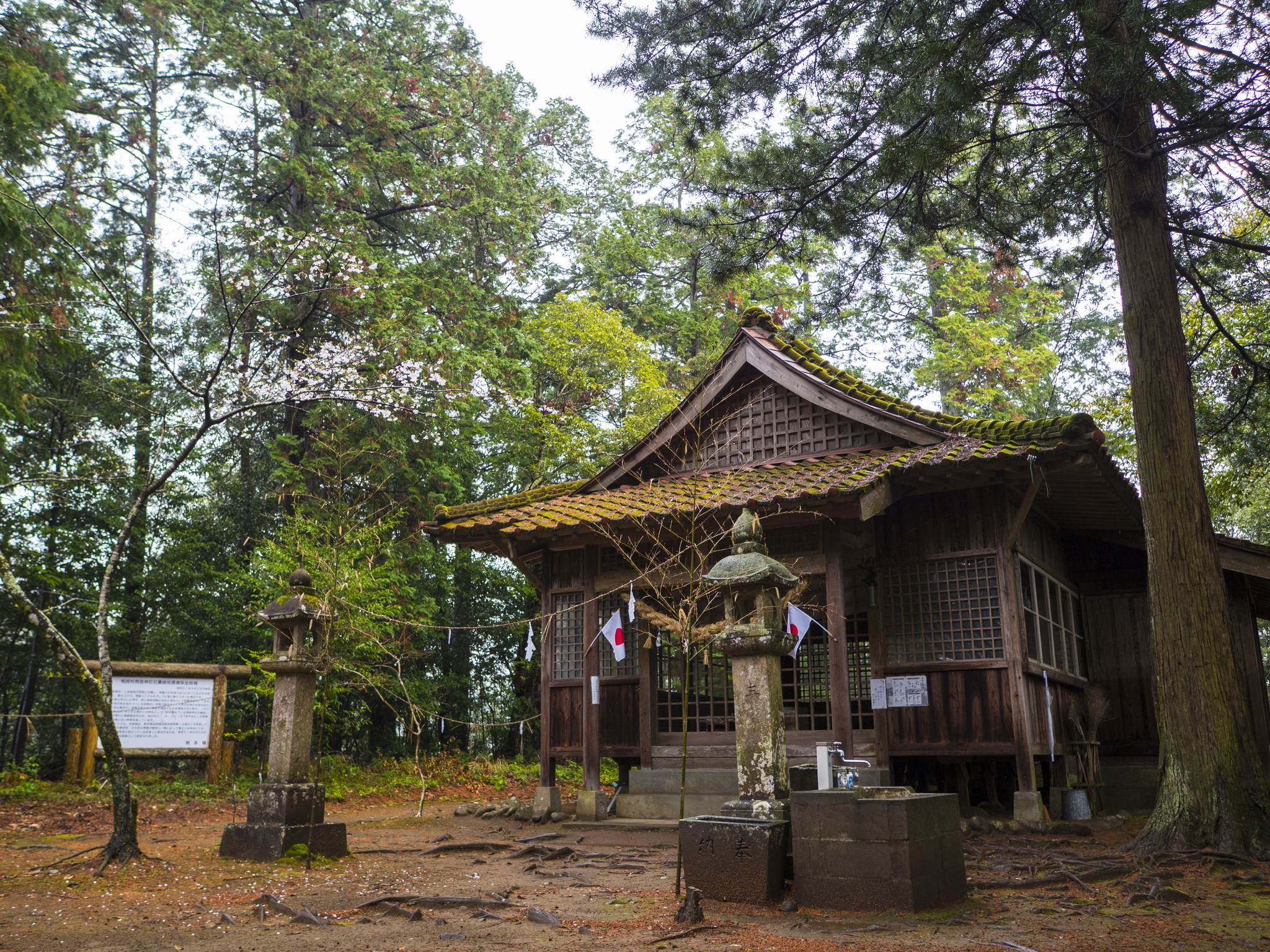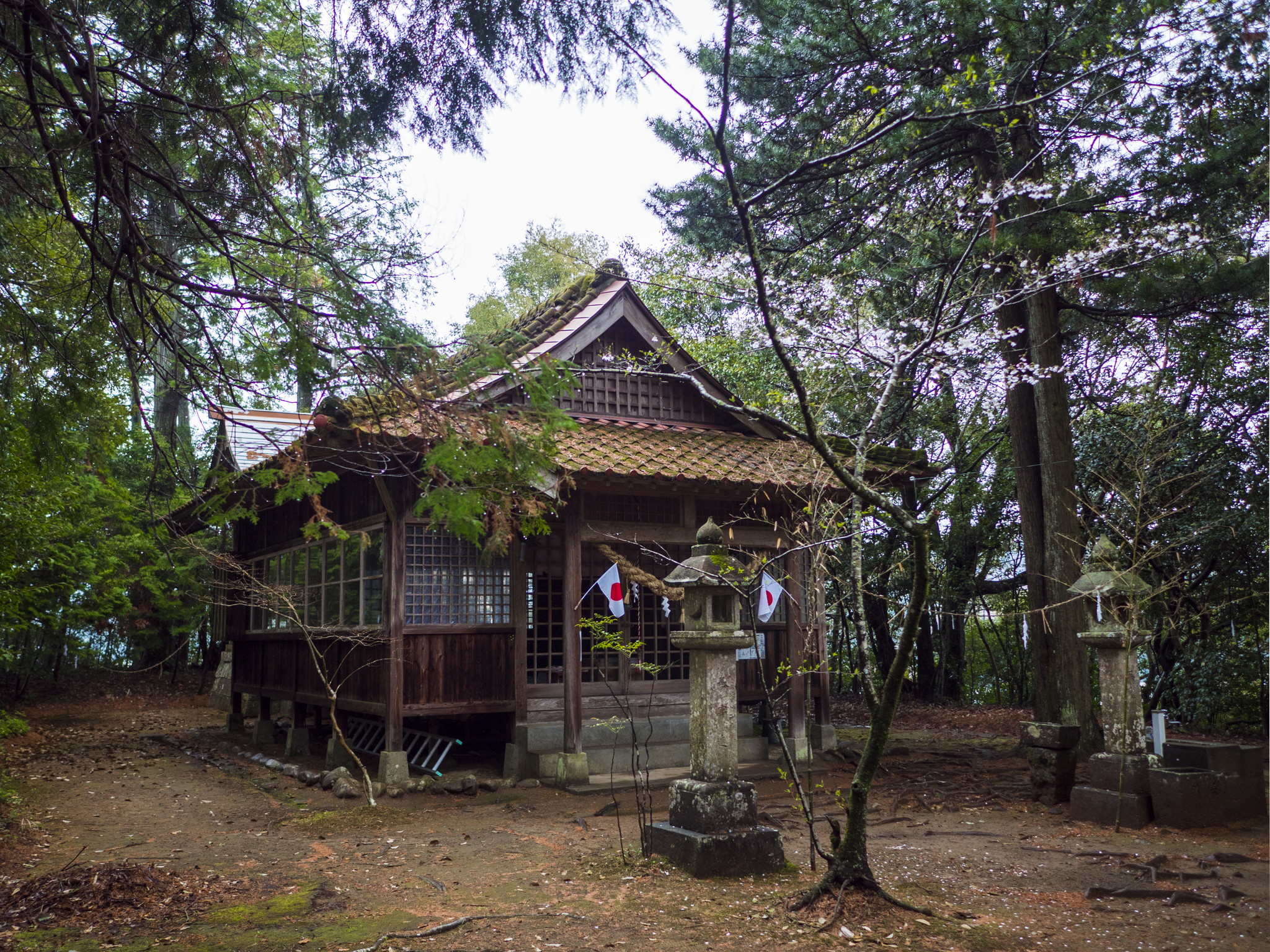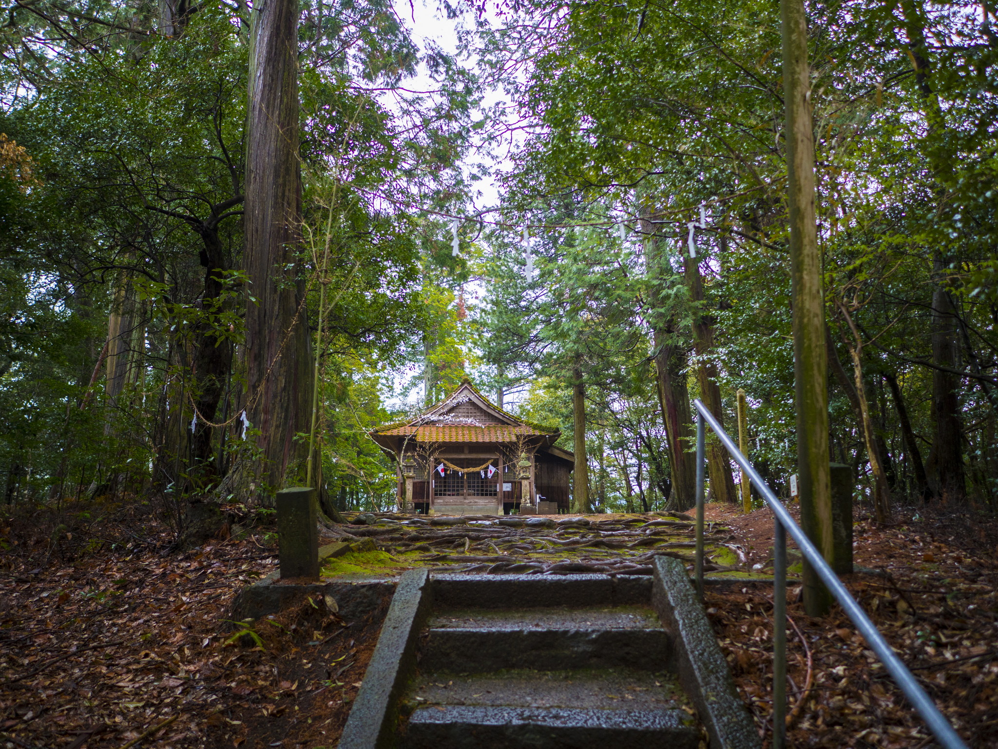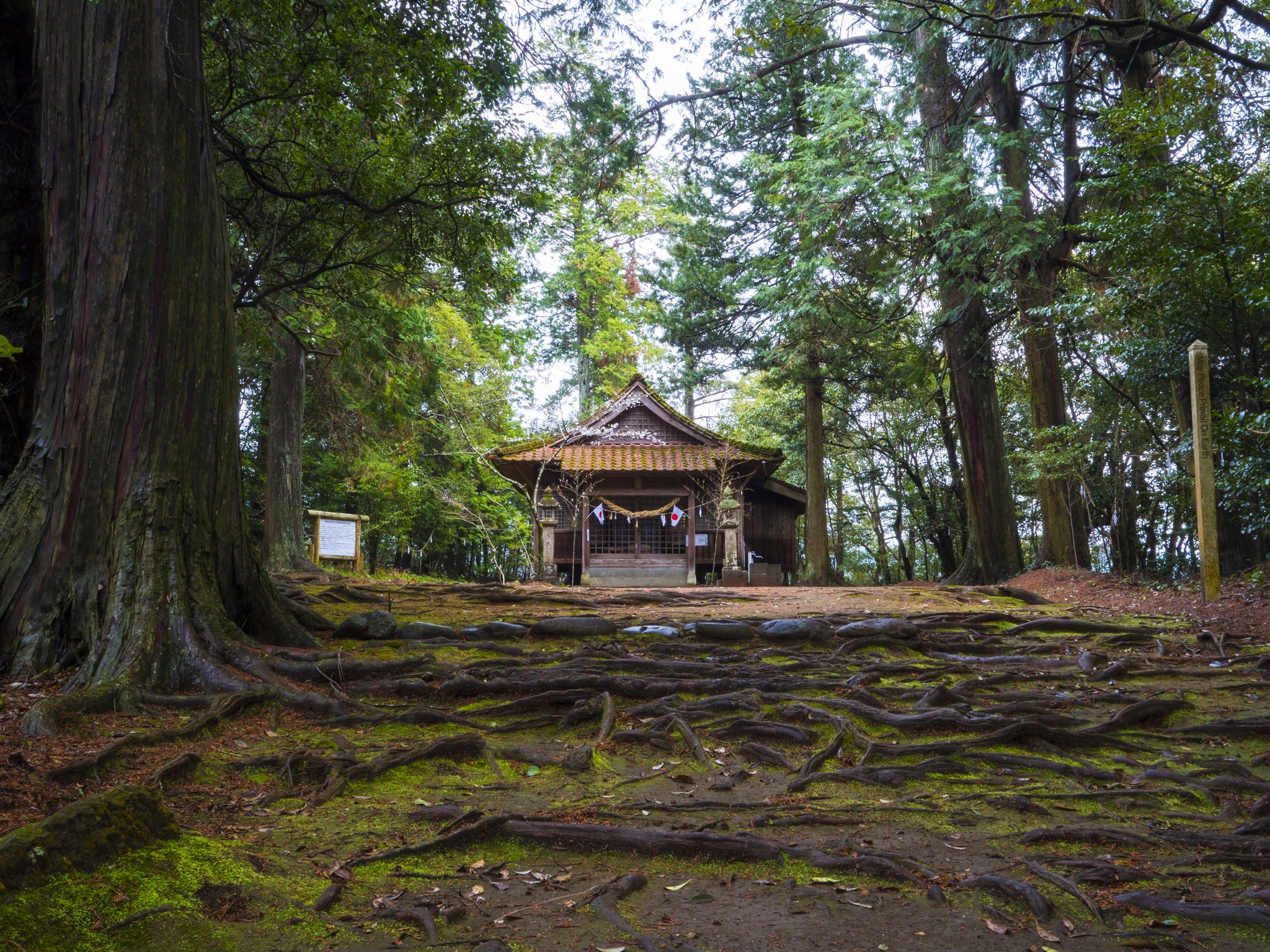 球磨郡相良村、球磨川水系最大の支流の川辺川に沿って凡そ70戸の集落を成す永江地区の地の産土神である雨宮神社は、水田の中に孤立したようにそびえる雨宮丘の幽遠な木立の奥に鎮座しています。