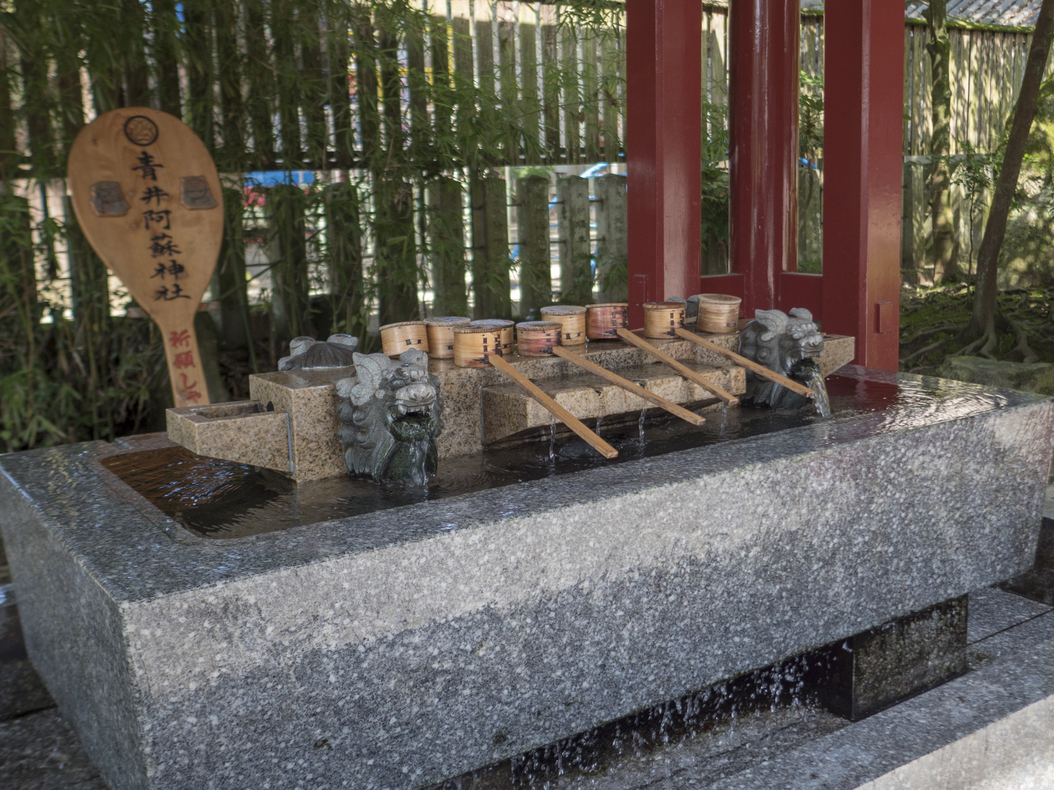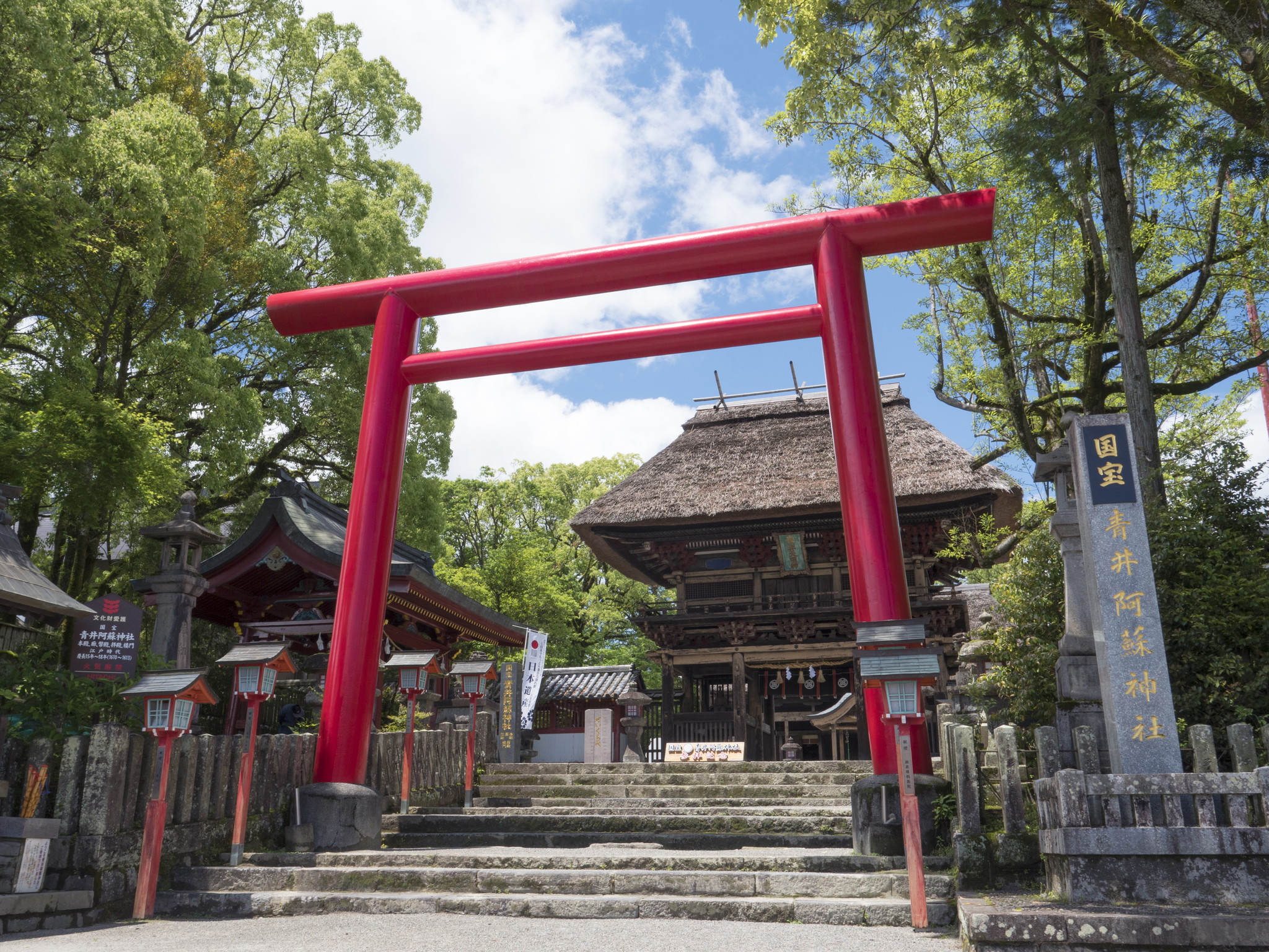 青井阿蘇神社の社殿群の、本殿、廊、幣殿、拝殿、楼門の建造物五棟が国宝の指定を受けており、造営時の棟札一枚と改築の年代・内容が明記された銘札五枚が附として指定されています。