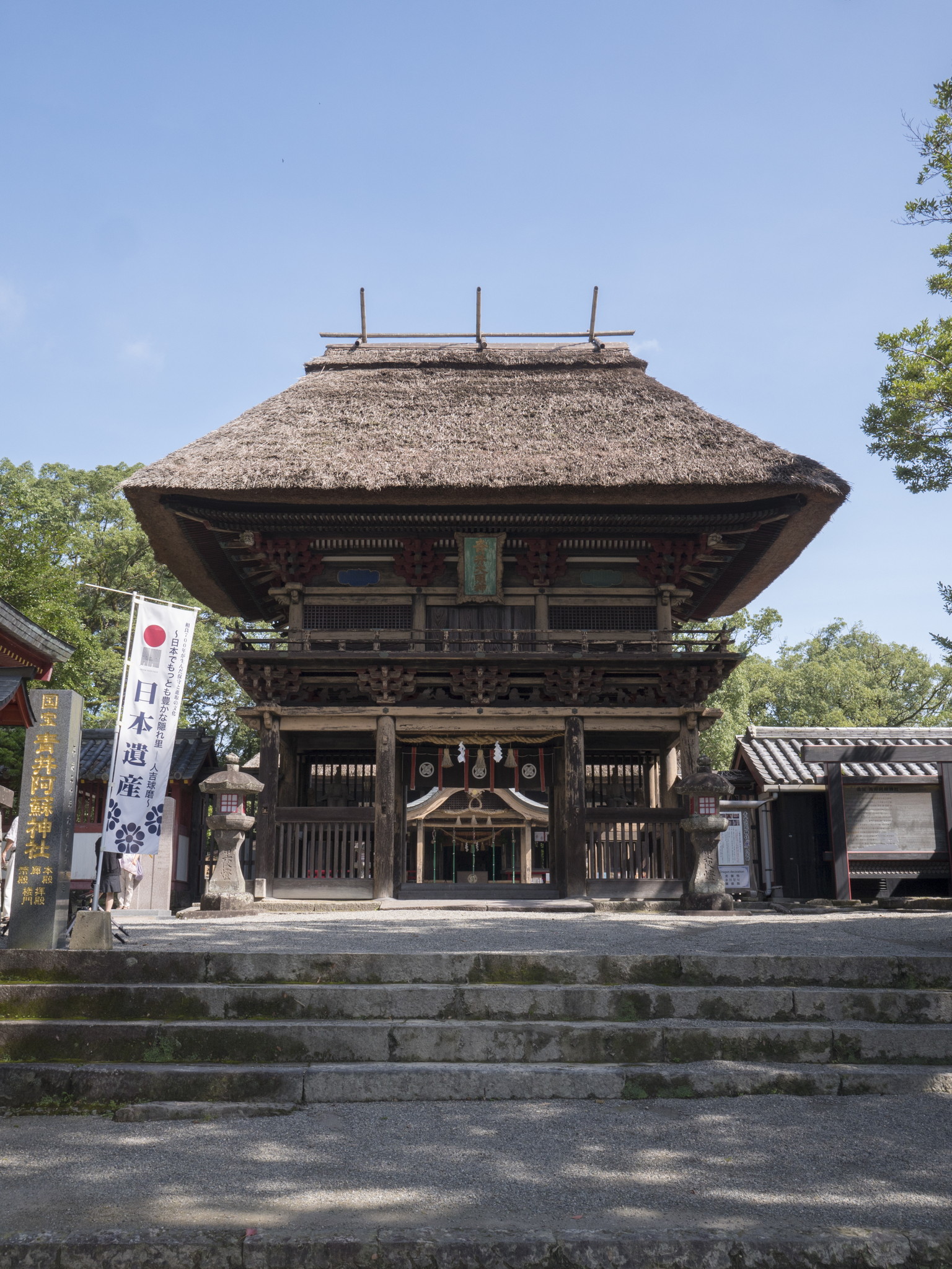 社殿群は、相良長毎により、慶長15年(1609年)から4ケ年にわたり造営されたものです。慶長15年(1610)に本殿・幣殿・廊。慶長16年(1611)に拝殿。慶長18年(1613)に楼門が造営され、一連の御社殿はすべて同時期の造営で、全国的に見ても大変貴重なものです。昭和8年(1933年)1月23日に国宝保存法に基づき当時の国宝(旧国宝)に指定されます。昭和25年(1950年)には文化財保護法に基づき国指定重要文化財に、平成20年(2008年)6月9日に国宝に指定されました。