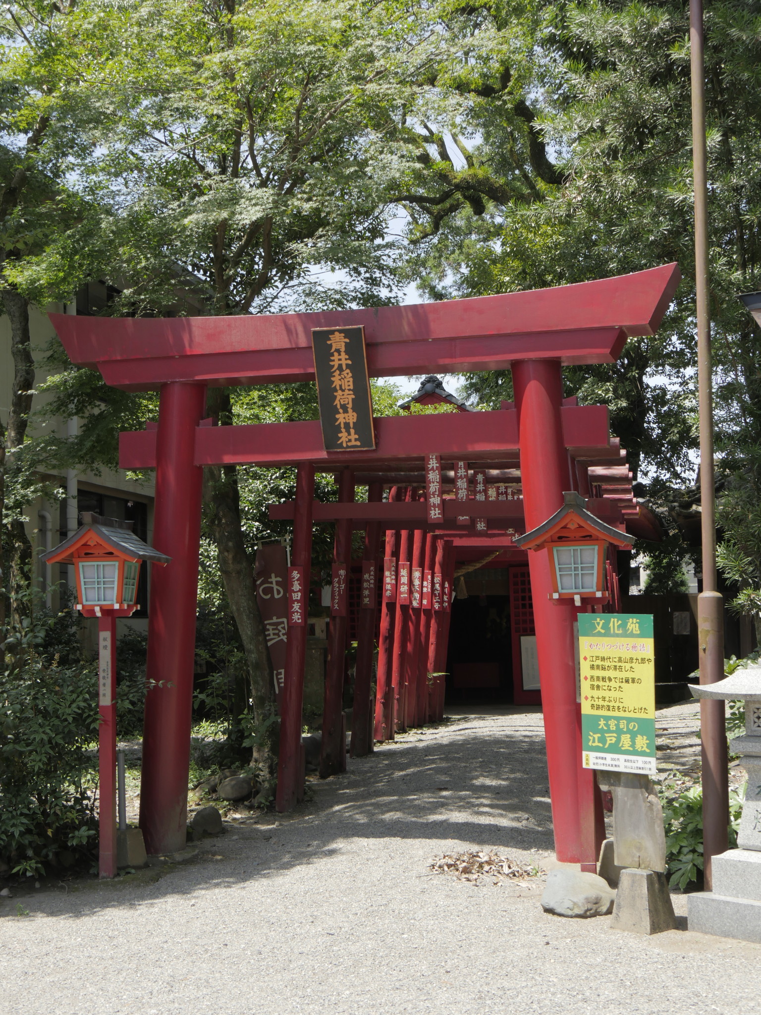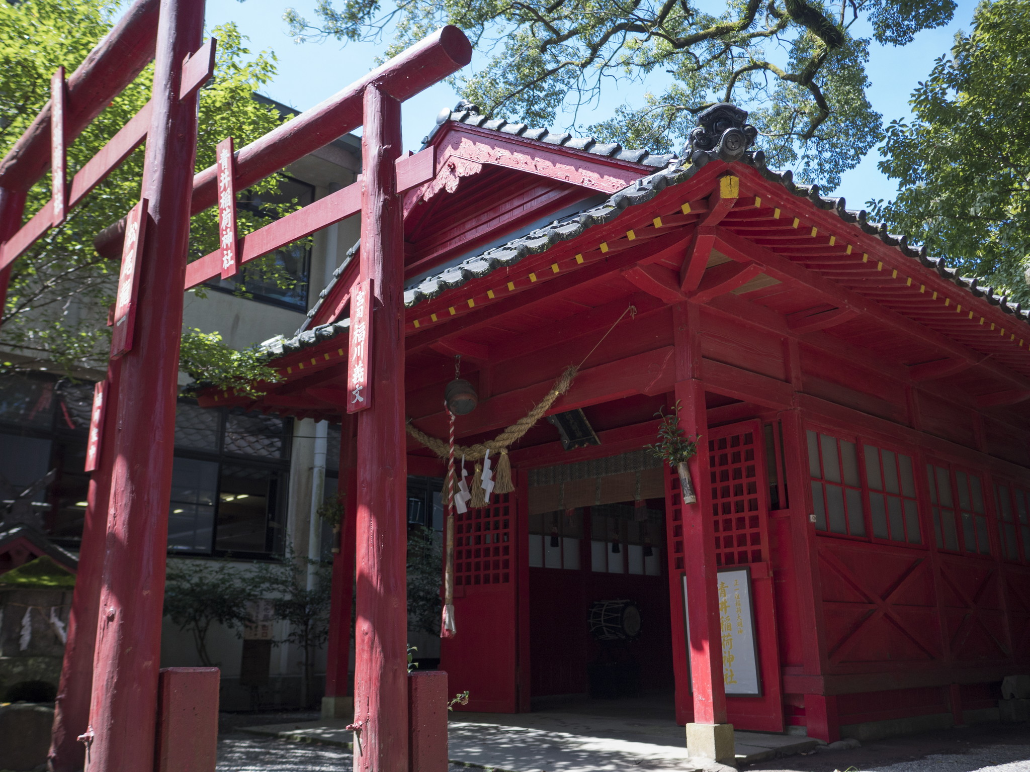 五穀を司る神として祀られる稲荷神社は、御祭神として宇迦之御魂神、大田神、大宮神を祀っています。例大祭は旧暦2月の初午の日。月次祭は毎月25日です。御祭神の宇迦之御魂神は稲の霊で、大田神、大宮神とともに食物を司る神として信仰されています。鎮座は宝暦9年(1759)で、当時人吉は度重なる災害や藩主の交代で経済的にも精神的にも疲弊しており、豊饒と藩内の安泰を願い祈り創建されました。現在の御社殿は、天保5年(1834)に家内安全・産業繁栄・如意安楽を願い、現在の相撲場南側に造営されたものですが、昭和30年(1955)頃に現地に遷されました。