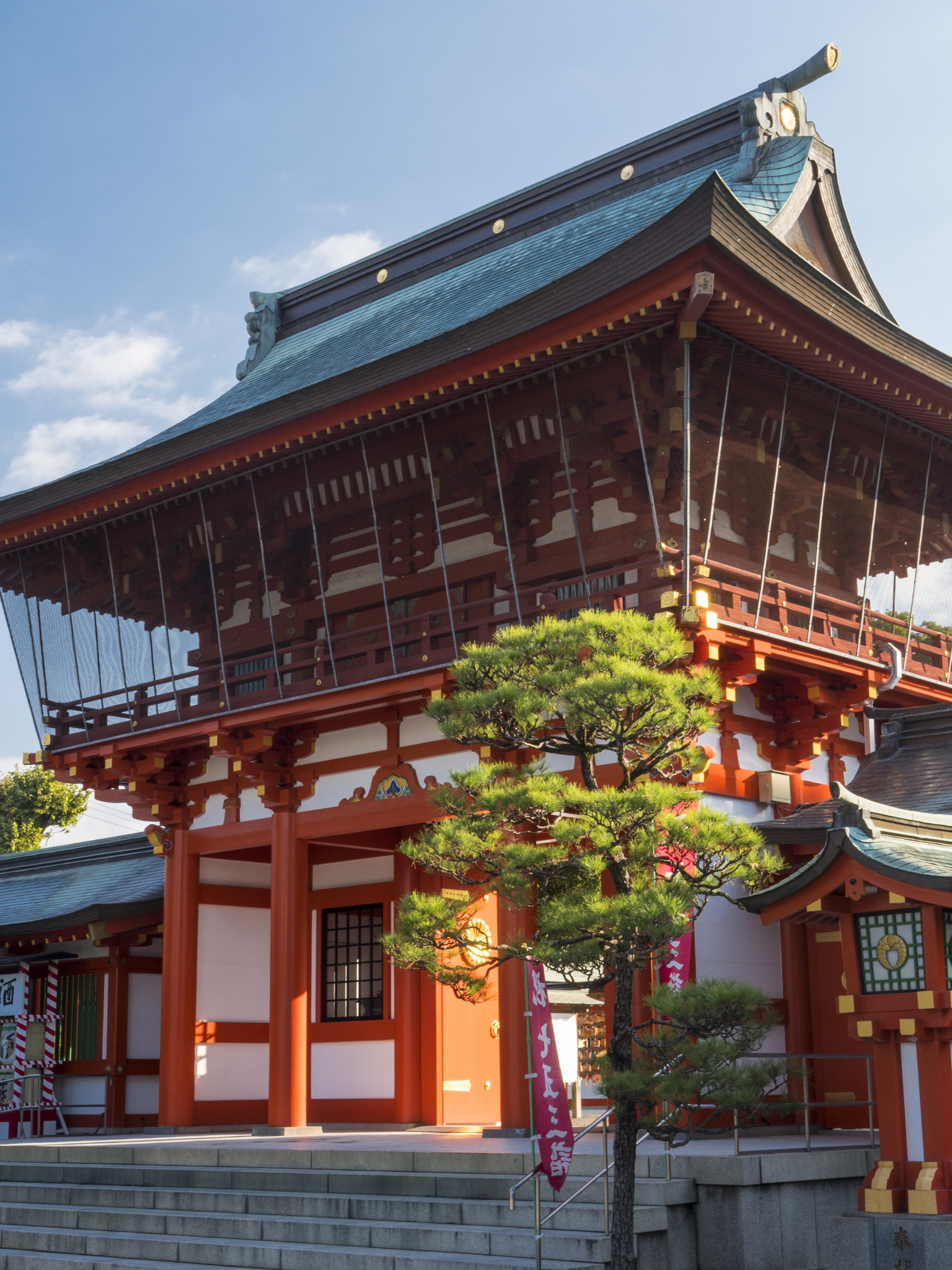 本殿の中央に主祭神の應神天皇(一宮)。向かって右に住吉大神(二宮)。向かって左に神功皇后(三宮)の御三神を奉齋尊崇して、藤崎八旛大神と仰ぎ奉っています。