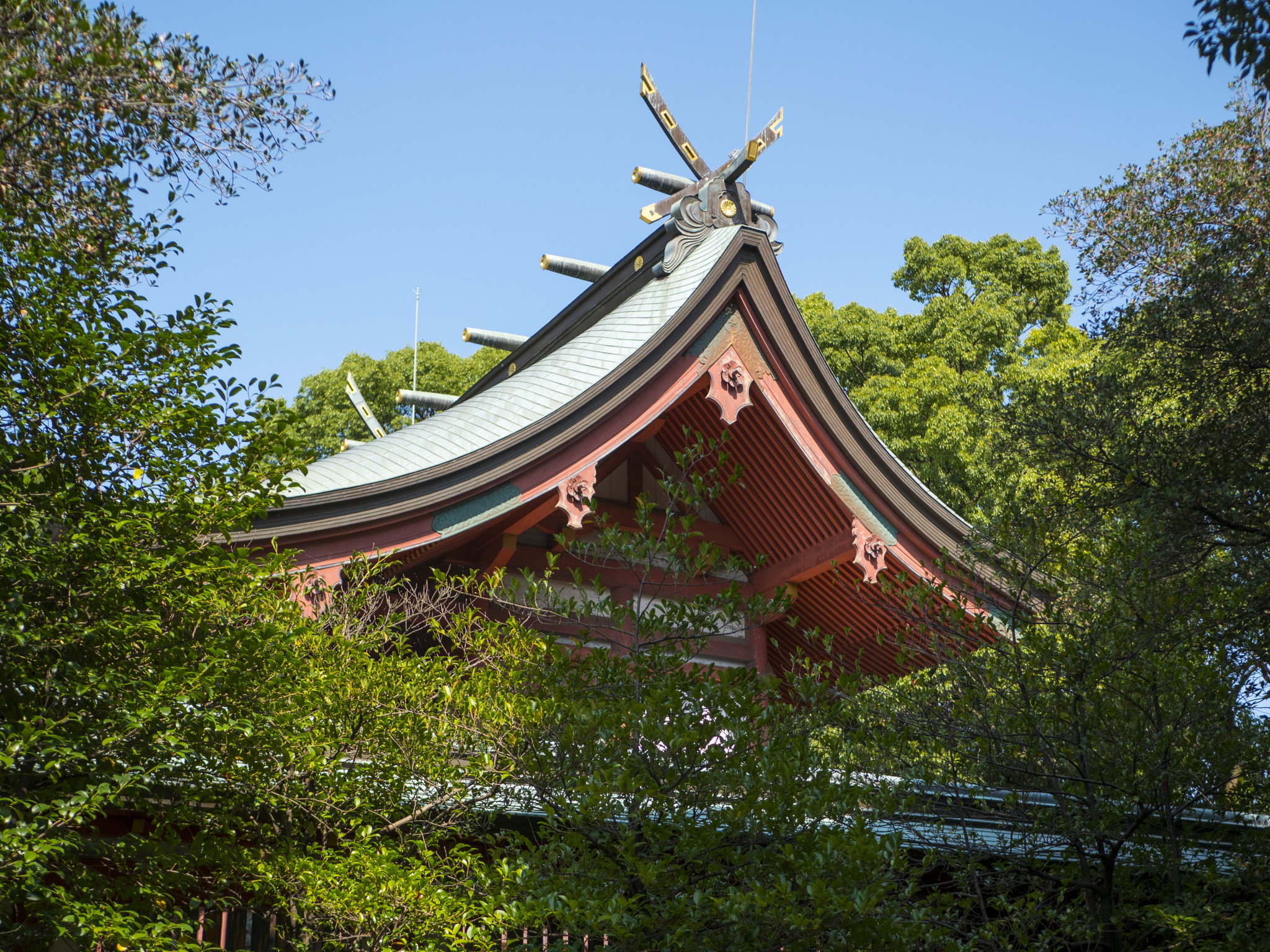社殿向かって右手奥から、武内社・六所宮、先師社、藤井恒社。向かって左手奥から、御崎社、荒人社・人麻呂社、菅原社、三光宮、日田社、灰塚社が摂末社として奉齋されています。