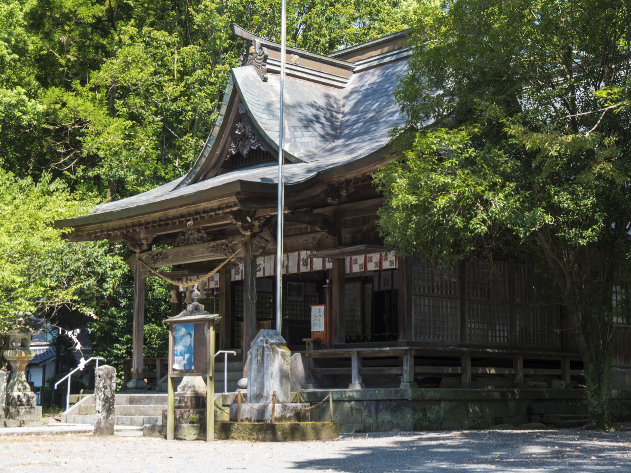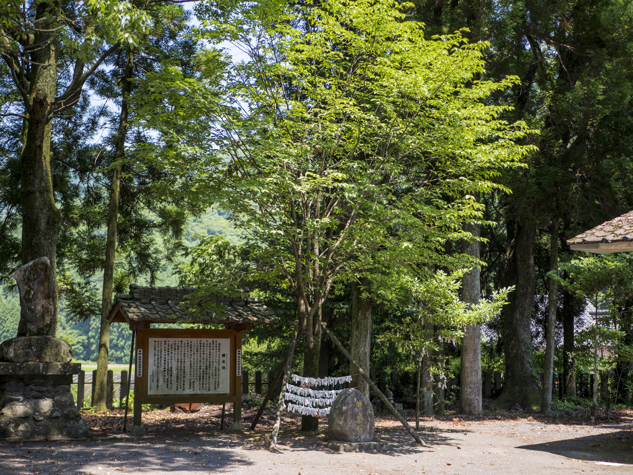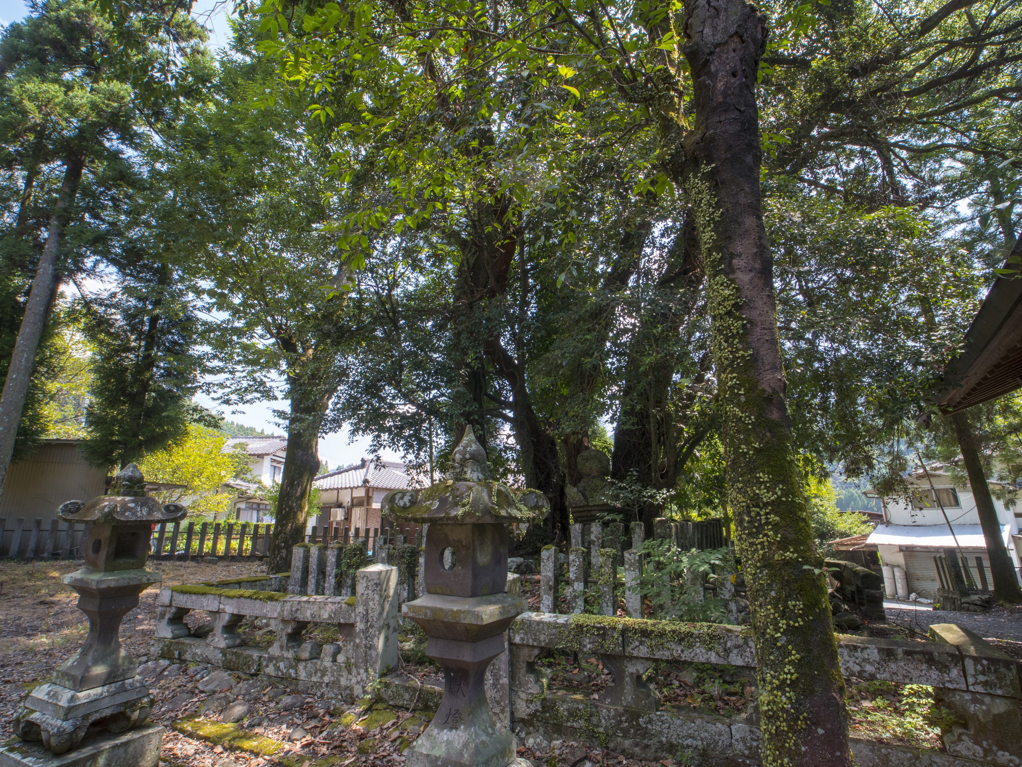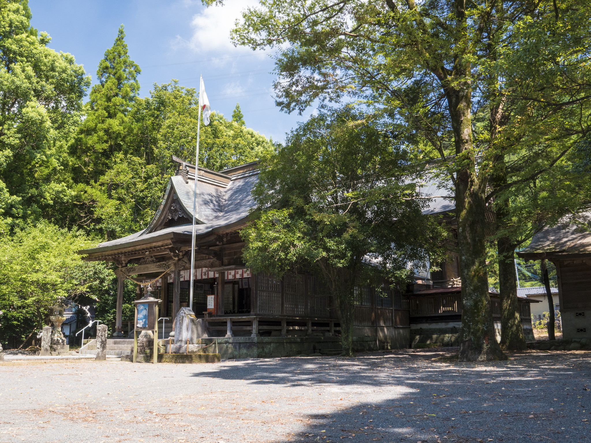 主祭神の八井耳玉命(甲佐明神)は、阿蘇神社の主祭神である健磐龍命が朝鮮半島に渡り、帰ってくるときに対馬の女性を連れ帰り、生まれた御子神で、7歳のときに甲佐へ封じられたとされています。社殿向かって右手に奉斎される御陵は、その八井耳玉命のものとされています。