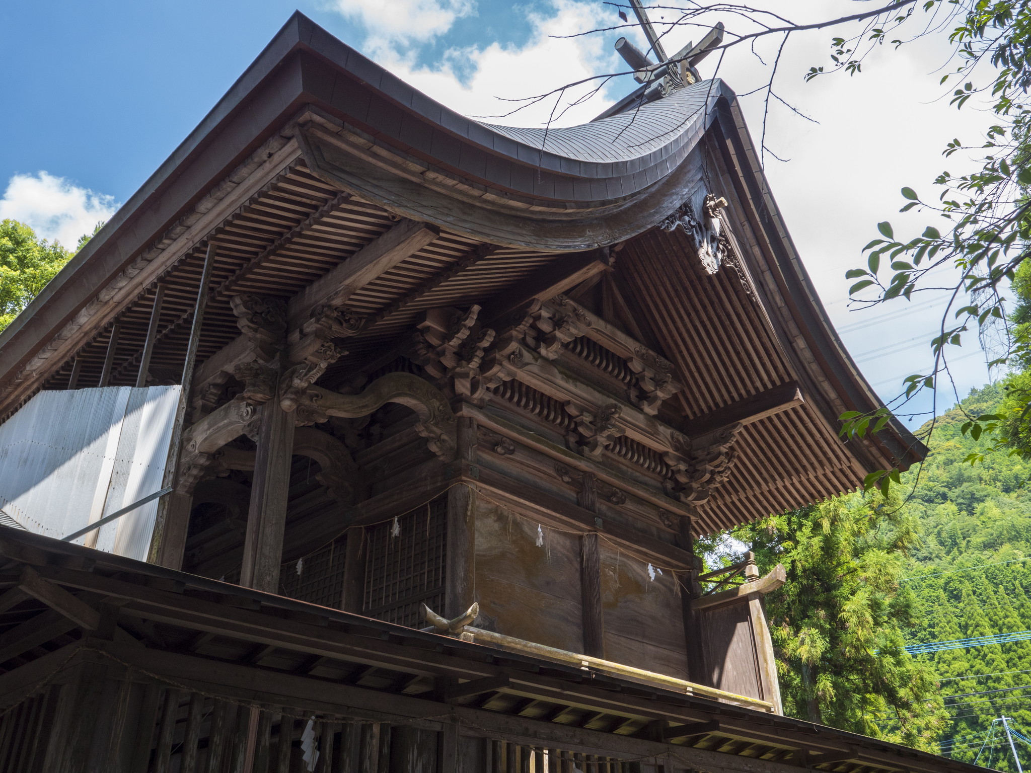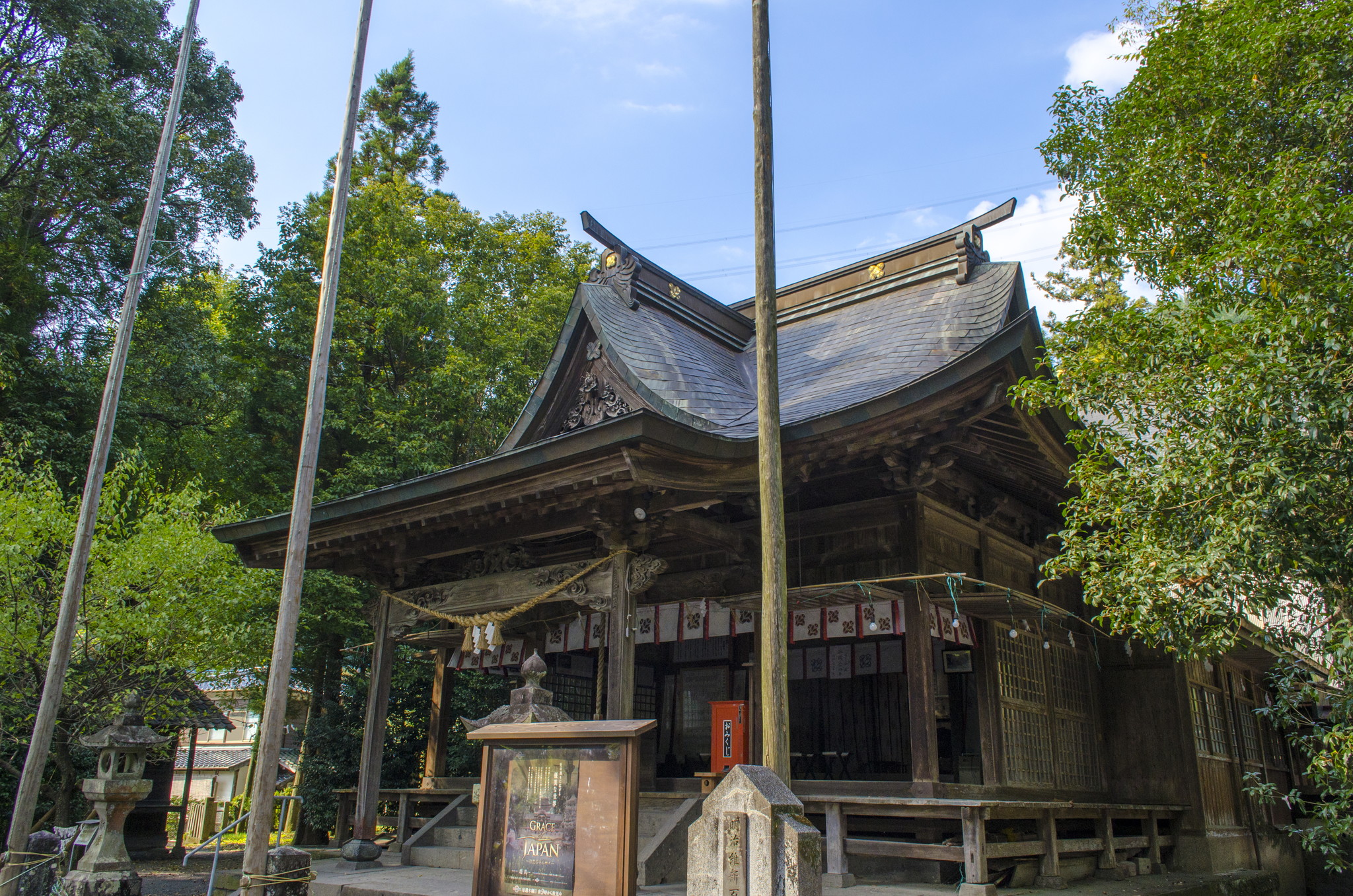 仁寿元年(851)に、二殿に阿蘇神社の主祭神の健磐龍命、三殿に郡浦神社の主祭神の蒲池比咩命を祀り、甲佐三宮大明神とも称されました。宝徳2年(1450)には、神倭磐余彦命と媛蹈鞴五十鈴媛命も配祀されたと伝えられています。