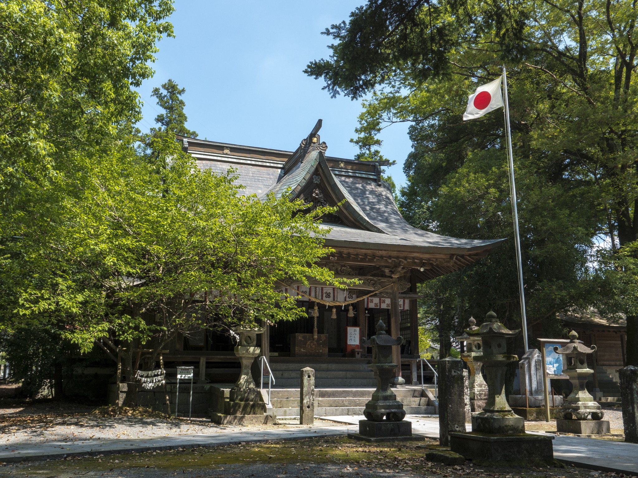 甲佐神社は、阿蘇神社、郡浦神社(宇城市三角町)、健軍神社(熊本市東区)と共に阿蘇四社と称せられる肥後国二宮で、肥後南方の守護神とされています。創建は、孝元天皇26年(前189)で、阿蘇大神(健磐龍命)が鏑矢を放ち、その矢が止まった所に宮殿を建立したと伝えられています。その由緒から「鏑崎宮」と称されていましたが、神功皇后が三韓征伐ののち、甲冑を納めたことから「甲佐宮」と称されるようになりました。