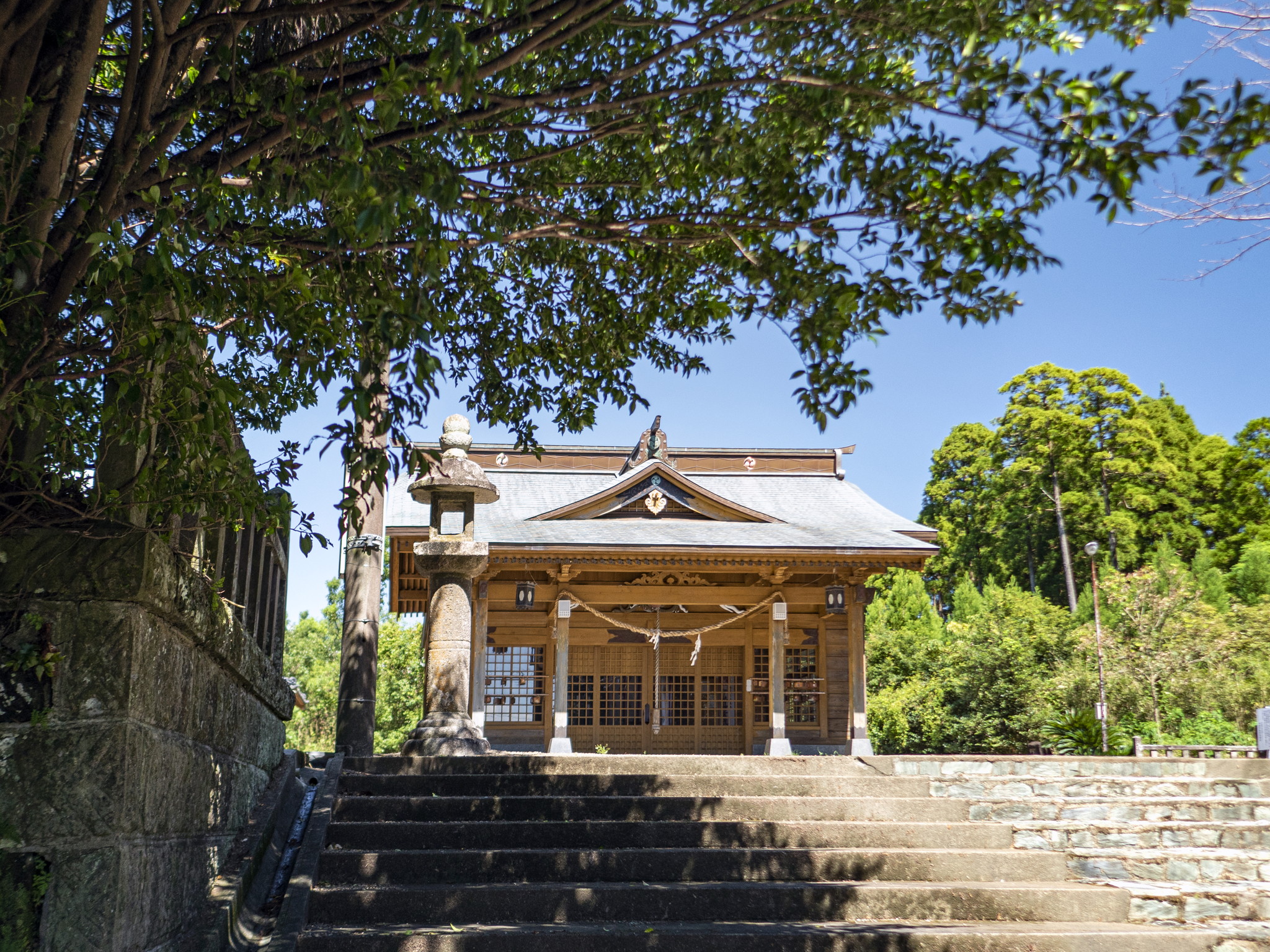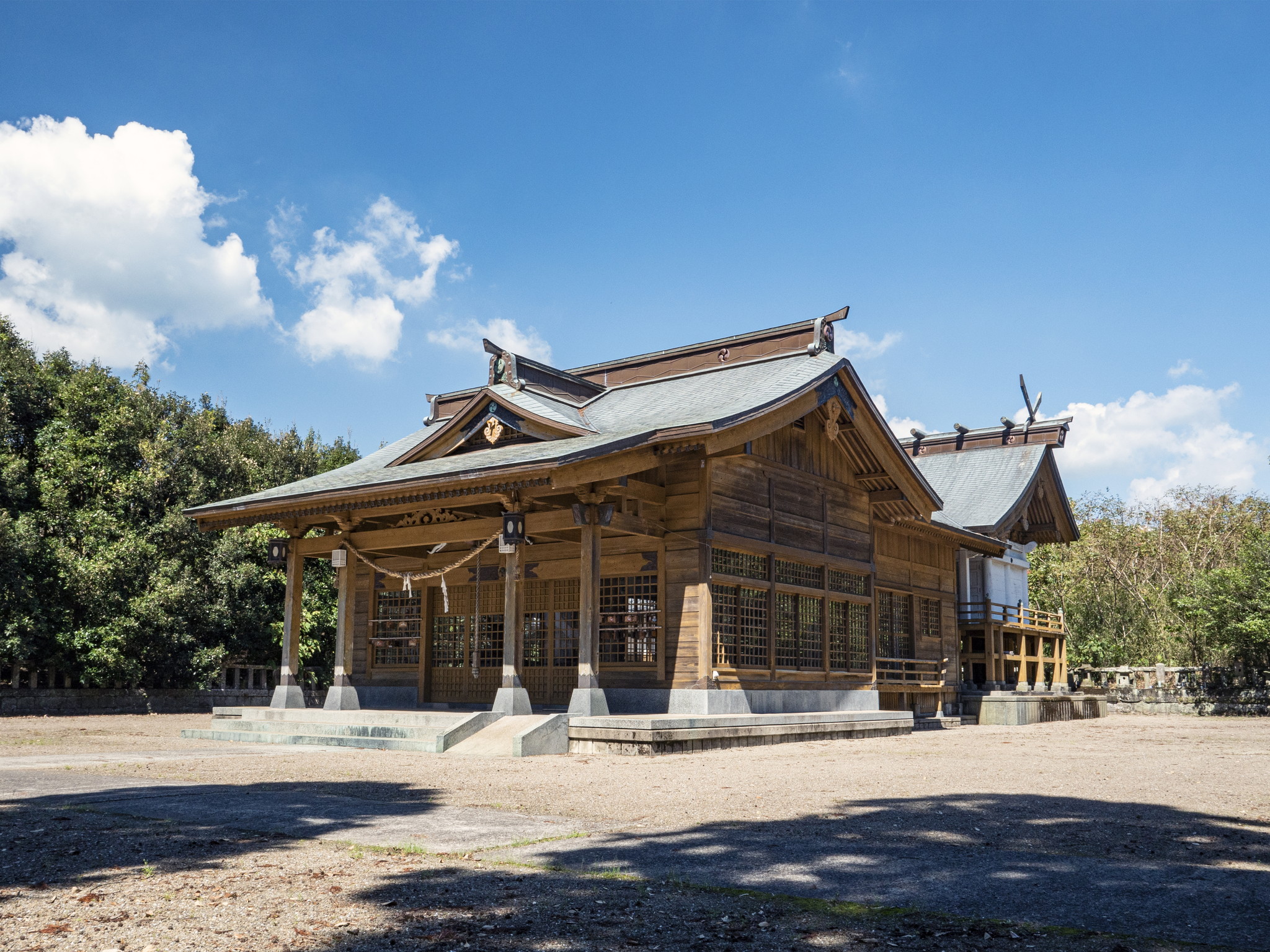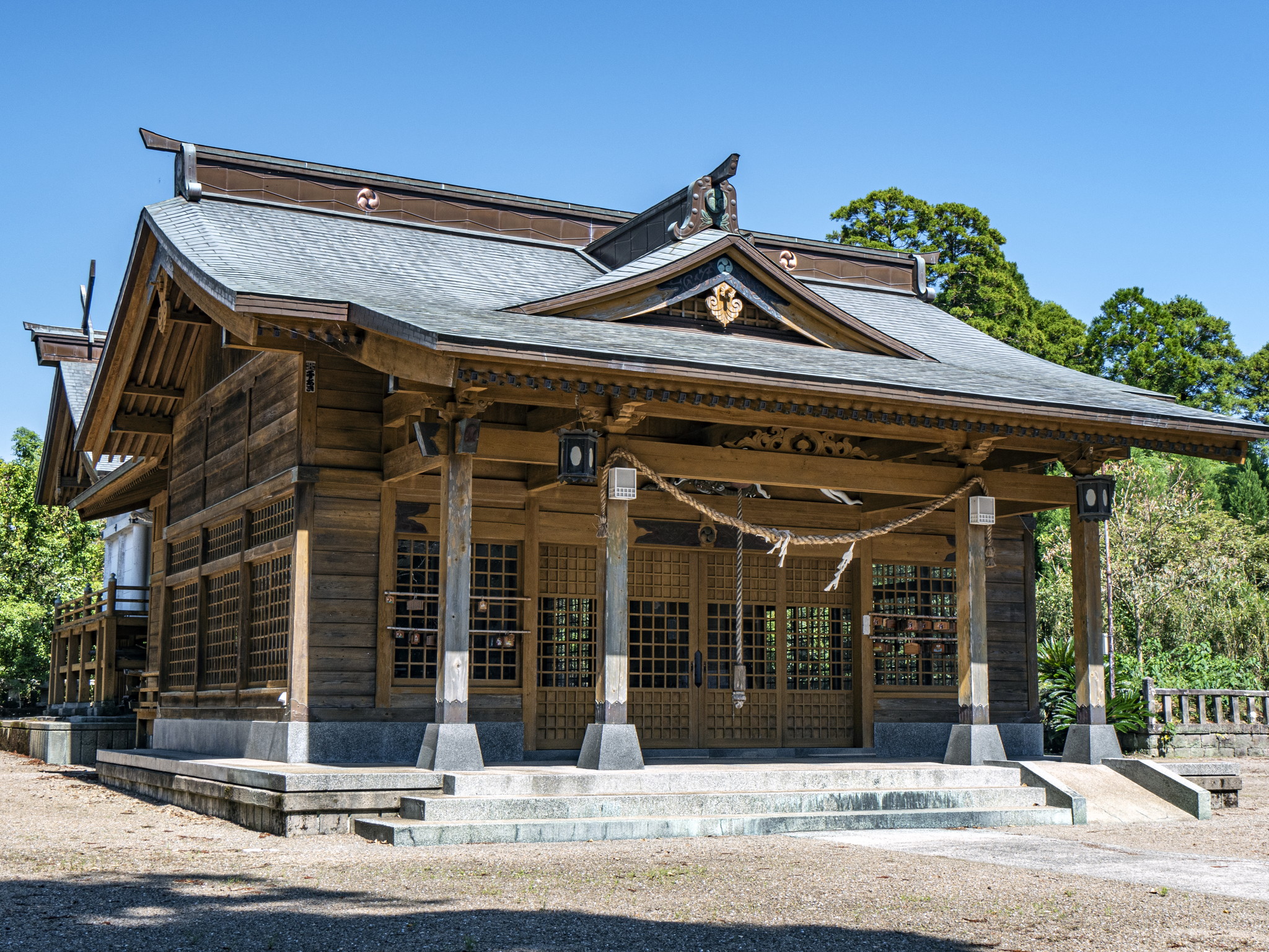 境内北西の線路を渡ってすぐに鎮座。明治5年(1872)都城県の神社改革の際、串間神社に合祀されましたが、現在は複社し祭儀が斎行されています。串間神社の御祭神である彦火々出見尊(山幸彦)に供奉した神々の神霊を祀っているとされています。尚、『日向地誌』では素戔嗚命が御祭神としています。