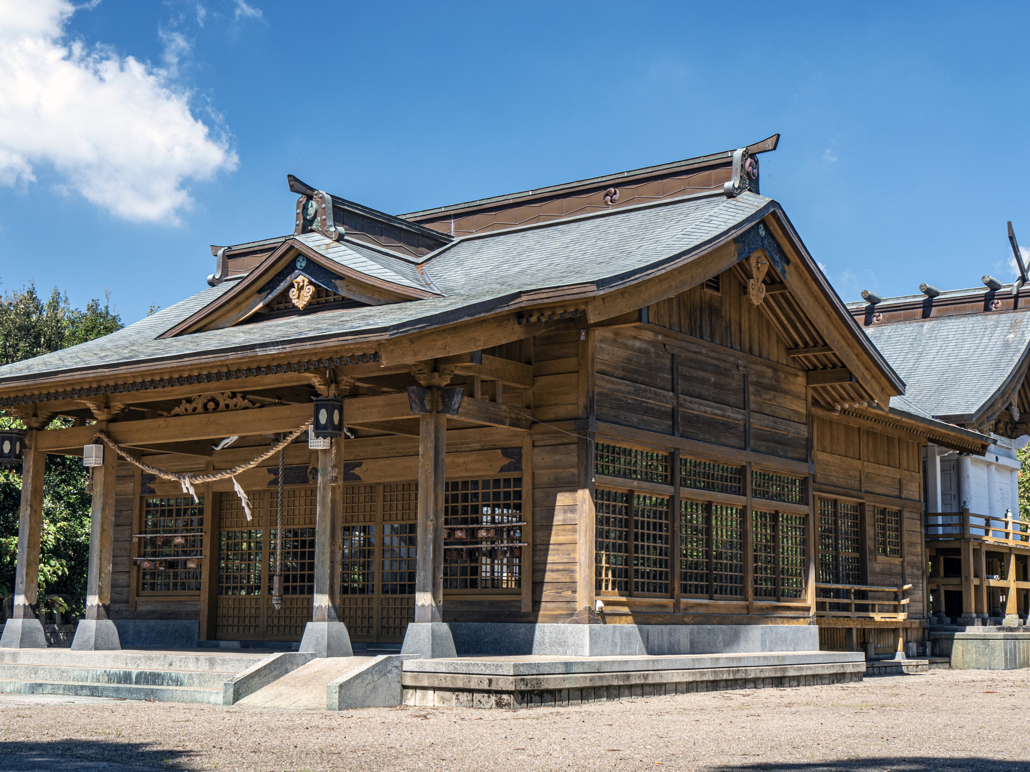 明治40年(1907)福島、北方、大束、本城、都井、市木の六ヶ町村の出資により社殿が改築。同年2月9日に神饌幣帛料供進神社に指定されました。平成元年(1989)10月に改築。本殿は流造の10坪。拝殿は入母屋造の29坪。境内は3506坪。狩猟の神、農業の神、安産の神、学問の神、商工の神として、多くの崇敬を受けています。