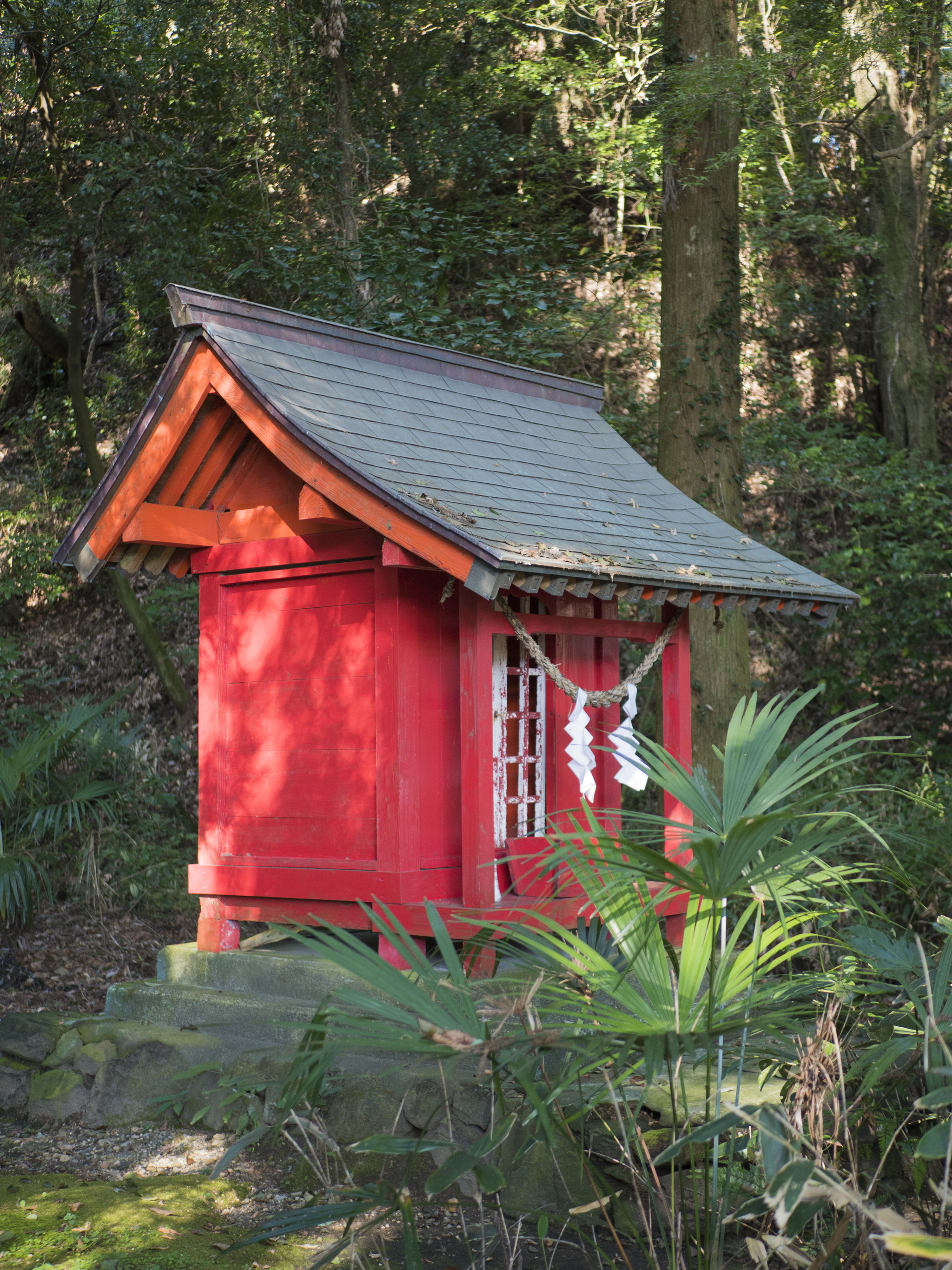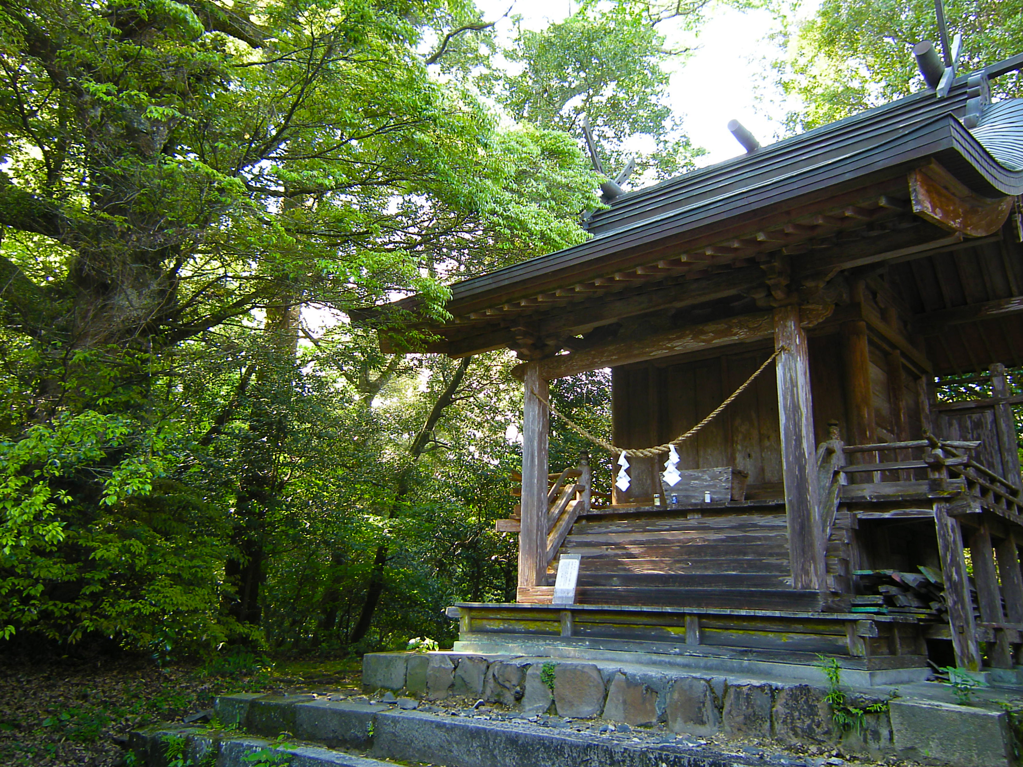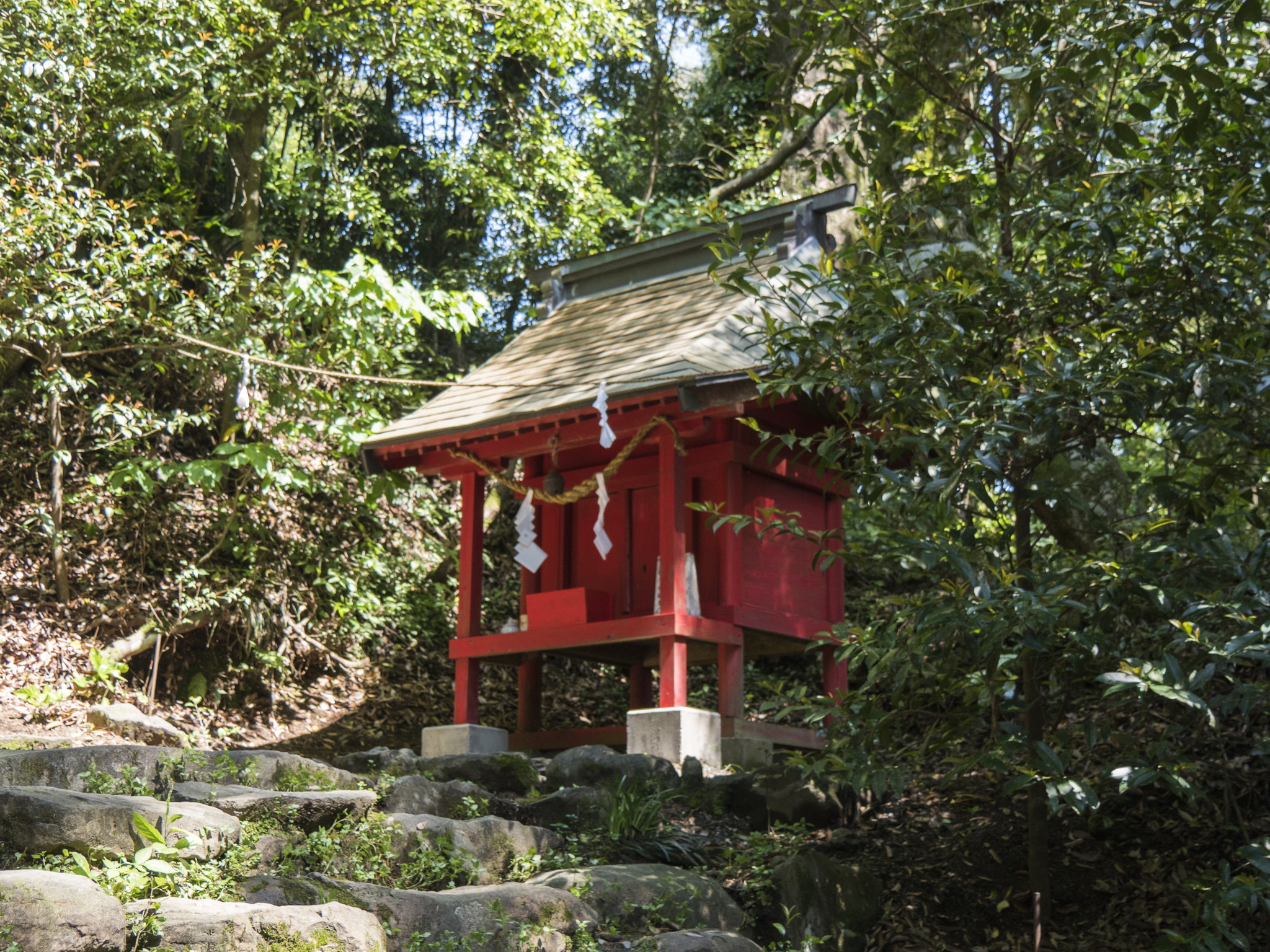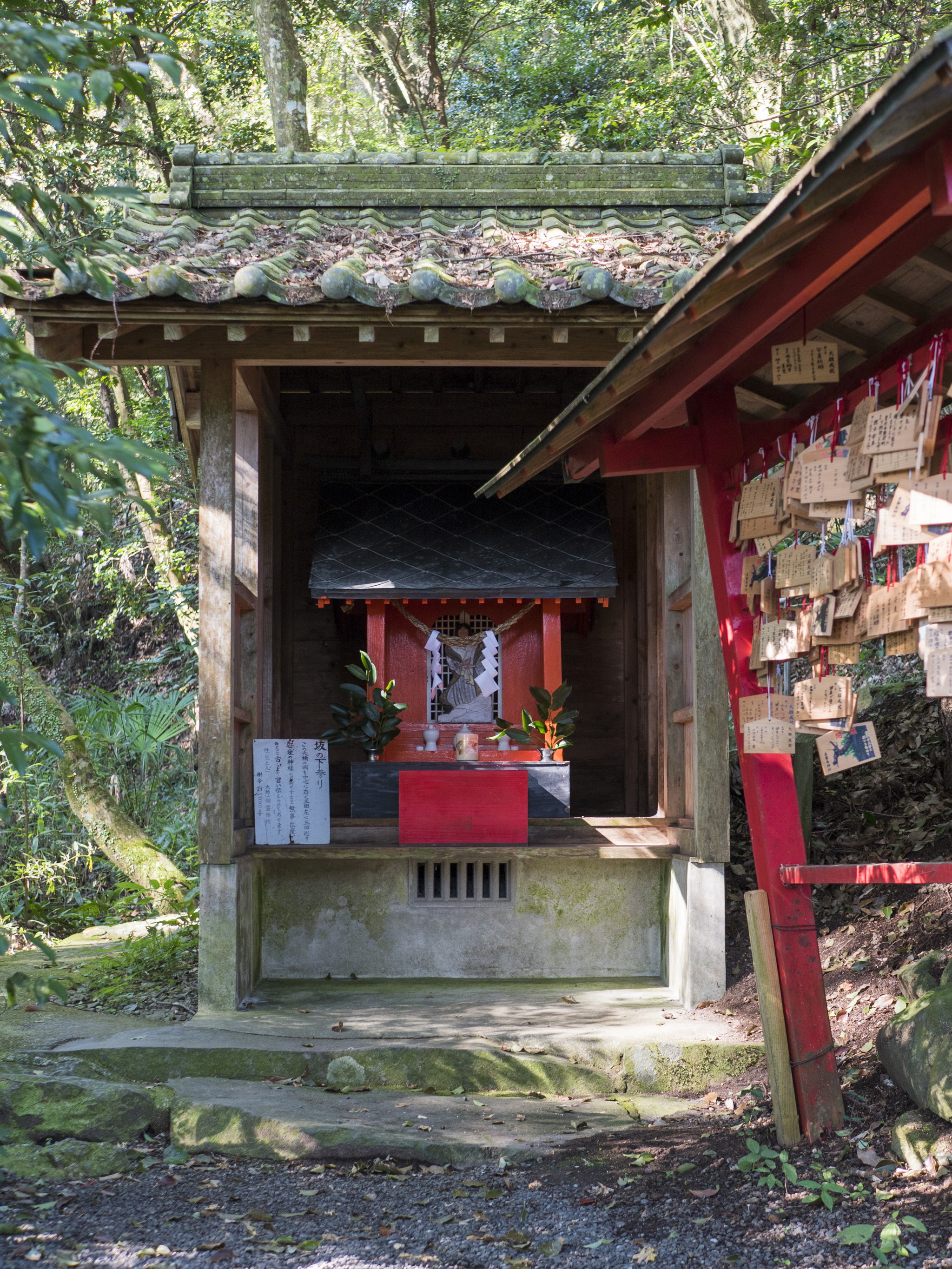 「鬼磐階段」の途上には、下から登って左手に道案内、交通の守護神の猿田彦尊。右手に商売繁盛の守護神の大巳貴尊。そのすぐ上の左手に霧島の大神を祀る霧島六社大権現宮。右手に霧島六社権現の導きの神としての猿田彦尊が祀られています。