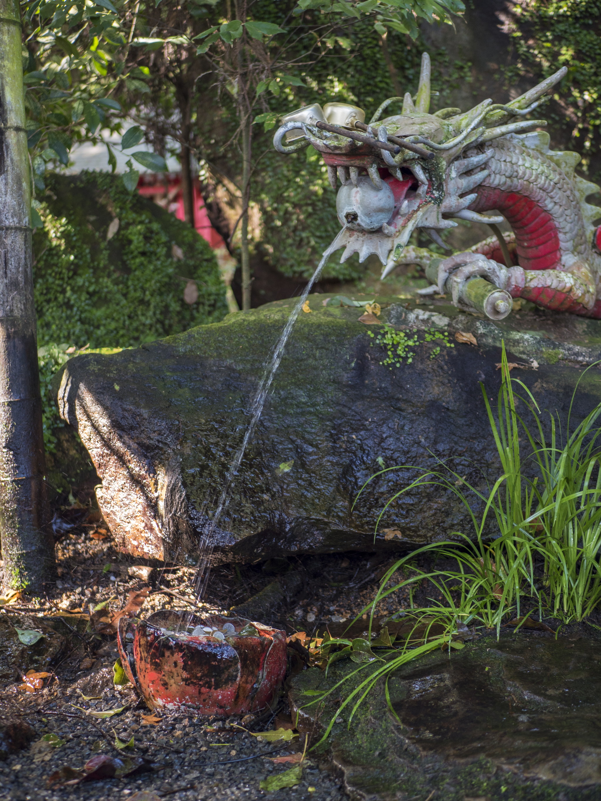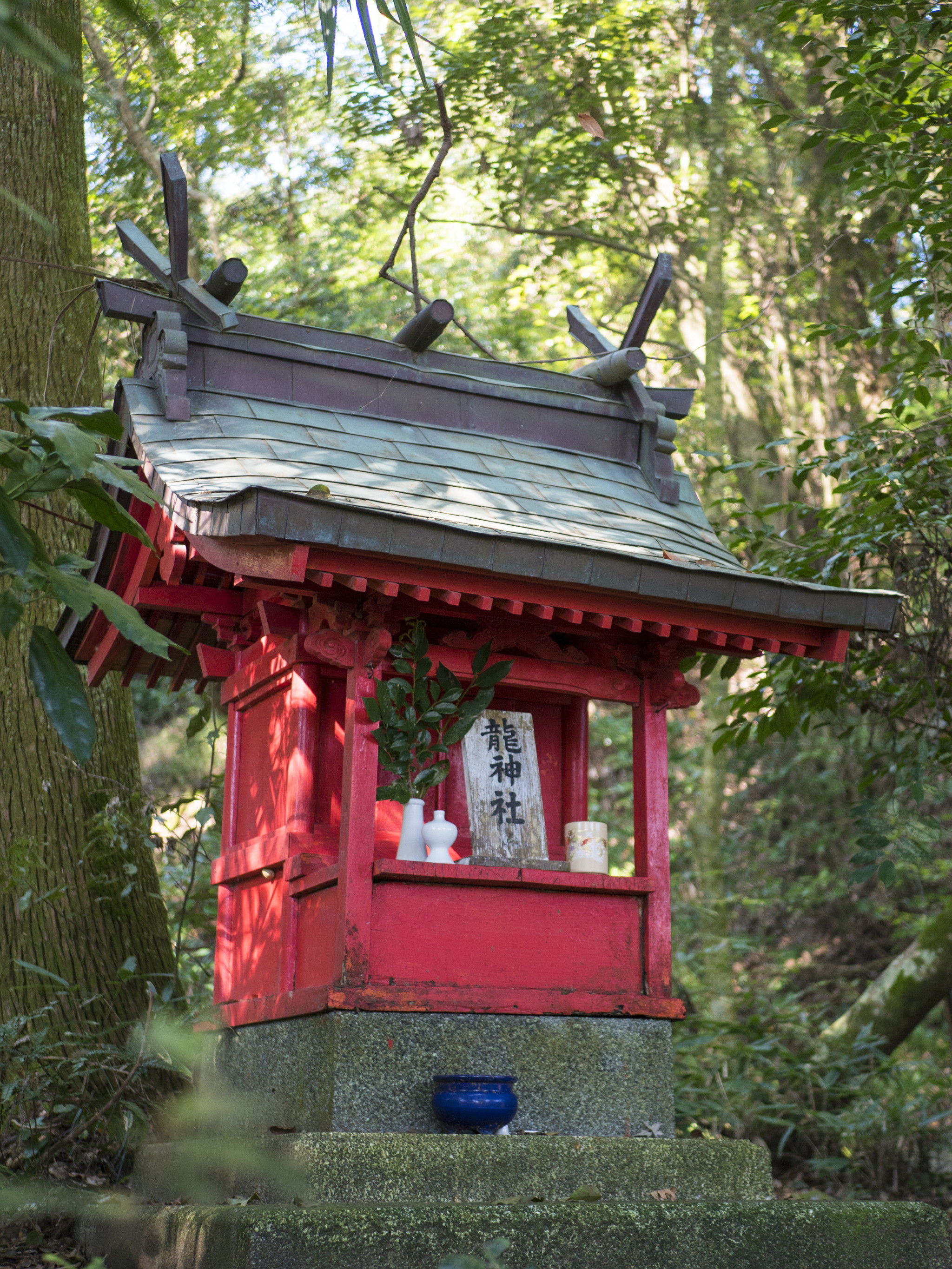 故有谷には、火の神として三宝荒神を御祭神とする荒神神社と龍王神水が湧いている左手に龍神社が祀られています。龍王は絶大なる幸運・開運・厄除けの力を発揮する守り神として敬われています。この世で遭遇するさまざまな苦悩から衆生を救うために鎮座し、霊水を下されています。龍王神は洗心浄心の霊験あらたかで吉祥を授け人々を守護する神秘性をもっており、特に商業の人は銭を洗い身におさめ、病を人は霊水をいただくと良いとされています。