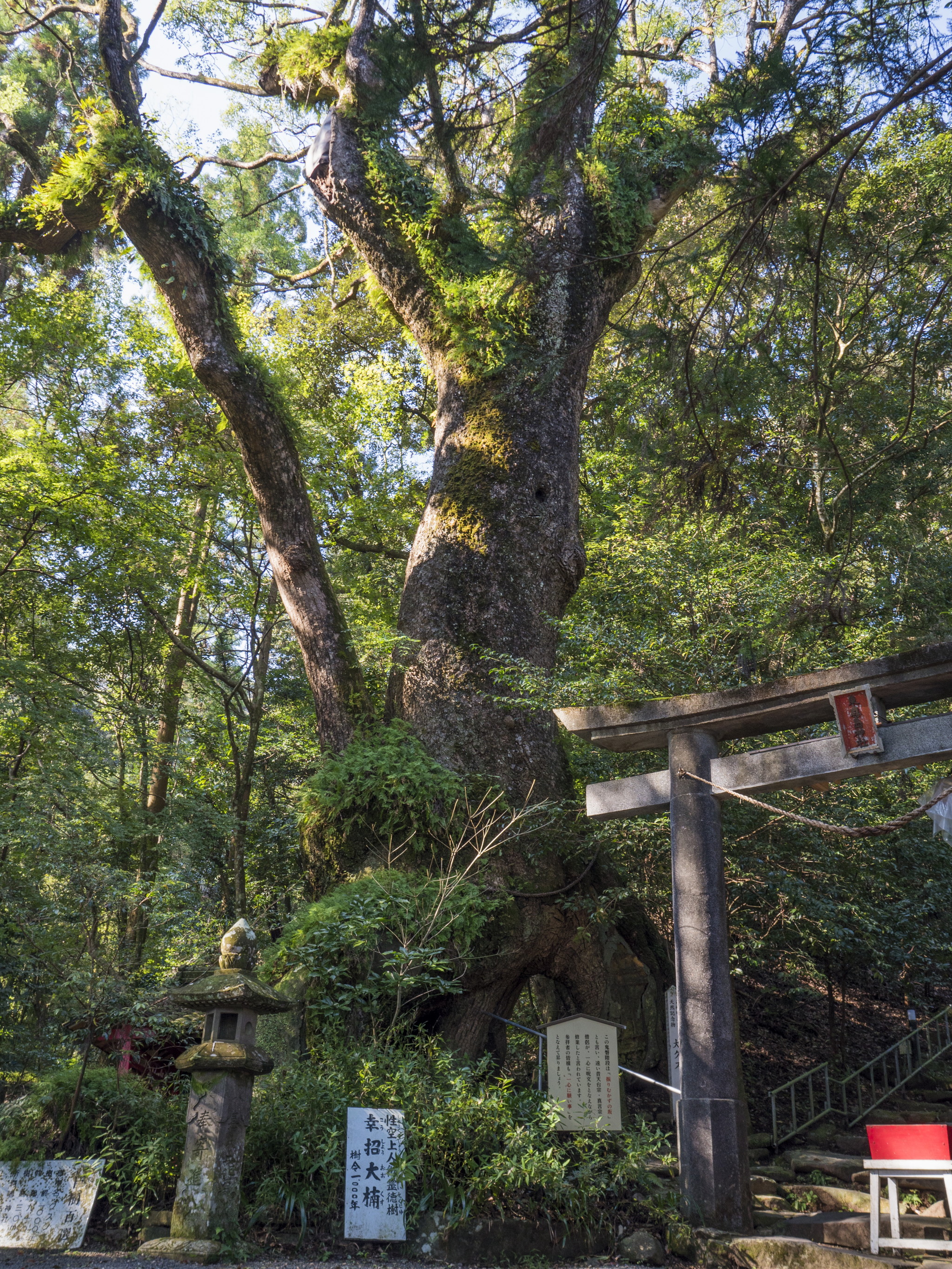 その「鬼磐階段」の前には、御神木の大杉と大クスが聳えています。