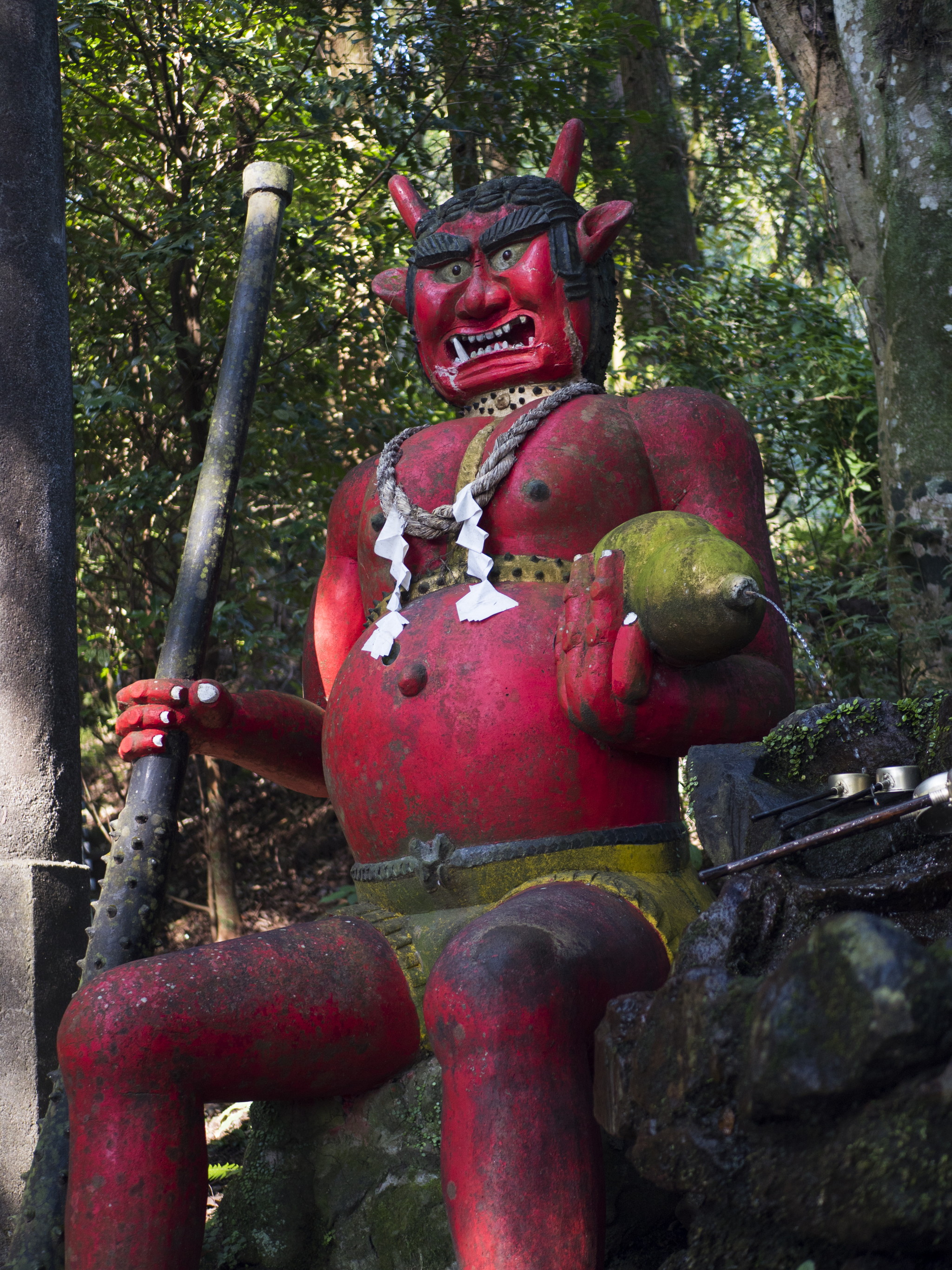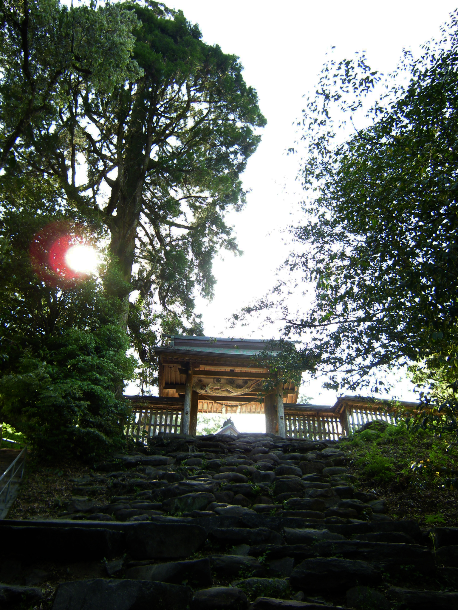 山上の神門に至る参道には、999個の石を積み上げてつくられた170段ほどの「鬼磐階段」があります。その謂われは、その昔、鬼といわれるほど恐れられ、善良なる土民に悪の限りを尽くしていた豪族がいました。悪しき豪族は、善良なる土民の一人に、気品ある娘を嫁にせんがため、再三口説くもその願いかなわず、ついには田畑を荒らし、土民を困らせます。土民はほとほと困り果て、ついには守り神である霧島の神様に願いをかけます。霧島の神は、鬼どもを集めて、次のように命じます。