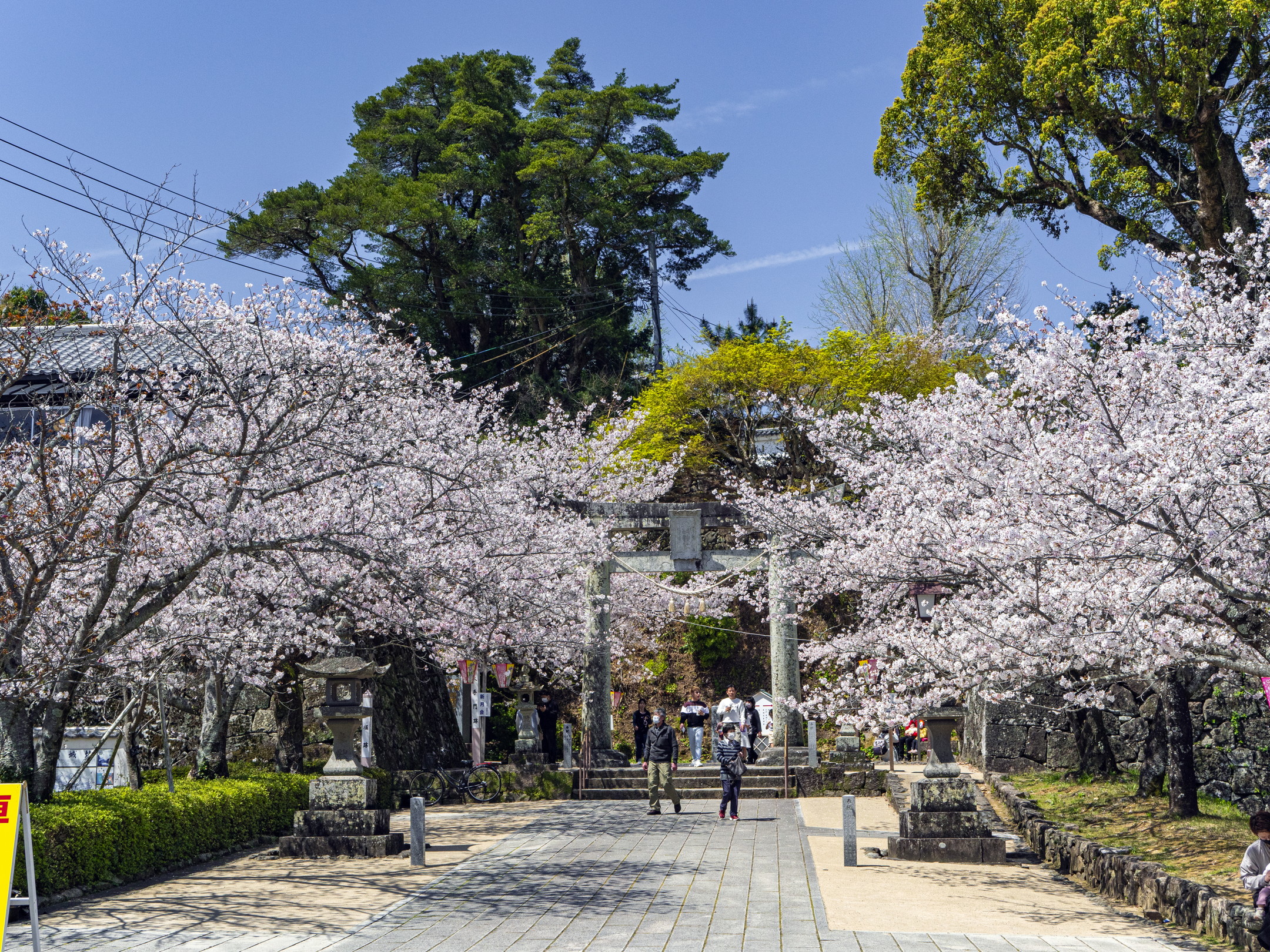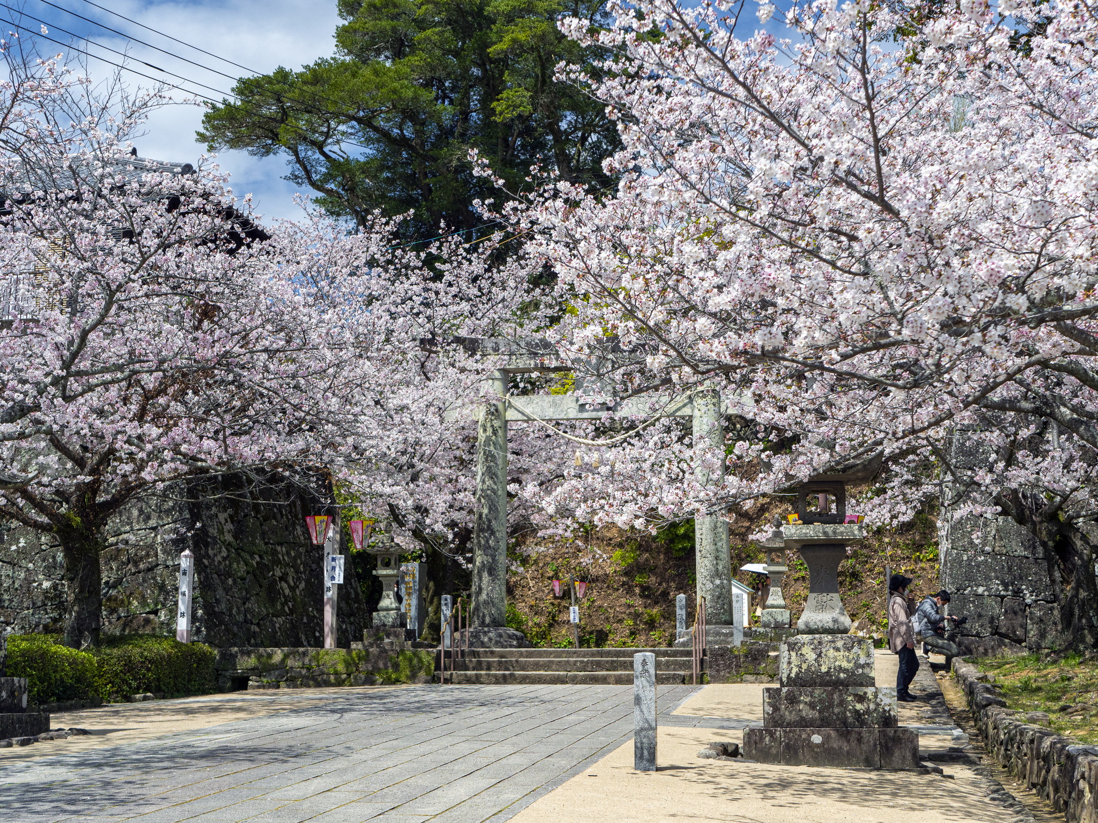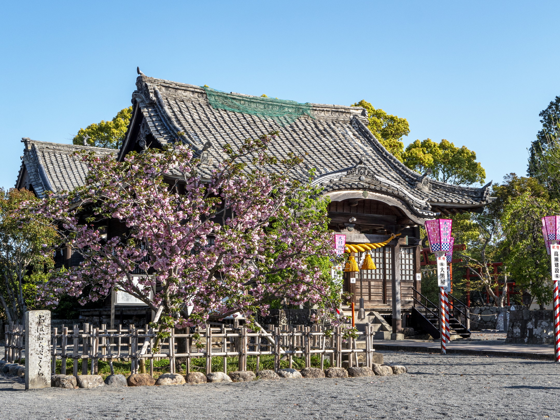 鳥居の左手に植わるクシマザクラは、昭和42年(1967)2月3日、県指定天然紀念物に指定されています。