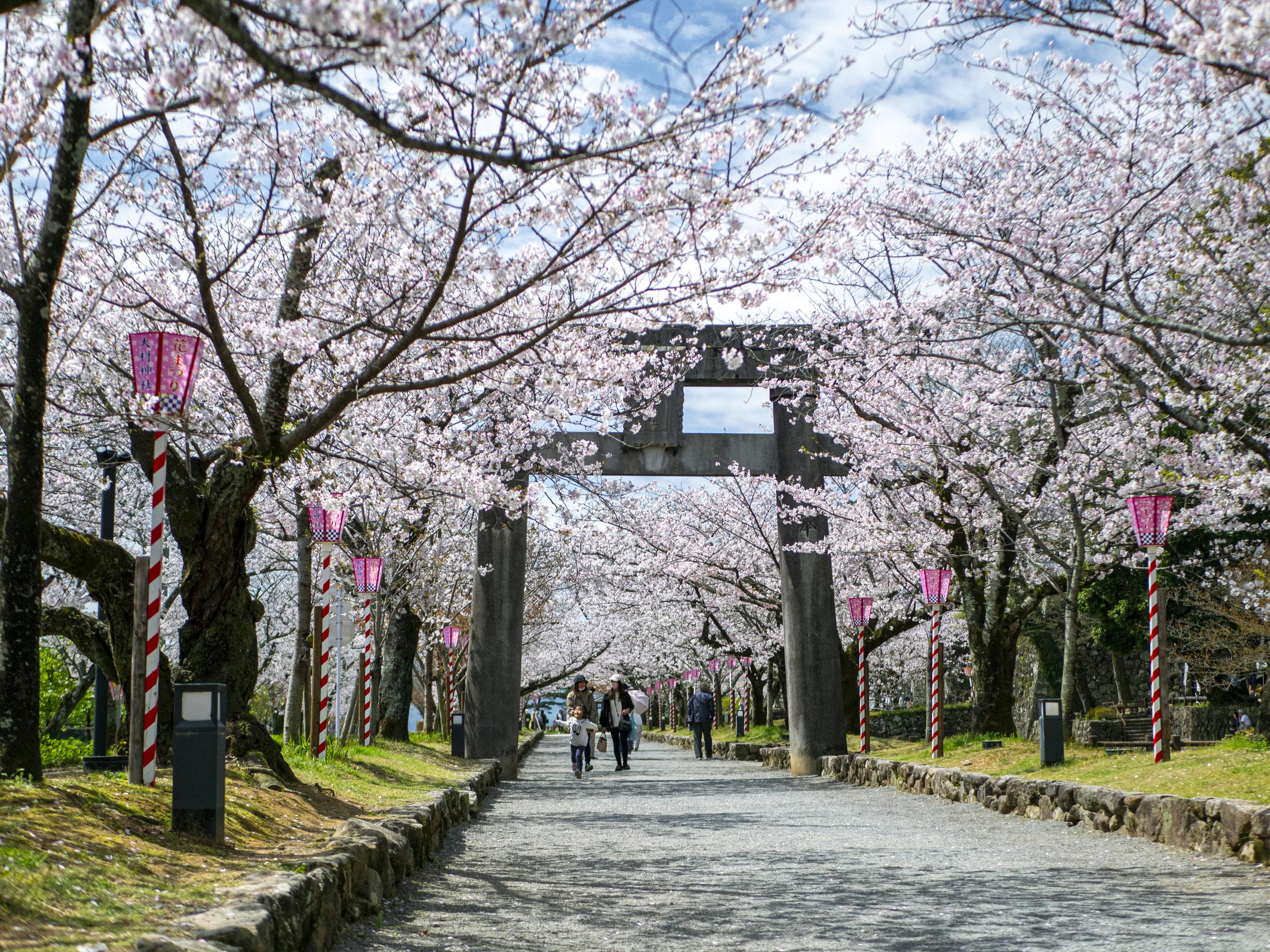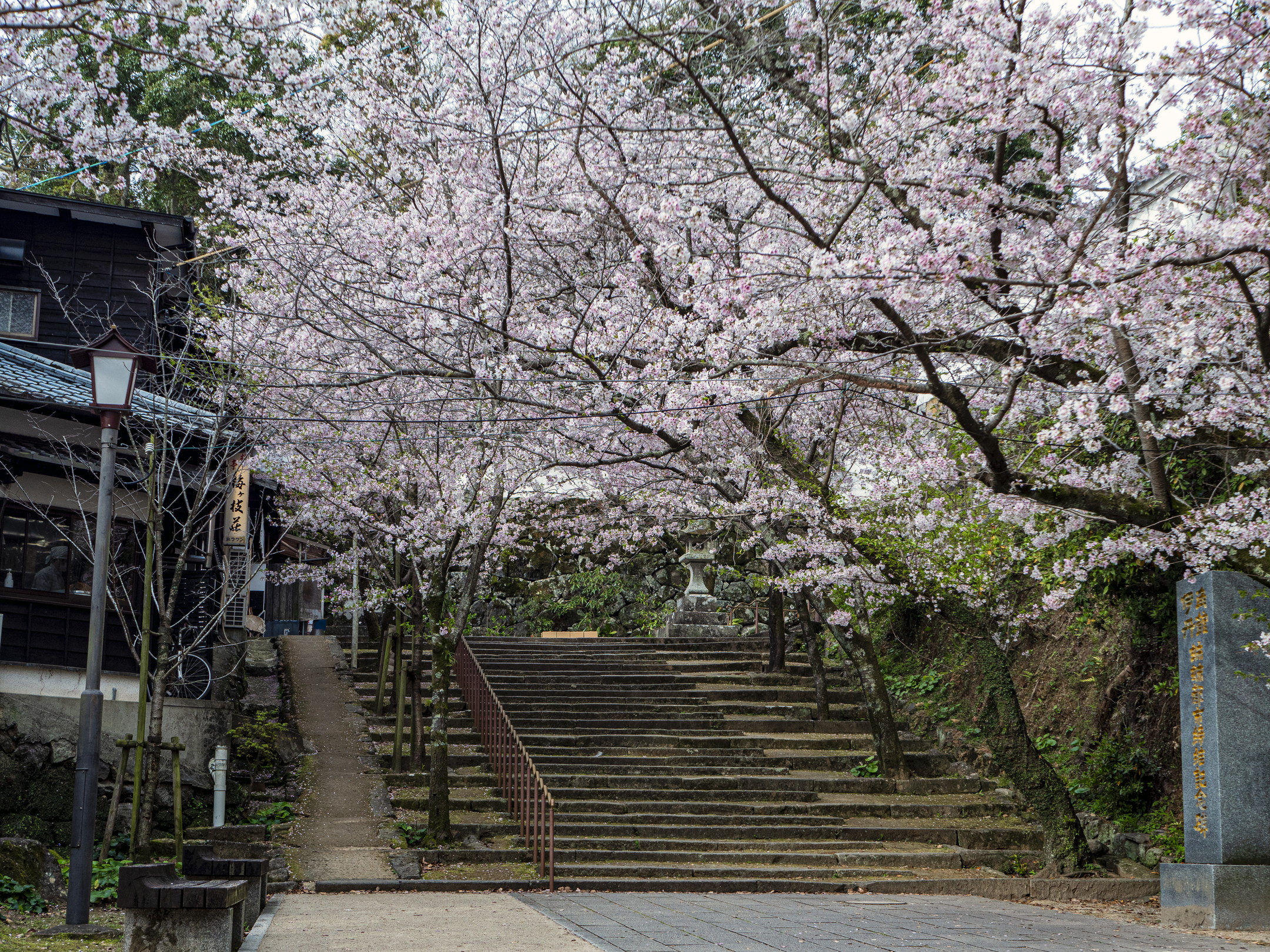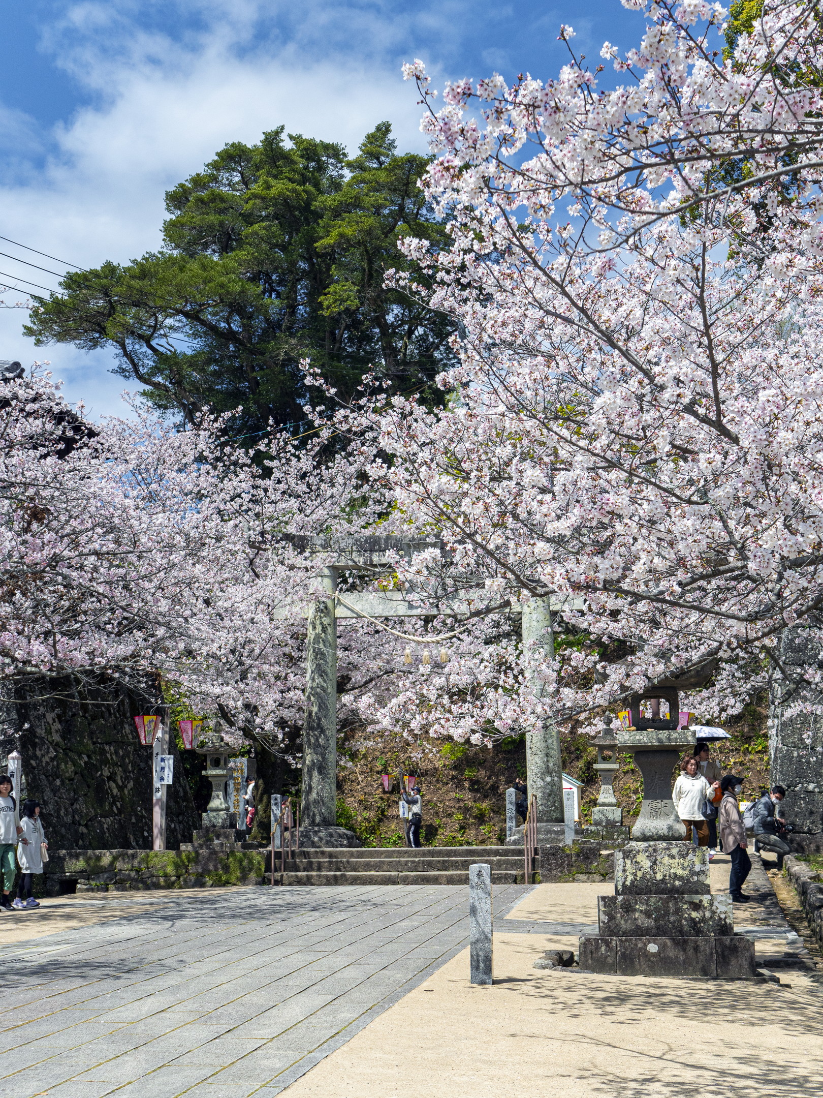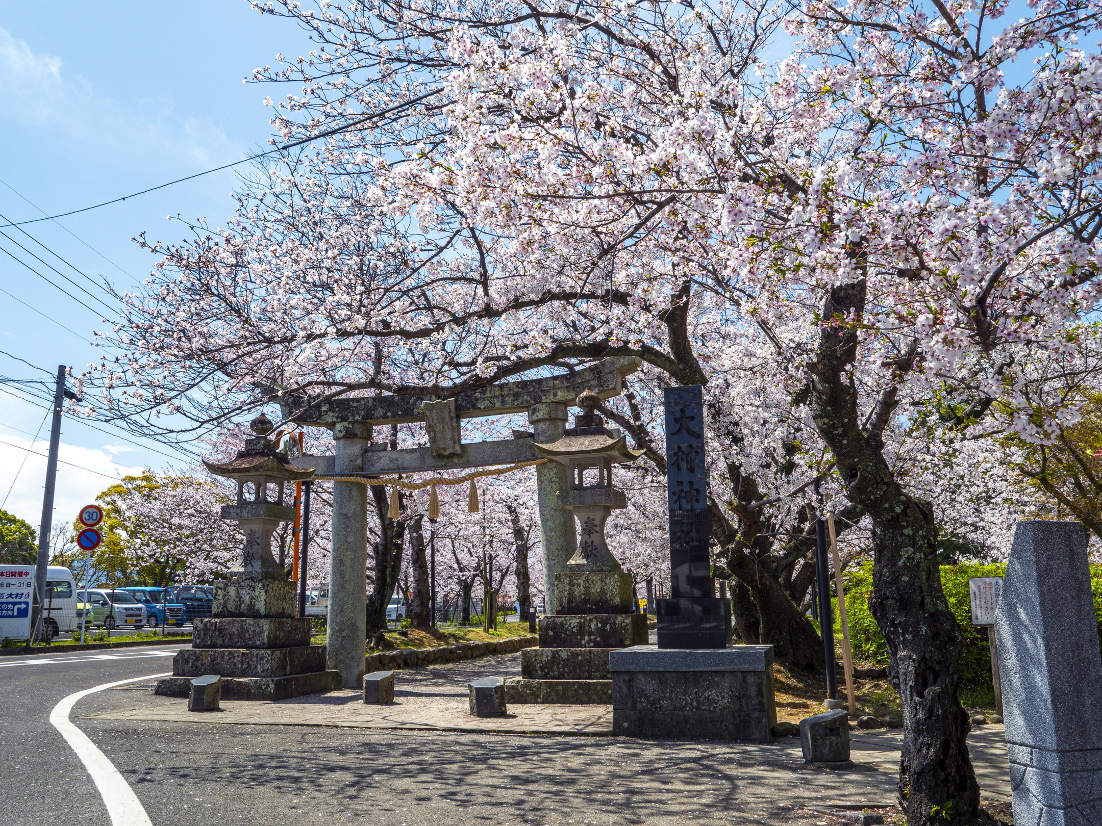 鳥居の左手に植わるクシマザクラは、昭和42年(1967)2月3日、県指定天然紀念物に指定されています。