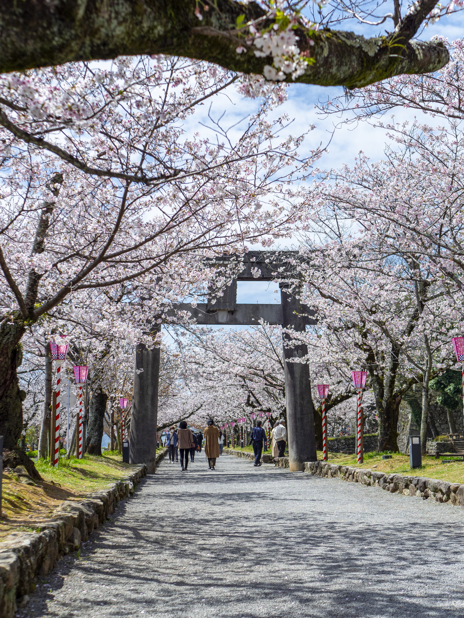 大村神社の境内地は、大村藩2万7000石の居城である玖島城の本丸跡です。玖島城は、慶長4年(1599)大村氏第19代・大村藩初代藩主の大村喜前が、三方を海に囲まれた岬の地である玖島に築いた城です。