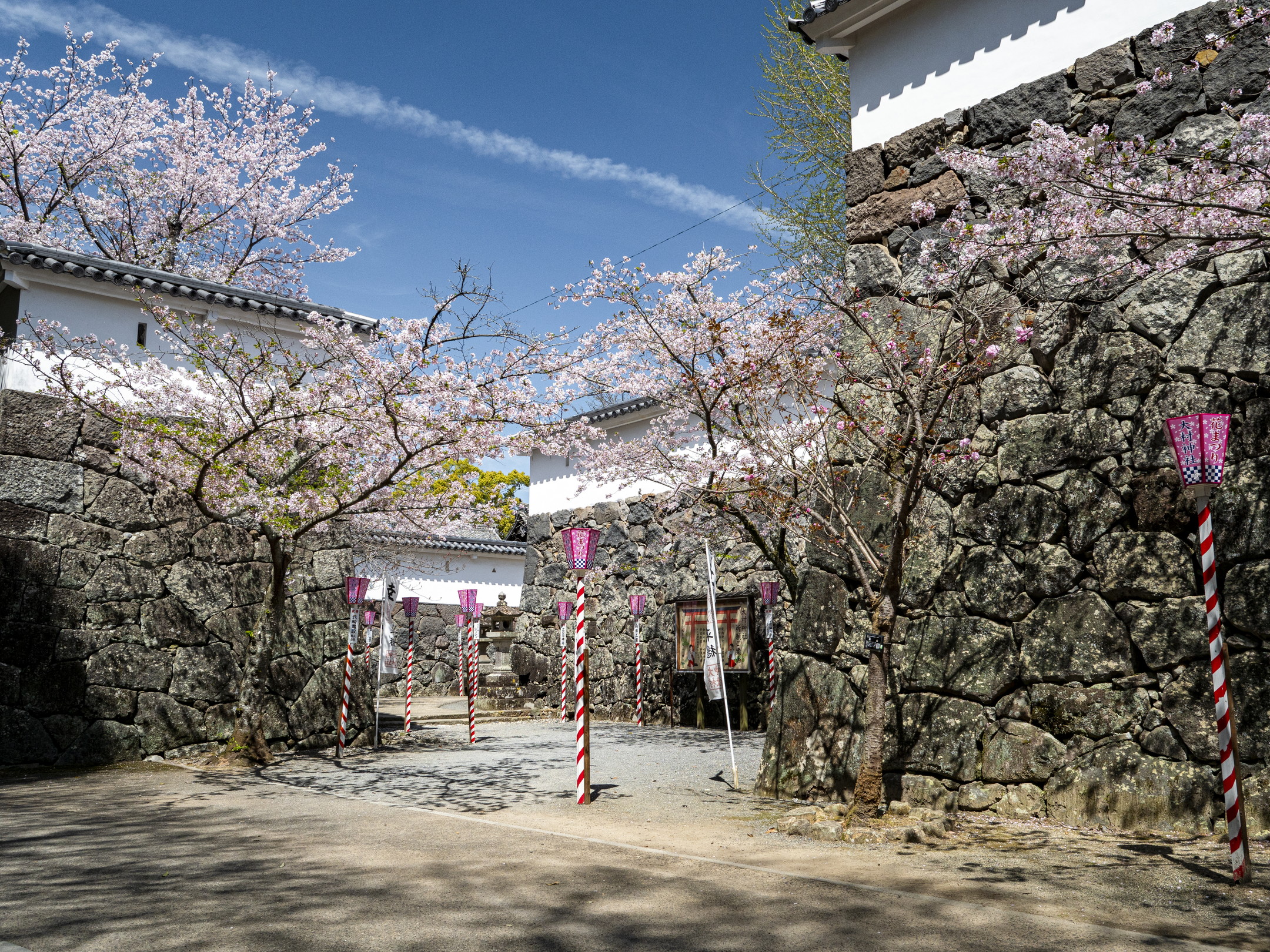 慶長19年(1614)第2代藩主大村純頼が、それまで北側にあった大手門を南側に改修し、この時、虎口門、台所門、搦手門の三つの入ロの形が定まったと伝えられています。本丸の敷地の内、西半分にあたる大村神社本殿のある一帯には大広間など侍詰所(政庁)があり、東半分の玖島稲荷神社のある一帯には藩主の居館がありました。城に天守閤はなく、平屋の御殿でした。本丸を巡る石垣の上には塀を巡らし、矢狭間、鉄砲狭間、石火矢狭間が設けられ、護摩堂や多聞櫓があったと記録されています。