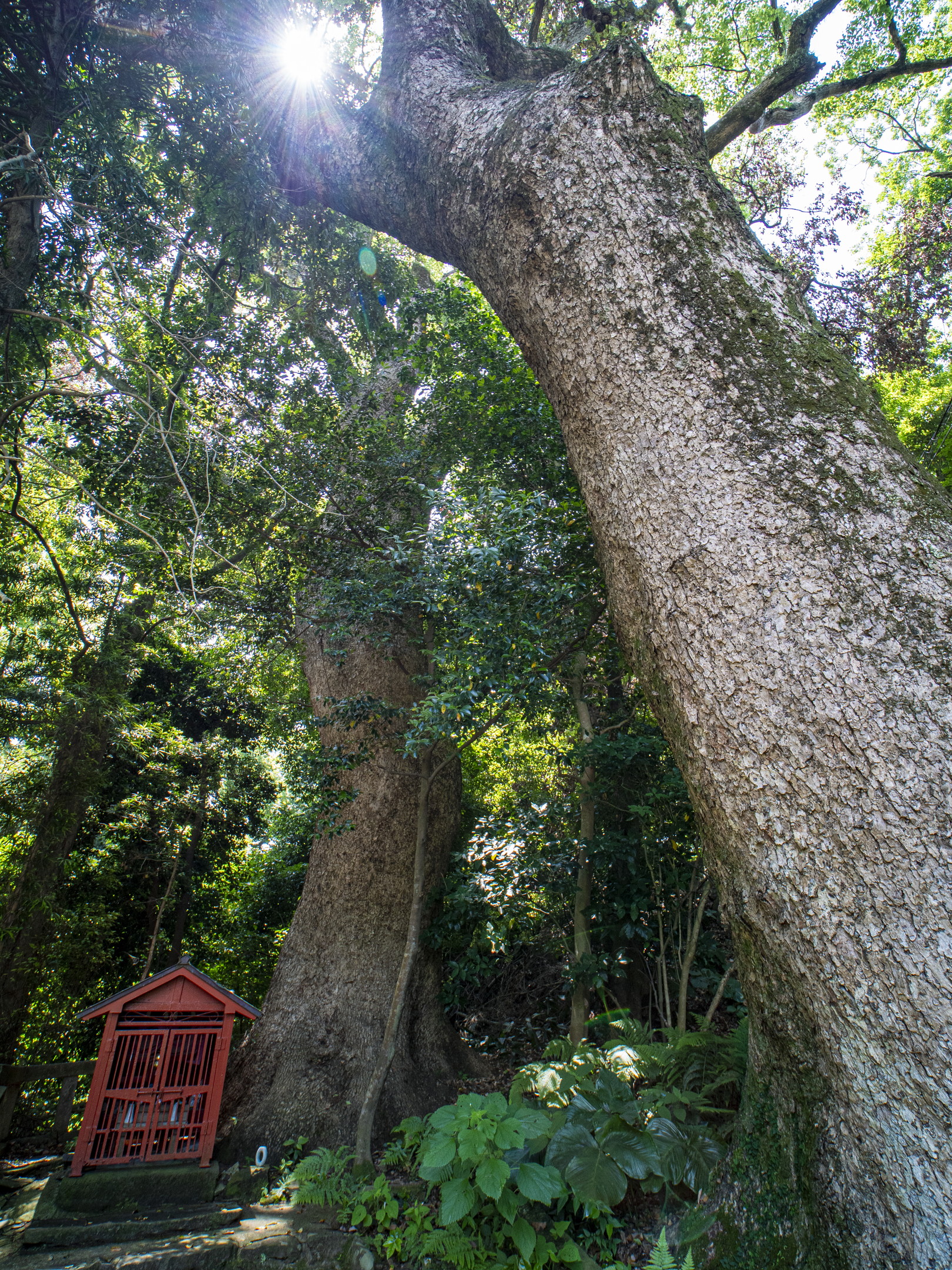 神主は不思議に思い、根元に小さな穴が2つあって、中に子狐が5匹入っていたので、これこそ今まで先祖様をお助けした白郎左衛門殿の孫狐に違いないと考え、村の人たちにもよく相談をして楠を切ることを止めたのでした。信者は集って、明治44年(1911)立派な玖島稲荷神社の神殿を建設しました。それが現在の玖島稲荷神社です。この時の楠は、玖島稲荷神社の北鳥居から上る途中の左手にあります。