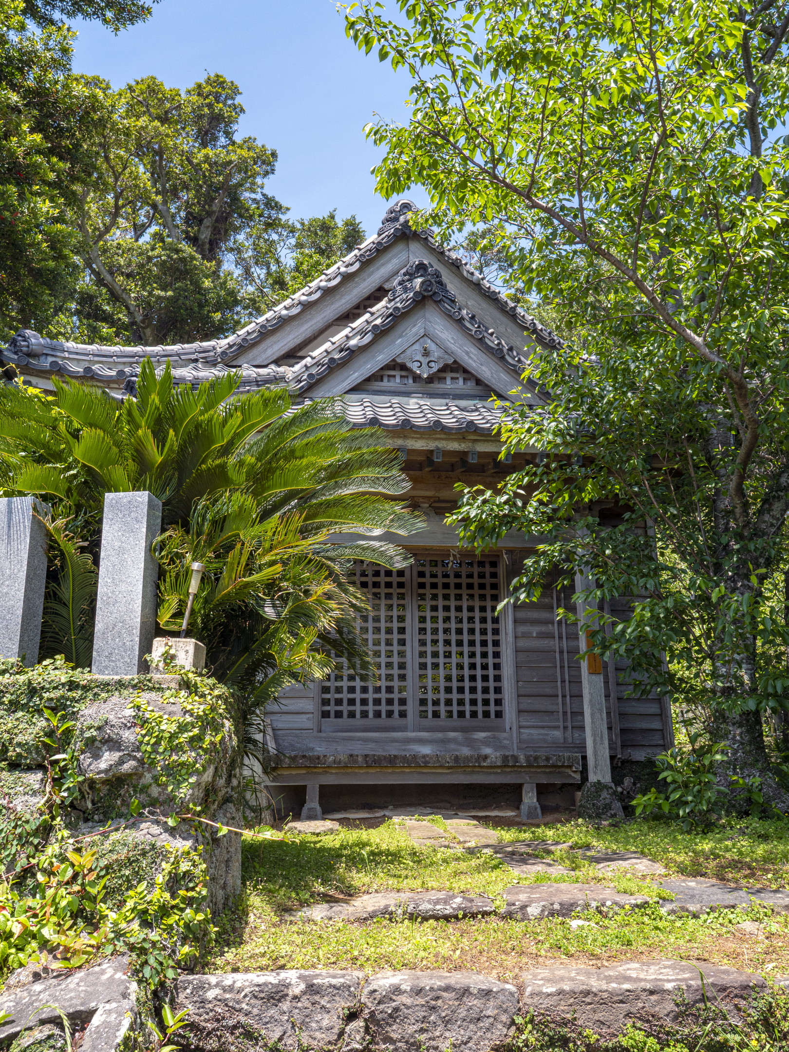 海抜347mの志々伎山山頂には上宮とされる石祠があります。十城別王はこの地で眺望中に流れ矢によって薨去され、その御廟とされています。現在の石祠は宝暦5年(1755)9月25日、円満寺住職の随元が建立したとの記銘があり、晴れた日は山頂からの眺望は誠に雄大で、五島列島はおろか壱岐・対馬まで眺められます。海上監視にはまたとない絶好の地で、十城別王が異国警備の要衝として、この地を選ばれた真意が頷けます。戦前は女人禁制の地とされ、男子も「草履脱ぎ場」の標柱からは、裸足で登る風習がありました[04]。