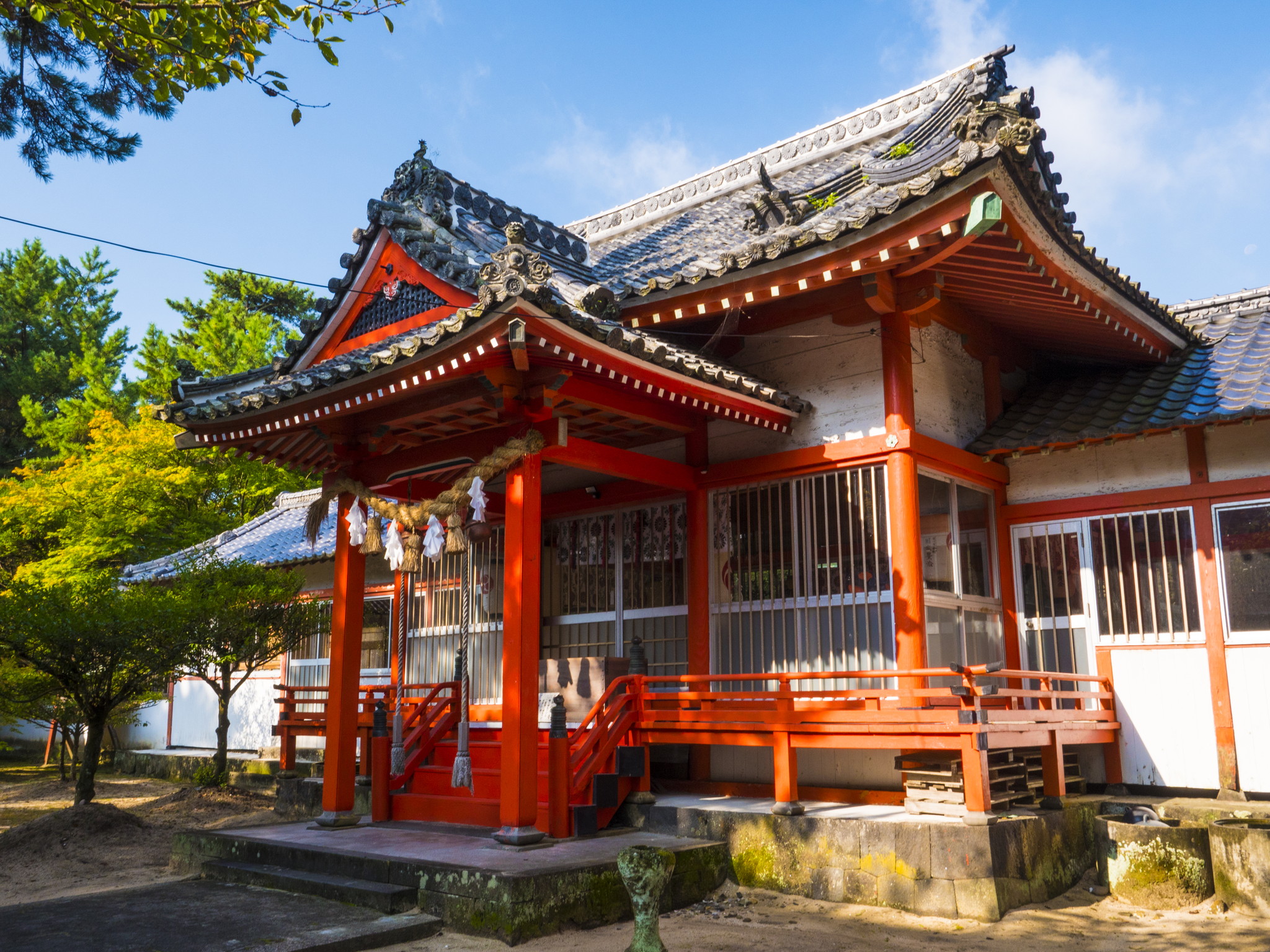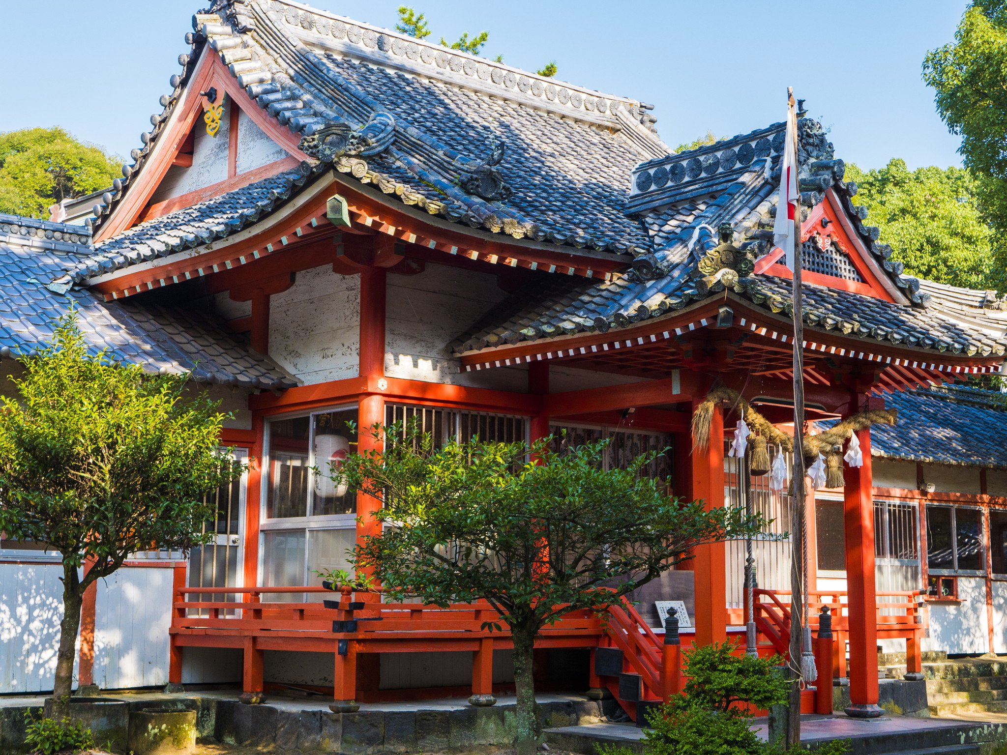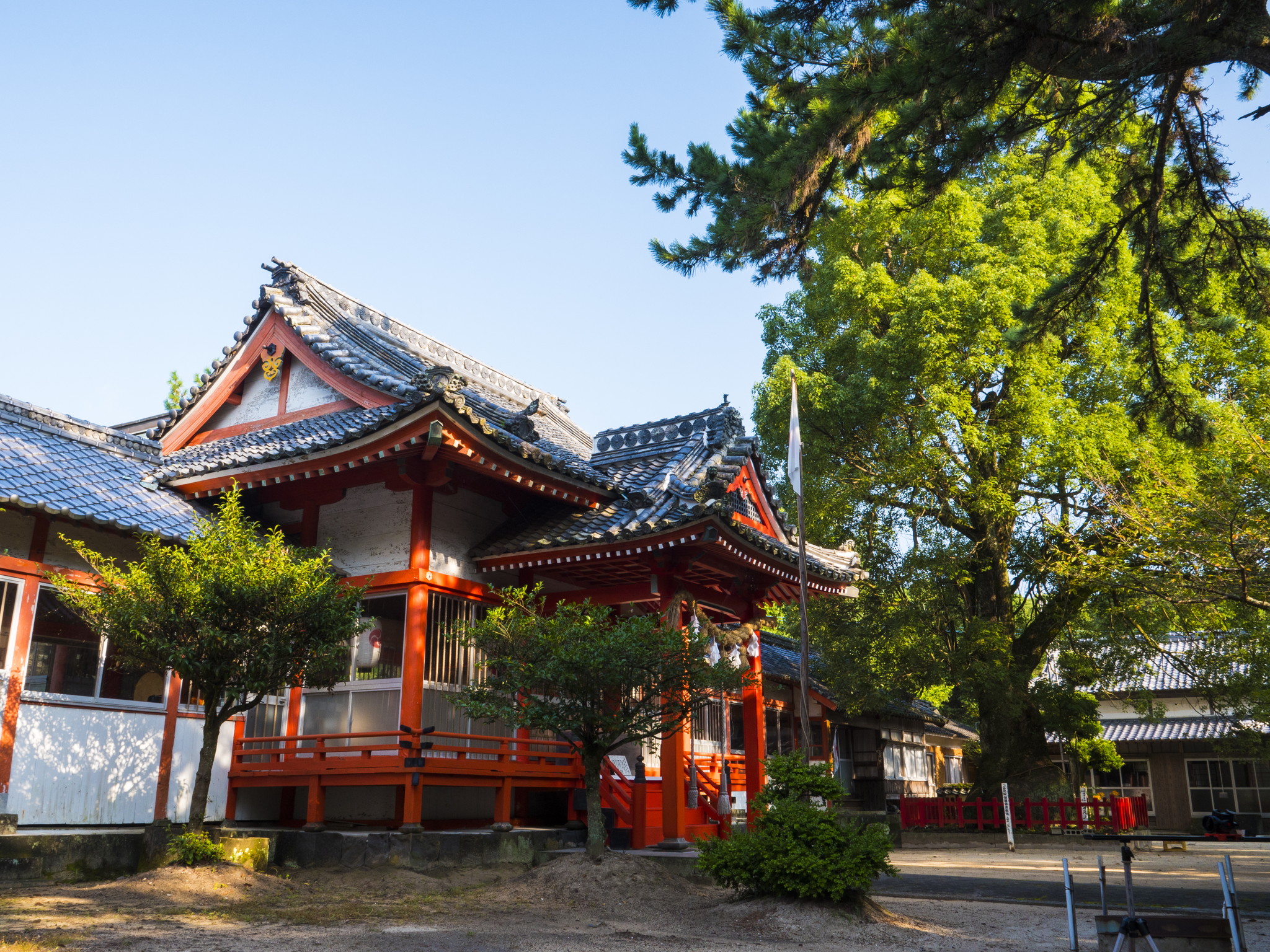 また、「日本の白砂青松100選」に指定されている奈多海岸は、良質な砂鉄の産地で、境内西の三立山山麓一帯には製鉄遺跡が広がっています。奈多宮の南西方向に古墳時代中期の大きな亀山古墳があり、古くから製鉄の技術を有した強力な豪族がいて、鉄を主体とした文化が栄えていたと考えられています。