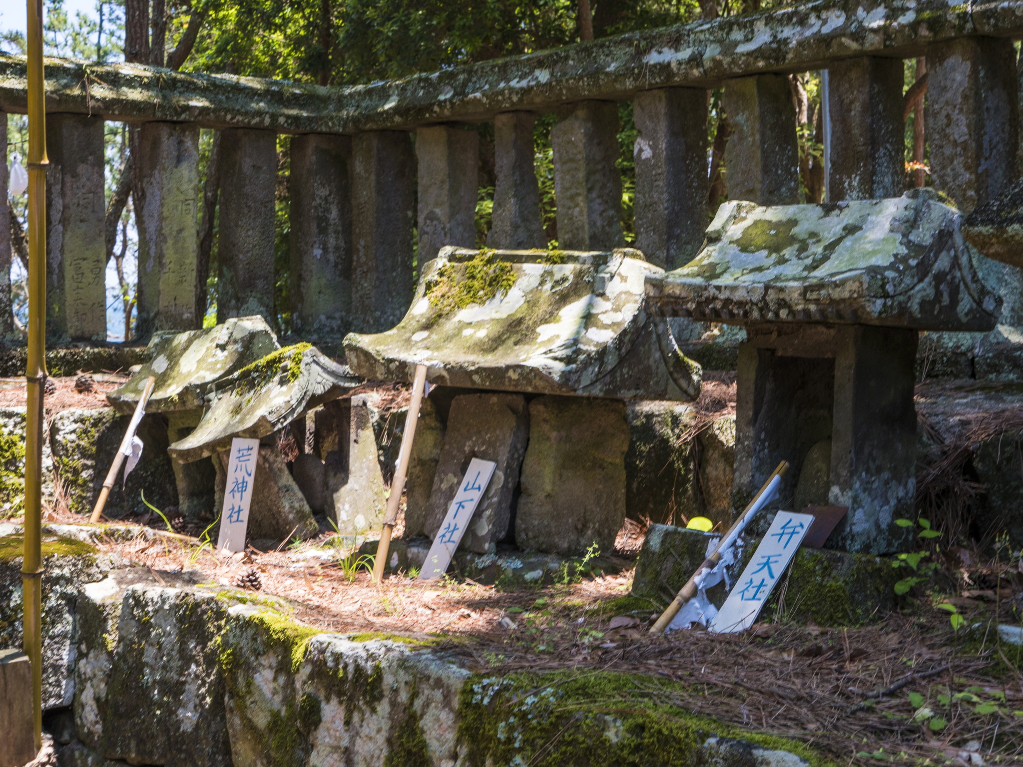 天平神護元年(765)10月8日の神託では、八幡大神(応神天皇)が対岸の宇和島からの遊化したことを伝えています。奈多の浜辺の海中には大きな石があり、八幡神はそこで気を安め御机石と名付けます。その石が、市杵島と考えられています。その後、松本(見立山)にのぼり、辺りを見渡して御立野と名付け、後に秋庄と称される安岐の林に至ったと伝えています。