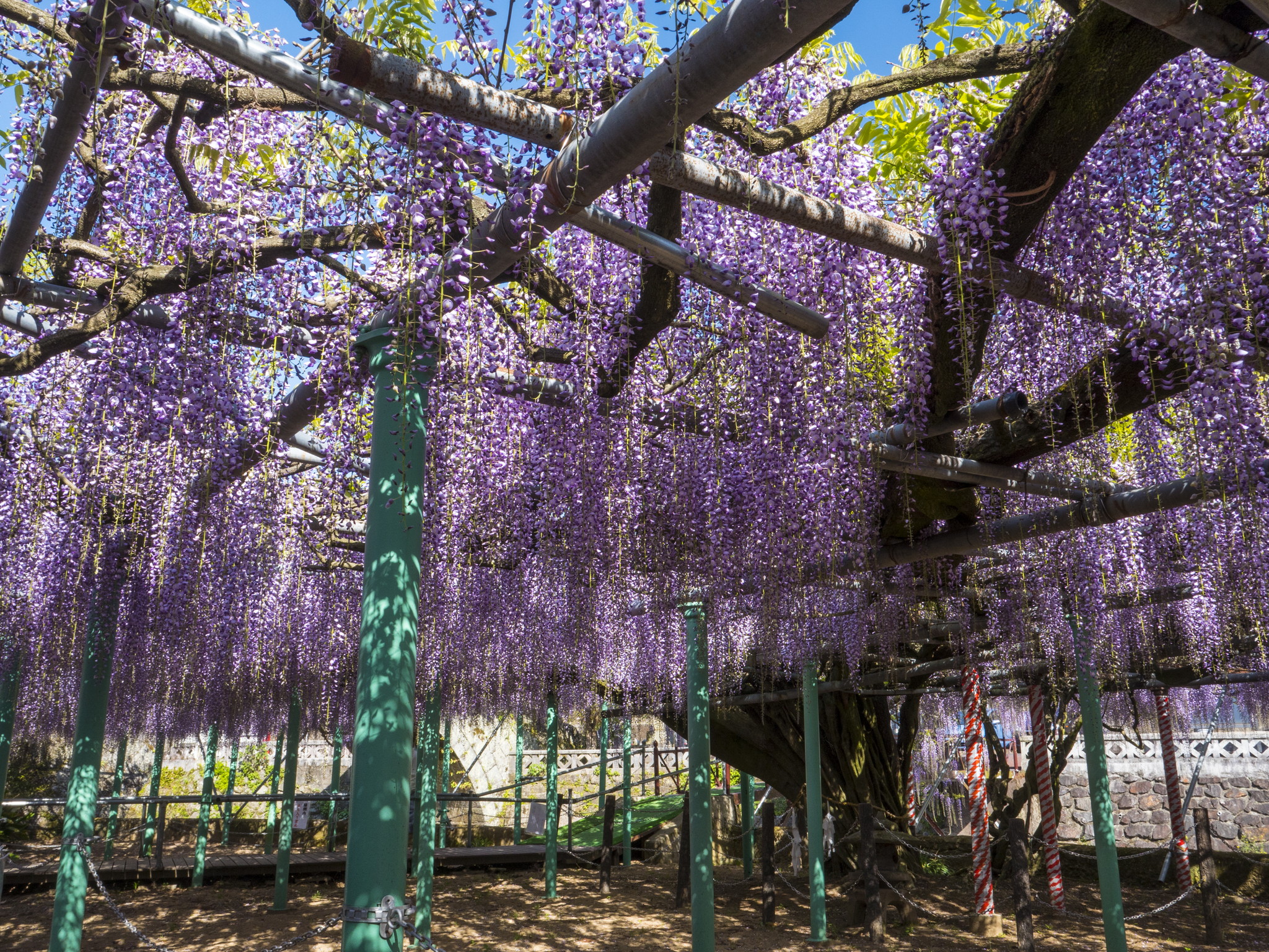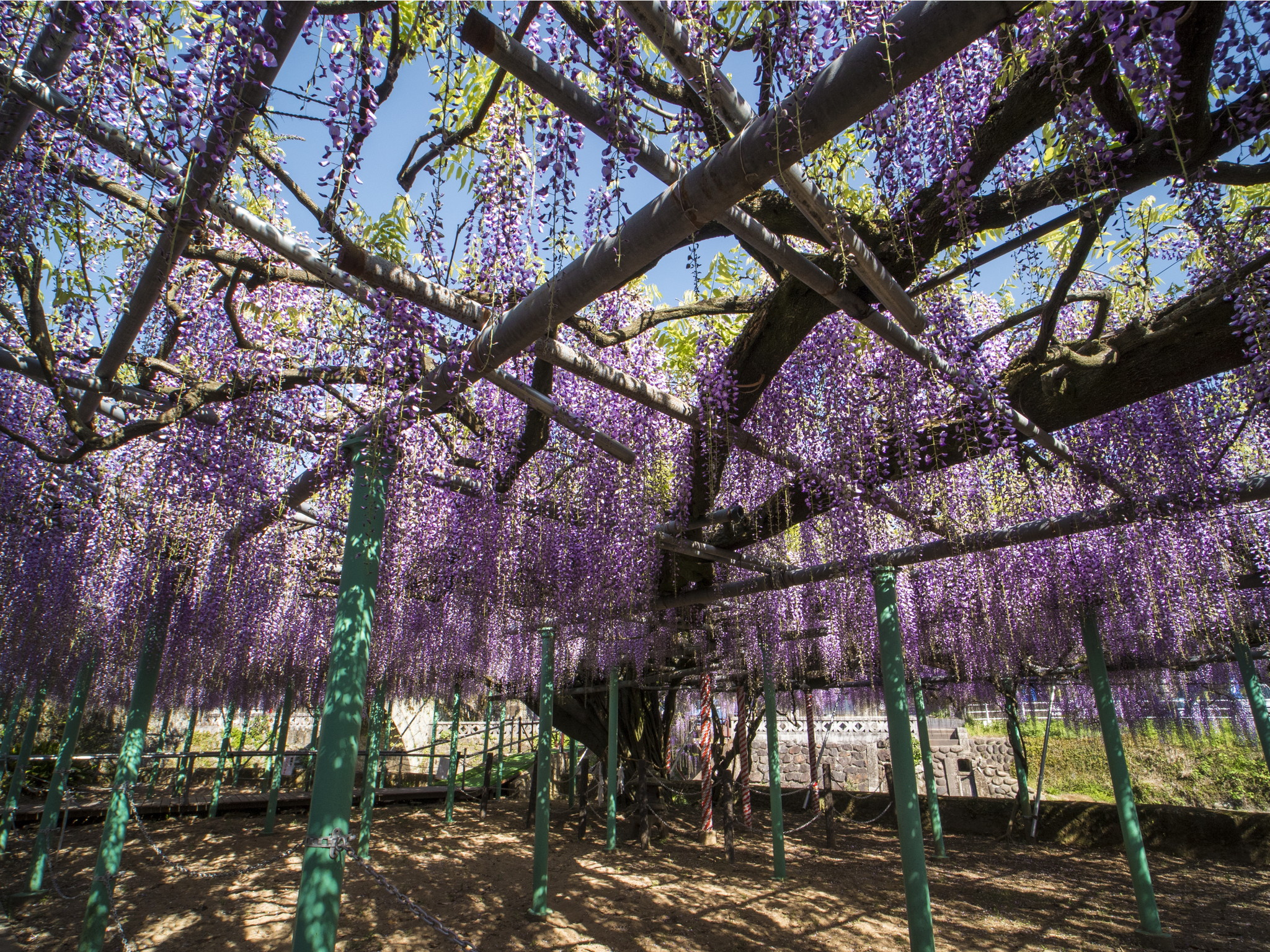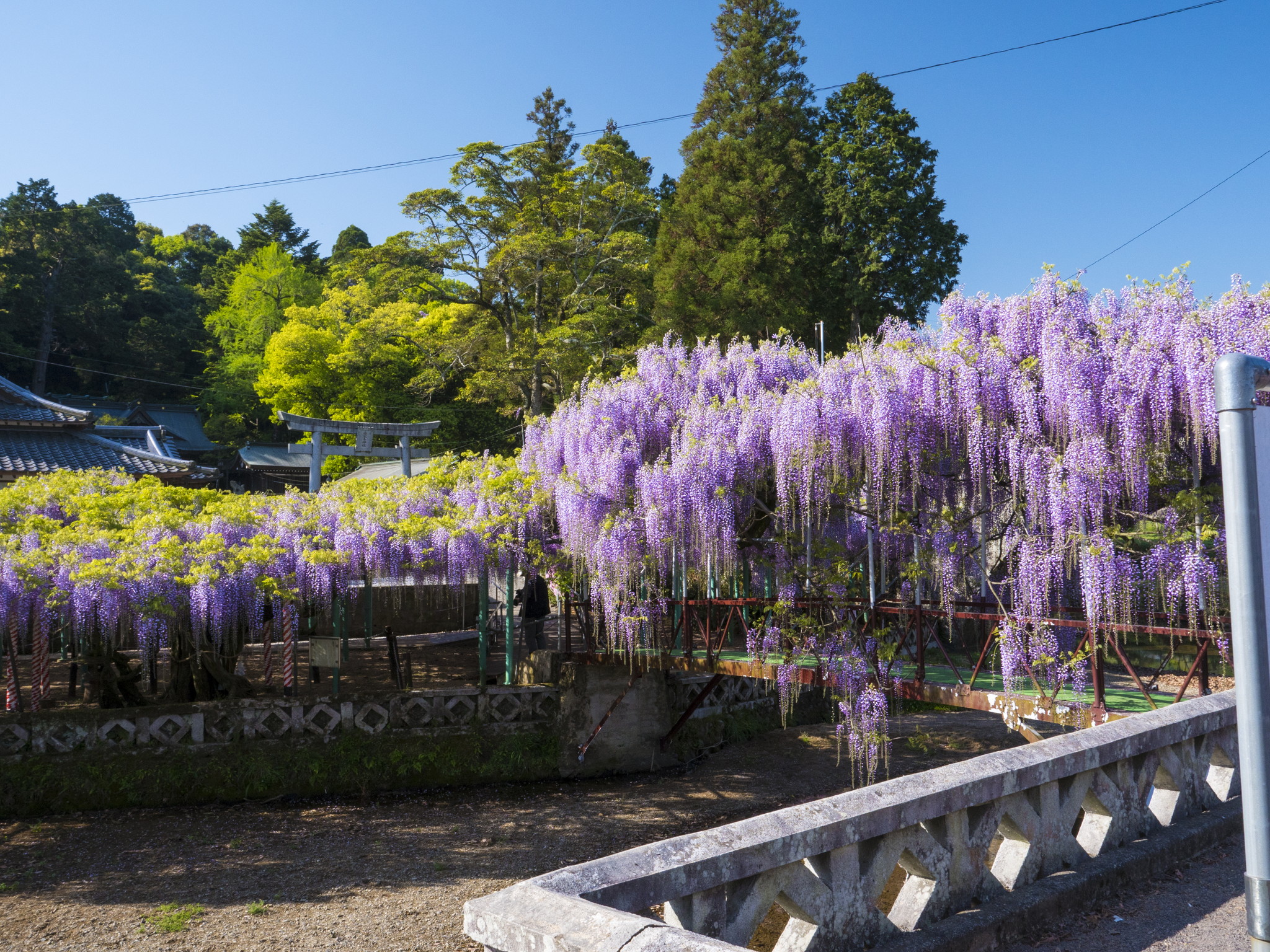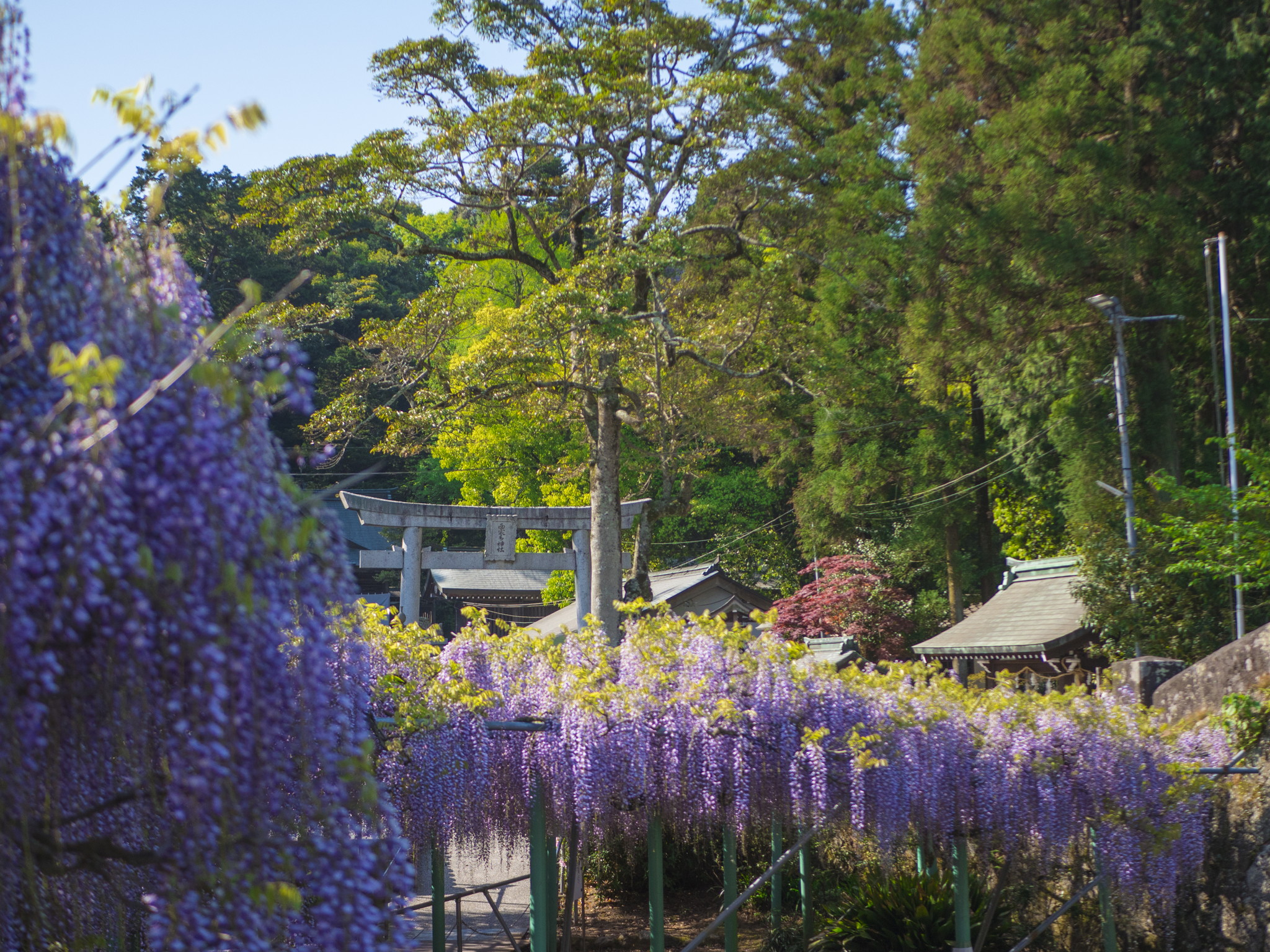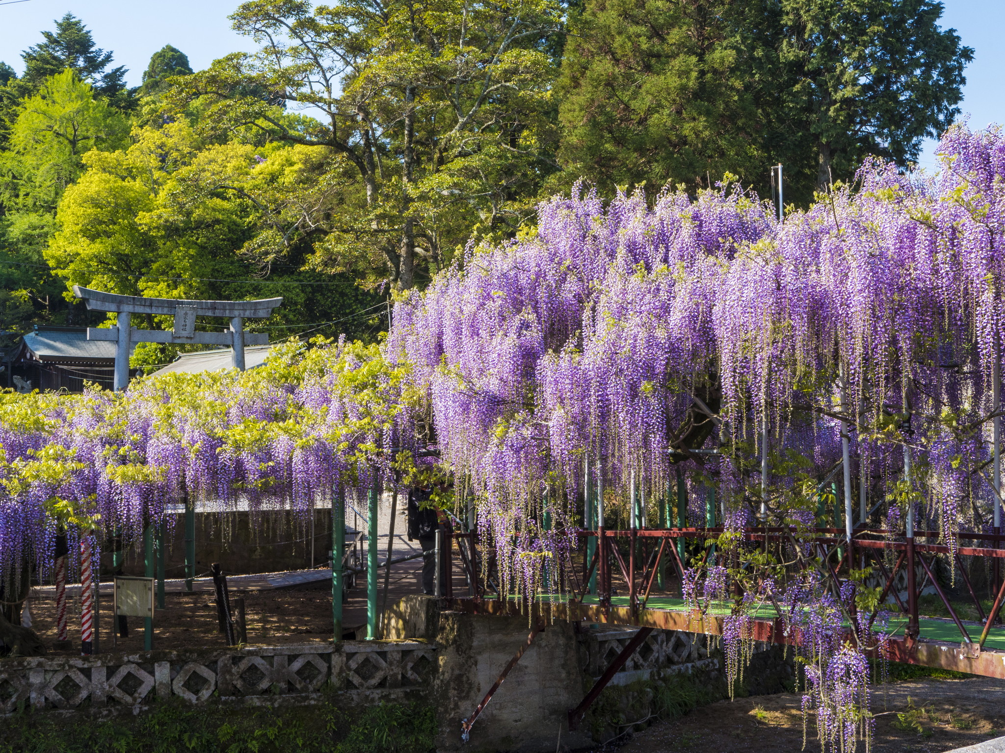 市指定文化財の藤棚が見頃となる4月中旬~5月5日に開催されています。神殿祭、育木祭、慰霊祭、水神祭、勧学祭も併せて行なわれています。
