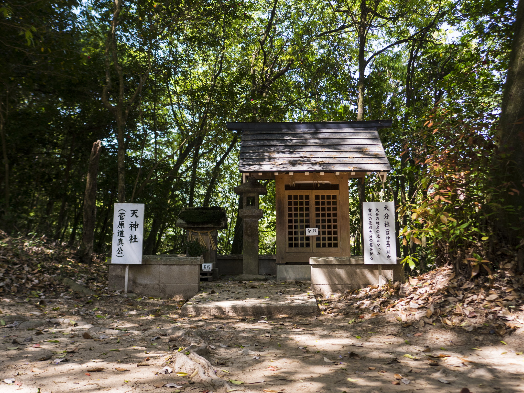境内東の本宮山登山口、向かって右に鎮座。御祭神は、豊門別命。大分の地名の元となった古代の豪族の大分君を祀っています。