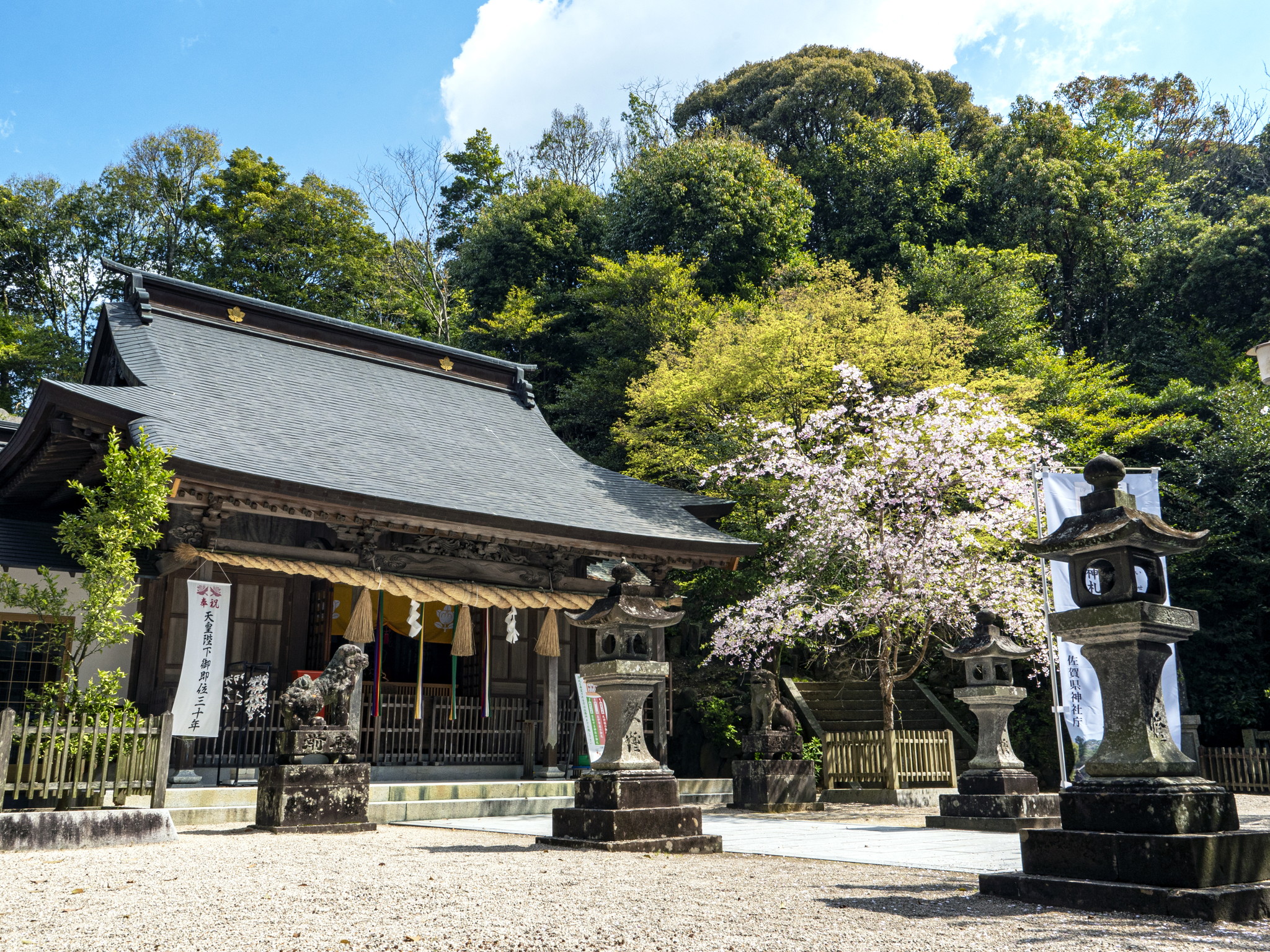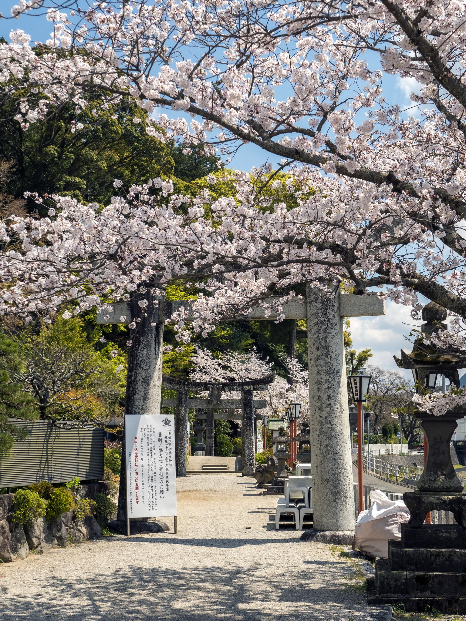 明治5年(1872)郷社に列格。明治40年(1907)には神饌幣帛料供進神社に指定され、昭和19年(1944)県社に昇格しました。昭和30年(1955)11月13日、菓祖・菓子の神として田道間守命を祀る兵庫県豊岡市の中嶋神社から分祀し、中嶋神社を建立。昭和34年(1959)香橘神社の地に戸渡嶋神社、続いて昭和37年(1962)10月に岩栗神社を合祀したのに合わせて伊萬里神社と改称されました。