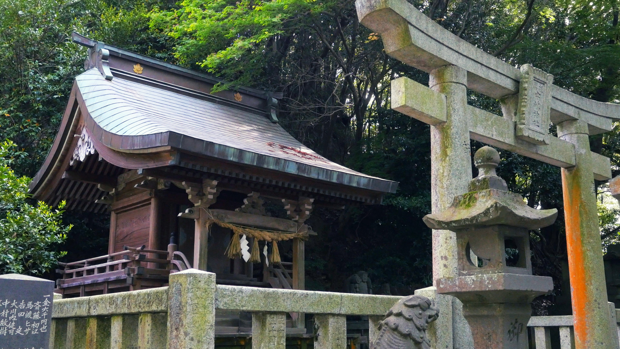 社殿向かって右手に鎮座。昭和31年(1956)11月13日に御祭神として菓祖・田道間守命を祭って創建されました。