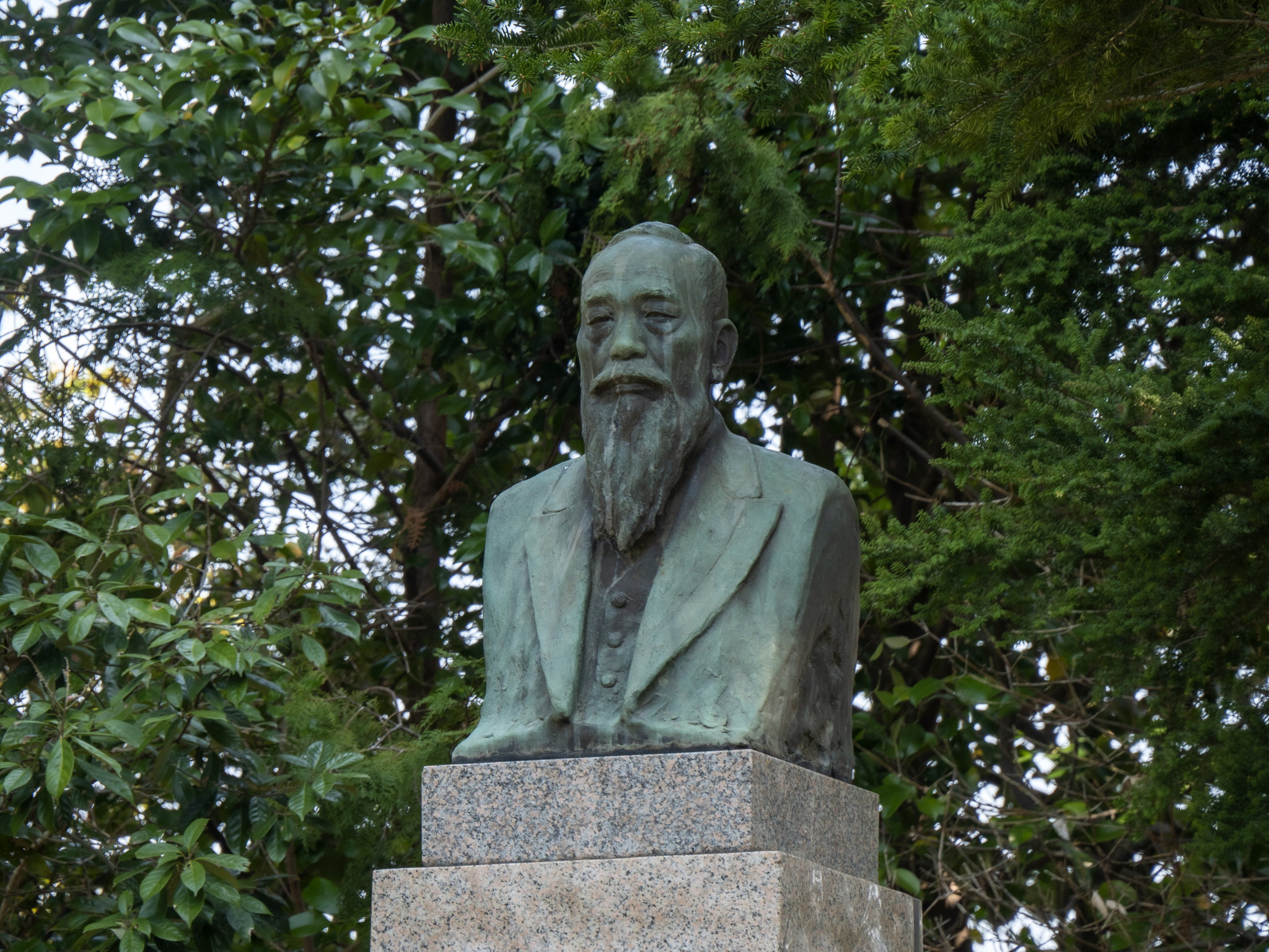 尚、伊萬里神社境内の岩栗山の頂上には、伊万里出身の製菓王・森永太一郎(森永製菓創業者)の像も建てられています。中嶋神社建立の翌年・昭和32年(1957)森永太一郎の没後20年を記念して建立されたもので、彫刻家・朝倉文夫による銅像です。