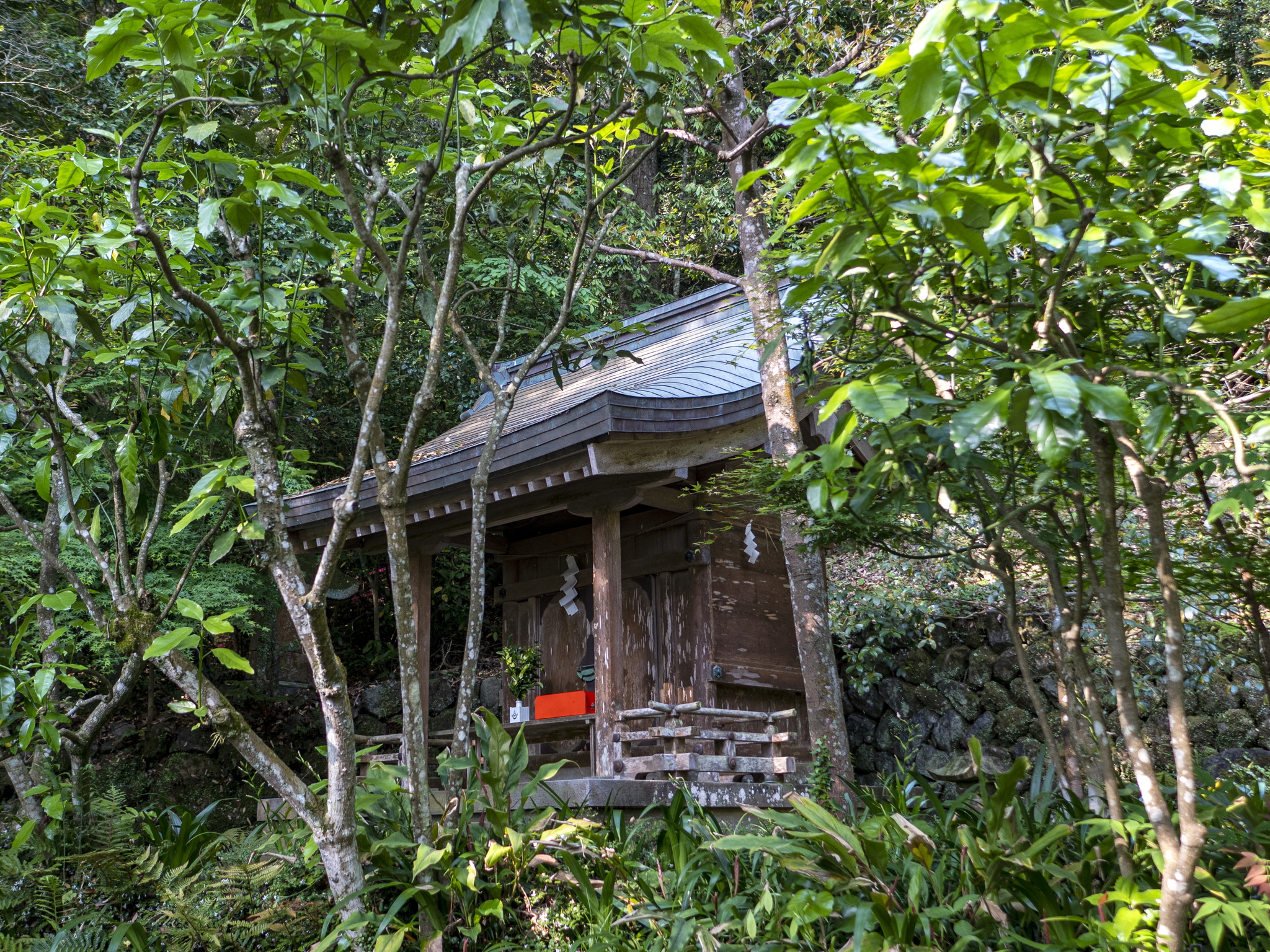 以後、萬子媛は熱心な御奉仕を続けられ、齢80歳になられた宝永2年(1705)石壁山山腹に巌を穿ち、寿蔵を築かせます。同年4月に工事が完成するや安座して、堅く戸を鎖して断食の行を積み、後世の天下国家の安泰のため、万古不易の祈願を込めて閏4月10日(新暦:1705年6月1日)に入定されました。諡を祐徳院殿瑞顔実麟大姉と申し上げ、現在の境内社の石壁社がこの寿蔵になります。萬子媛の御入定の後も、その徳を慕って参拝する人が絶えず、修繕祭祀の経費等全て肥前鹿島藩が供進し、分社も多く建てられました。