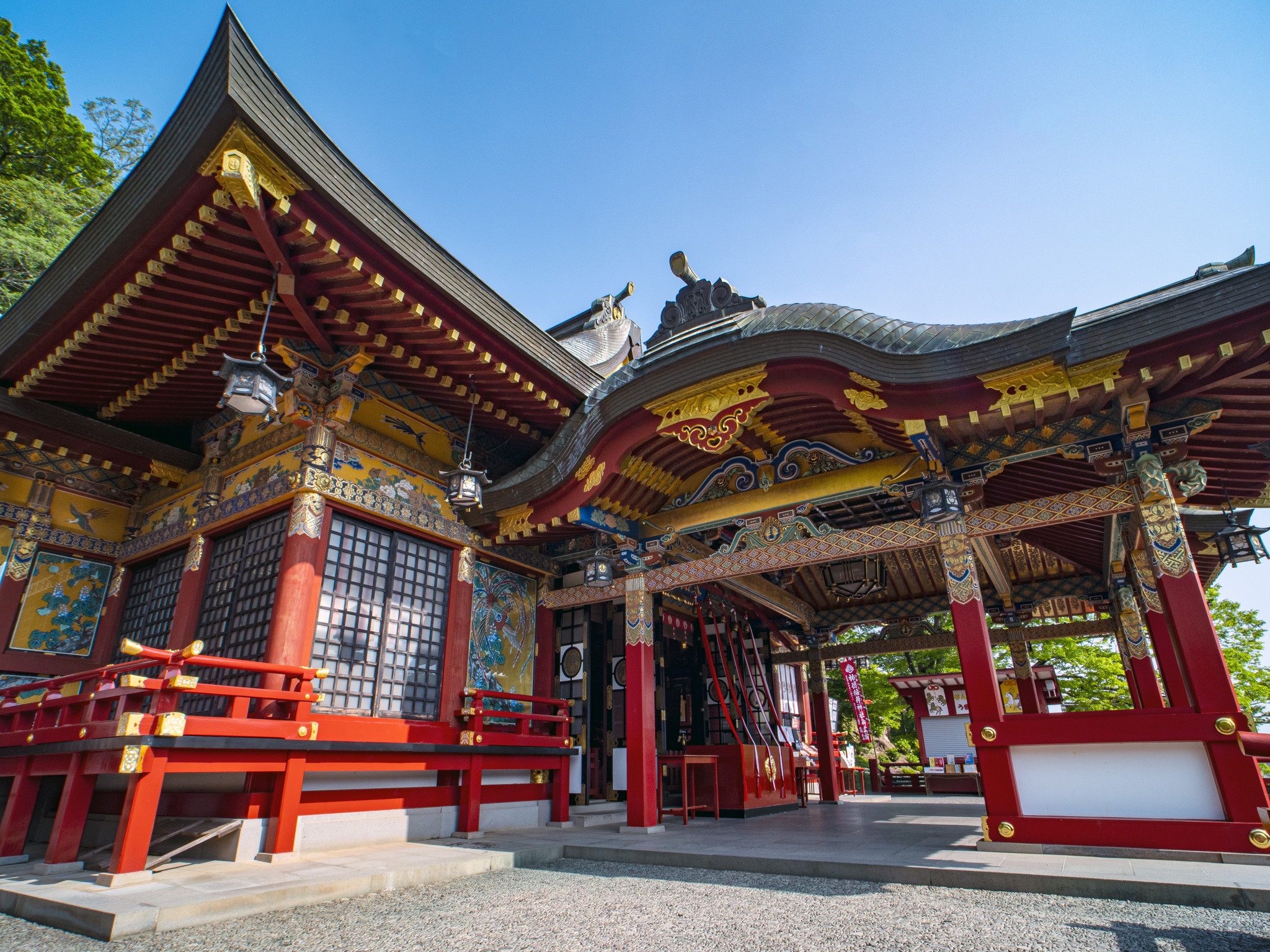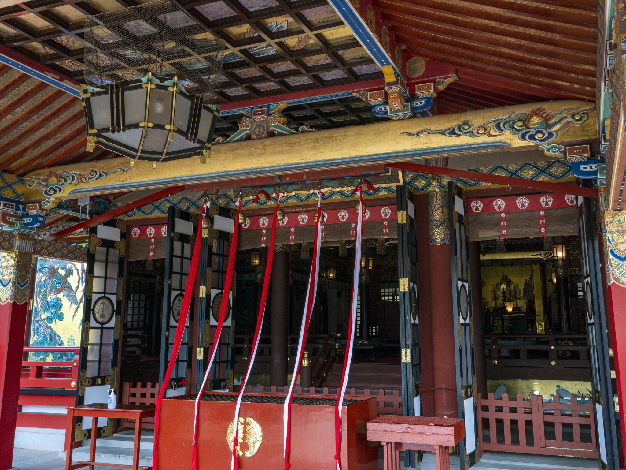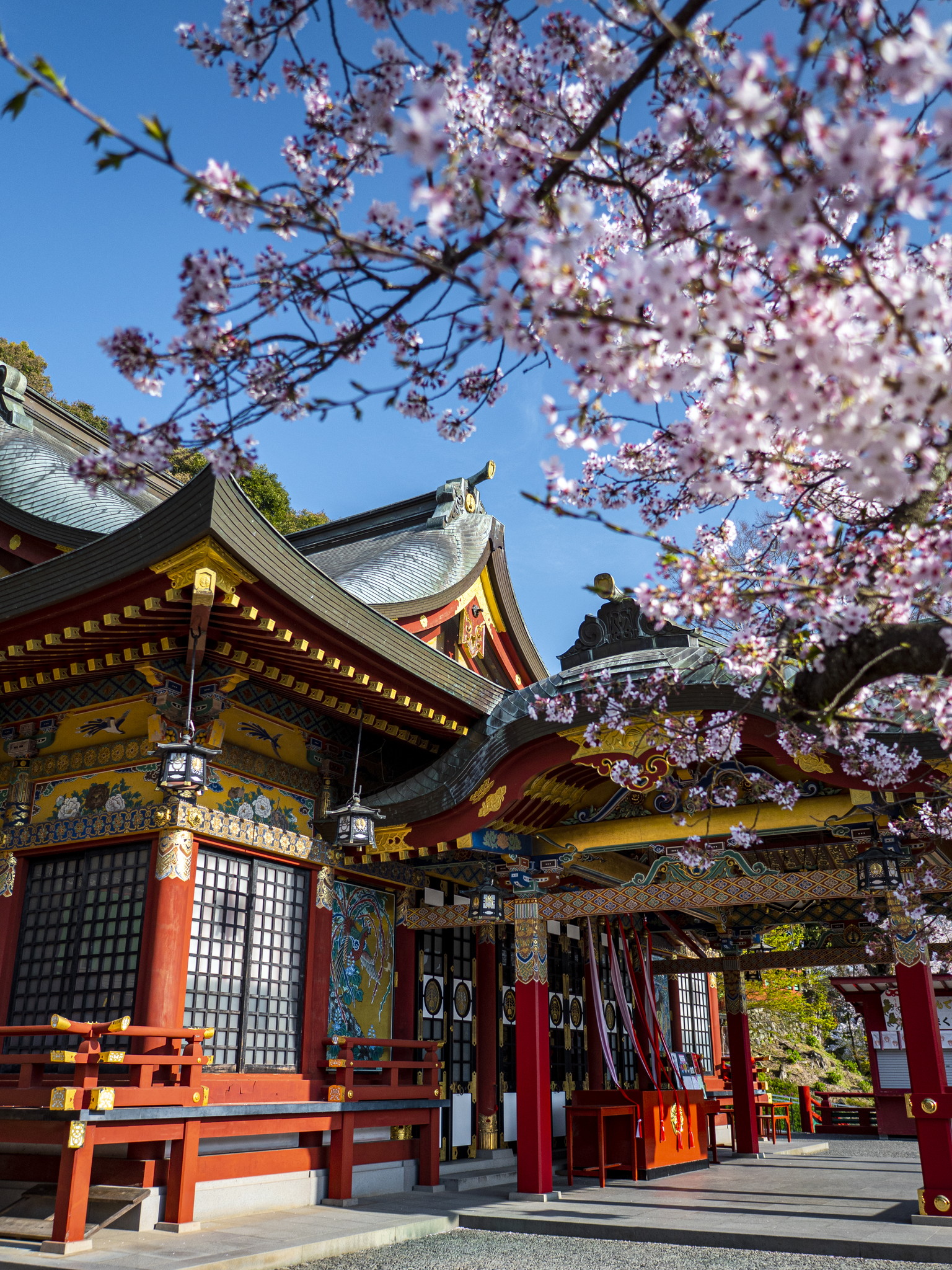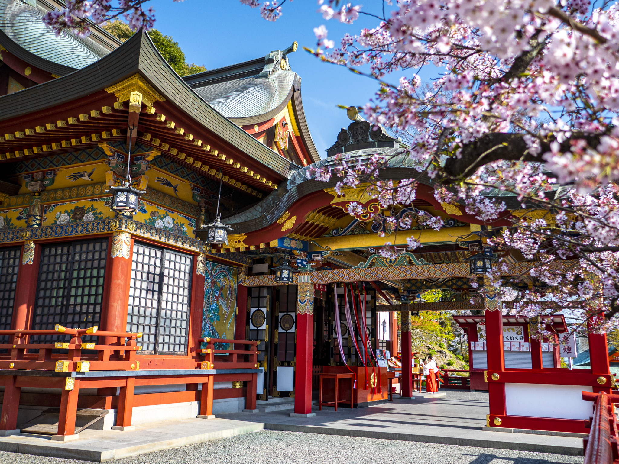 現在、生産豊穣・商売繁盛・家運繫栄・大漁満足・交通安全などの世事百般の祈願が絶えず、本殿、神楽殿、楼門等総漆塗極彩色の宏壮華麗な偉容は、鎮西日光と称されています。参拝者は年間数百万人に達して九州を代表する神社の一社となっています。56000坪の広い境内には、石壁社、命婦社、岩崎社、岩本社等の境内社のほか、手水舎、楼門、廻廊、神楽殿、社務所、参集殿、博物館、自動車御祓所、駐車場、花園等が配置され壮麗華麗な偉容は幽邃なる環境の美と相俟って異彩を放っています。
